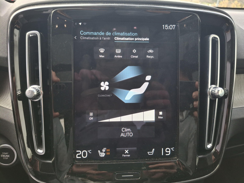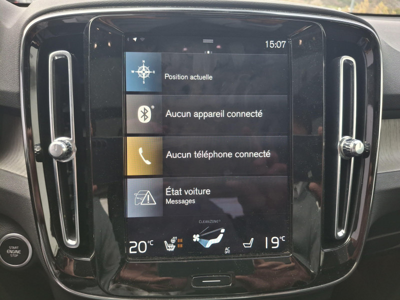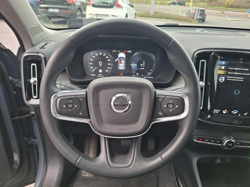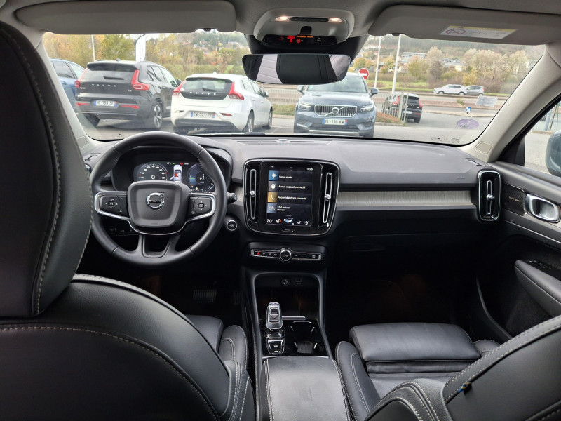 Airbag passager désactivable avec témoin d'indication (on/off) / Airbags conducteur et passager à déclenchement différencié / Antibrouillard AV à LED avec éclairage d'intersection / Assise des sièges AV extensible manuellement / Assise et dossier des sièges en Cuir / Ceintures de sécuritéà inertie à 3 points d'ancrage (sur les 5 sièges) / CleanZone : filtre à charbon de climatisation multi-actif et fonction pré-ventilation / Climatisation automatique bi-zone Inclut boîte à gants réfrigérée et ouïes d'aération à l'AR / Clé Inscription gainée de cuir / Commande vocale avancée (climatisation, médias, téléphone, eManuel utilisateur et navigation) / Déclenchement automatique des feux de detresse lors d'un freinage d'urgence / Ecran tactile multimédia haute résolution 9" personnalisable / Fonction climatisation de l'habitacle moteur coupé / Frein de parking électronique automatique en fonction Auto Hold (désactivable) / Freinage automatique post-collision (réduction du risque de suraccident) / Incrustations Bois Flotté / Jantes alliage 19" 5 branches double Noir / Diamant, 235/50 R19 / Phares LED avec correcteur dynamique de la portée, feux de route adaptatifs et feux de jour design marteau de Thor / Pommeau de levier de vitesse Simili-cuir / Pré-câblage électrique pour le crochet d'attelage / Préparation pour le système Isofix (places latérales de la 2ème rangée de sièges) / Radar de stationnement AR avec signal sonore et visuel / Rails de toit couleur Argent brillant / Sensus Navigation, Affichage 3D, cartographie Europe, information trafic en temps réel Applications web dédiées, 8 ans de mises à jour cartographiques gratuites grâce au programme MapCare / Seuil de coffre en Aluminium / Seuils de portes AV Inscription en Aluminium / Sièges conducteur et passager avec réglage manuel de la hauteur / Sièges conducteur et passager avec réglages manuels de la longueur, de l?inclinaison du dossier et de l?assise / Système audio Volvo High Performance avec technologie woofer au niveau de la console centrale : 250 W, 8 HP, radio RDS, prise 12 V et 3 ports USB / Système de protection contre le coup du lapin WHIPS (sièges AV) / Télécommande de verrouillage centralisé avec clé de contact integrée, fermeture automatique des vitres et du toit ouvrant, fonction panique (déclenchement du klaxon et des feux de détresse) / Verrouillage automatique des portes à partir de 7 km/h / Volant 3 branches gainé de Cuir avec insert en Aluminium / Volvo On Call avec fonction Car Sharing - Application mobile : Localisation de la voiture, Verrouillage / déverrouillage des portes, Ordinateur de bord, Journal et statistiques de conduite, Calendrier lié, Chauffer ou rafraîchir l?habitacle à distance (boîte automatique uniquement). Partagez votre Volvo avec votre famille et vos amis en leur donnant accès à distance avec une clé numérique - Fonctionnalité du véhicule : Alerte automatique en cas de collision, Service SOS, Assistance, Avertissement de vol, Tracking du véhicule v / 2 porte-cintres / Accès au service d'urgence Volvo via bouton SOS dans le plafonnier / Alerte vigilance conducteur / Badge T4/T5 Recharge sur le hayon / Bas de caisse et passages de roues Anthracite / Calandre spécifique Inscription avec contour chromé / Combiné d'instruments digital 12,3" / Contour inférieur des fenêtres latérales Argent brillant / Contrôle de la transmission en descente HDC / Crochet pour sacs intégréà la boîte à gants / Câble de recharge de 4,5 mètres / 10 A / Direction assistée électrique asservie à la vitesse / Eclairage d'accompagnement et éclairage d'approche / Espace de rangement sous la console centrale / Fonction Eco : optimisation des paramètres véhicule pour une conduite économique et écologique (à la demande) / Fonction Stop&Start : coupe et redémarre le moteur lorsque la voiture est à l'arrêt (déconnectable) / Gravure Recharge sur les montants AR / Indicateur de perte de pression des pneus / Kit anti-crevaison / Matériaux anti-allergènes dans l'habitacle (sellerie tissu, ceintures de sécurité, incrustations) / Miroirs de courtoisie éclairés, spots de lecture à l'AV et éclairage dans le coffre / Mode de conduite personnalisable / Ouverture des portes sans clé Keyless Entry Eclairage du sol dans les poignées de porte AV + Hayon électrique avec fonction Confort (sans les mains) / Pare-brise en verre feuilleté et colonne de direction rétractable en cas de choc / Port de recharge sur l'aile AV gauche / Porte-cartes bancaires et cartes de services intégré dans la planche de bord / Porte-ticket de parking et d'autoroute / Protections de pare-chocs AV et AR Argent Mat / Rappel d'oubli de bouclage de ceinture de sécurité AV et AR / Réglage en hauteur manuel des ceintures AV / Réglage électrique des supports lombaires / Rétroviseurs couleur carrosserie avec partie inférieure noir / Rétroviseurs intérieur (sans contour) et extérieurs électrochromes / Sabots de protection AV et AR Noir / Sac de rangement pour câble de recharge électrique / Sensus Connect : Applications web, affichage et lecture vocale des SMS (TTS), eManuel utilisateur et service révision connectée / Sonde de température extérieure et horloge / Sortie d'échappement non visible / Système de contrôle de la stabilité et de la traction STC / Système de contrôle du freinage du véhicule VDC / Système de protection anti-sortie de route / Système de protection collision frontale : Détection du risque de collision frontale (de 65 à 140 km/h) avec action corrective sur la direction / Système de protection contre les chocs latéraux SIPS / Système de pré-conditionnement de l'habitacle (chauffage) / Système de réglage en hauteur des phares / Système intelligent d'information au conducteur IDIS / Tapis de sol INSCRIPTION / Trappe de carburant intelligente sans bouchon / Trousse de 1er secours et triangle de présignalisatio