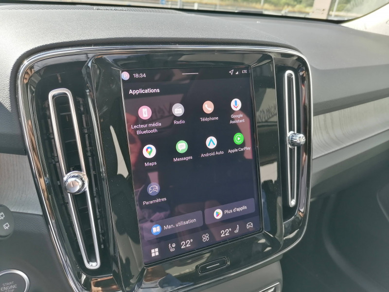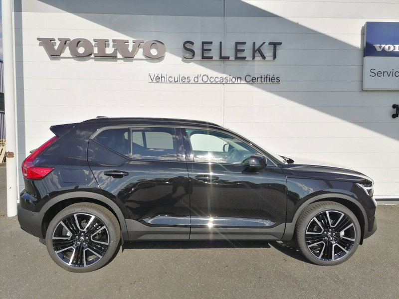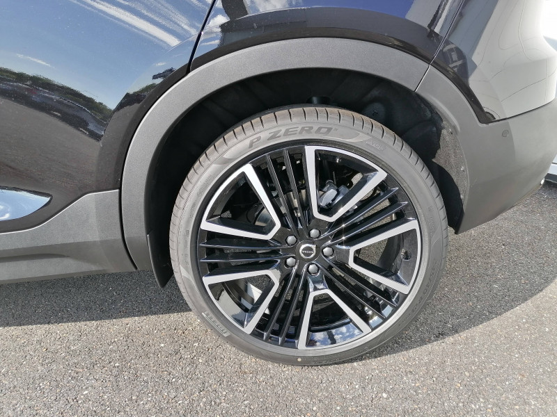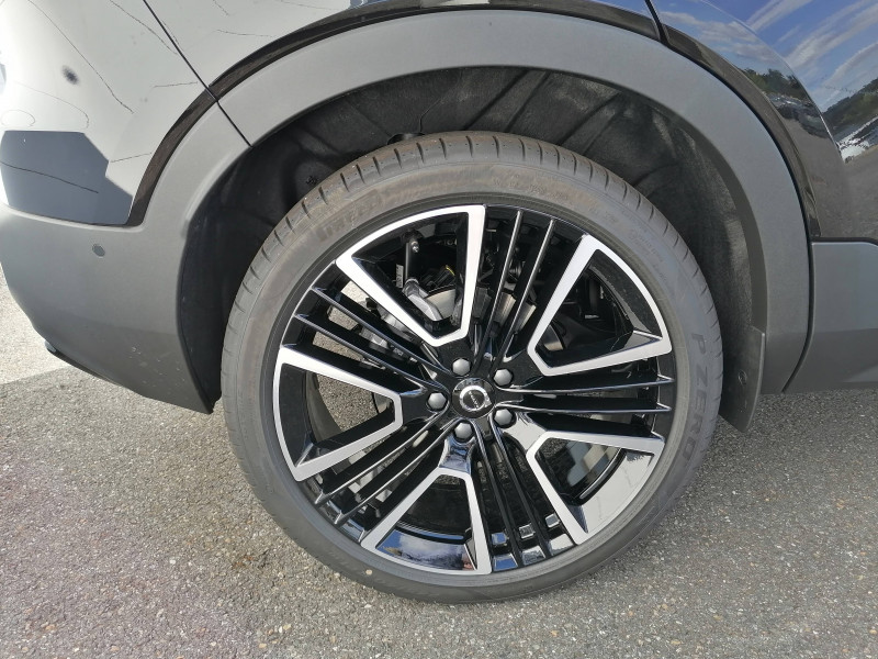 Airbag passager désactivable avec témoin d'indication (on/off) / Airbags conducteur et passager à déclenchement différencié / Assise des sièges AV extensible manuellement / Caméras Surround View (vision panoramique à 360°) incluant caméra AV, caméra de recul et assistance de stationnement semi-automatique / Ceintures de sécuritéà inertie à 3 points d'ancrage (sur les 5 sièges) / City Safety, système d'anticipation de collision intelligent : Détection des véhicules, cyclistes et piétons avec freinage automatique à pleine puissance. Détection des véhicules aux intersections avec freinage automatique à pleine puissance. Avertissement visuel et sonore paramétrable. Préparation des freins et ceintures de sécurité AV. / Climatisation automatique bi-zone (incluant ouïes d'aération à l'AR) Inclus un système de recirculation de l'air et un filtre à pollen / Déclenchement automatique des feux de detresse lors d'un freinage d'urgence / Ecran tactile multimédia haute résolution 9" personnalisable / Envoi automatique d'une alerte au service d'urgence Volvo en cas de collision / Fonction climatisation de l'habitacle moteur coupé / Frein de parking électronique automatique en fonction Auto Hold (désactivable) / Freinage automatique post-collision (réduction du risque de suraccident) / Infotainment Volvo Car UX Services Google (comprend Google Maps, Google Assistant, Google Play Store et un volume de données illimité pour les 4 premières années). Kit mains libres Bluetooth et Streaming Audio, mode d'emploi numérique du véhicule, réception de la radio numérique (DAB+), mises à jour à distance Over the Air (OTA) / Jantes alliage 19" 5 branches Y Noir Mat/Diamant 235/50 R19 / Pack Hiver Sièges AV chauffants, Volant chauffant / Pack Mémoire Sièges conducteur et passager à réglages électriques avec fonction mémoire pour le siège conducteur. Appuie-têtes AR rabattables électriquement depuis l'écran central / Pack Pilot Assist Assistance à la conduite intelligente (le véhicule lit le marquage au sol et agit sur la direction afin de se maintenir au centre de sa voie, le conducteur doit garder les mains sur le volant, fonctionne jusqu'à 130 km/h. Alerte distance de sécurité. Surveillance anti-angle mort avec action correctrice sur la direction. Assistance au changement de file. Alerte trafic en marche AR et Alerte collision AR avec freinage automatique. / Phares LED avec feux de jour design marteau de Thor et feux de route adaptatifs / Pré-câblage électrique pour le crochet d'attelage / Préparation pour le système Isofix (places latérales de la 2ème rangée de sièges) / Radar de stationnement AR avec signal sonore et visuel / Rails de toit Noir brillant / Seuils de portes AV Volvo en Aluminium / Siège conducteur et passager avec réglage manuel de la hauteur / Sièges AV à commande électrique avec fonction de mémoire pour la position d'assise et les rétroviseurs extérieurs / Sièges conducteur et passager avec réglage manuel de la longueur, de l'inclinaison du dossier et de l'assise / Sièges conducteur et passager avec réglage électriques des supports lombaires 4 positions / Système audio Volvo Premium Sound by Harman/Kardon 600 W avec 13 HP et technologie Subwoofer / Système de protection contre le coup du lapin WHIPS (sièges AV) / Système de protection en cas de sortie de route Ceintures de sécurité actives à prétensionneurs, Assise des sièges AV à absorption d'énergie, Pédale de frein rétractable en cas de collision frontale / Toit ouvrant panoramique avec rideau pare soleil intégréà commande électrique / Télécommande de verrouillage centralisé avec clé de contact intégrée, fermeture à distance des vitres et du toit ouvrant et fonction panique (déclenchement du klaxon et des feux de détresse) / Verrouillage automatique des portes à partir de 7 km/h / Volant sport gainé de cuir avec insert Aluminium / Accès au service d'assistance Volvo via bouton dédié dans le plafonnier / Accès au service d'urgence Volvo via bouton SOS dans le plafonnier / Alerte vigilance conducteur / Application Volvo Cars / Assistant d'arrêt d'urgence, qui peut faire ralentir le véhicule jusqu'à l'arrêt en cas d'absence de réaction du conducteur aux signaux d'alerte / Bas de caisse et passages de roues Anthracite / Calandre avec contour et lamelles horizontales noir brillant / Combiné d'instruments digital 12,3" / Contrôle de la transmission en descente HDC / Coques de rétroviseurs noires / Direction assistée électrique asservie à la vitesse / Eclairage d'accompagnement et éclairage d'approche / Eclairage d'intérieur : Spots de lecture à l'AV avec éclairage des passagers AV, éclairages dans le coffre (x2). Miroirs de courtoisie éclairés avec éclairage d'ambiance au niveau des pieds. Boîte à gants éclairée / Espace de rangement sous la console centrale / Filtre à particules sans entretien (réduction des émissions de particules) / Fonction Eco : optimisation des paramètres véhicule pour une conduite économique et écologique (à la demande) / Fonction Stop&Start : coupe et redémarre le moteur lorsque la voiture est à l'arrêt (déconnectable) / Garniture finition noir brillant de la partie inférieure des vitres latérales / Hayon électrique avec fonction Confort / Indicateur de perte de pression des pneus / Kit anti-crevaison / Miroirs de courtoisie éclairés, spots de lecture à l'AV et éclairage dans le coffre / Ouverture des portes sans clé Keyless Entry incluant éclairage du sol dans les poignées de porte AV / Pare-brise en verre feuilleté et colonne de direction rétractable en cas de choc / Pistage du véhicule par le service d'urgence Volvo en cas de vol du véhicule / Plaques décoratives AV/AR noir finition noir brillant / Porte-cartes bancaires et cartes de services intégré dans la planche de bord / Protection de pare-chocs AV et AR Noir / Rappel d'oubli de bouclage de ceintu