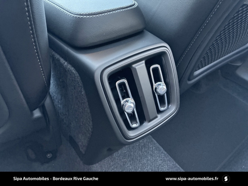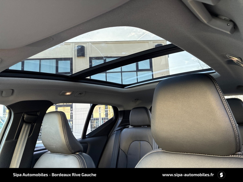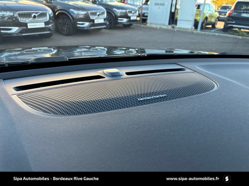 City Safety, système d'anticipation de collision intelligent : Détection des véhicules, cyclistes et piétons avec freinage automatique à pleine puissance. Détection des véhicules aux intersections avec freinage automatique à pleine puissance. Avertissement visuel et sonore paramétrable. Préparation des freins et ceintures de sécurité AV. / Climatisation automatique bi-zone (incluant ouïes d'aération à l'AR) Inclus un système de recirculation de l'air et un filtre à pollen / Déclenchement automatique des feux de detresse lors d'un freinage d'urgence / Envoi automatique d'une alerte au service d'urgence Volvo en cas de collision / Frein de parking électronique automatique en fonction Auto Hold (désactivable) / Freinage automatique post-collision (réduction du risque de suraccident) / Jantes alliage 18" 5 branches double Noir Mat/Diamant 235/55 R18 / Phares LED avec feux de jour design marteau de Thor et feux de route adaptatifs / Pré-câblage électrique pour le crochet d'attelage / Radar de stationnement AR avec signal sonore et visuel / Sellerie Cuir Anthracite Incrustation Bois Flotté / Seuils de portes AV Volvo en Aluminium / Toit ouvrant panoramique avec rideau pare soleil intégréà commande électrique / Télécommande de verrouillage centralisé avec clé de contact intégrée, fermeture à distance des vitres et du toit ouvrant et fonction panique (déclenchement du klaxon et des feux de détresse) / Volant sport gainé de cuir avec insert Aluminium / Accoudoir AR avec trappe à ski / Accès au service d'assistance Volvo via bouton dédié dans le plafonnier / Accès au service d'urgence Volvo via bouton SOS dans le plafonnier / Airbag passager désactivable avec témoin d'indication (on/off) / Airbags conducteur et passager à déclenchement différencié / Alerte vigilance conducteur / Application Volvo Cars / Assise des sièges AV extensible manuellement / Assistance anti-sortie de route (fonctionne entre 65 et 140 km/h) / Assistant d'arrêt d'urgence, qui peut faire ralentir le véhicule jusqu'à l'arrêt en cas d'absence de réaction du conducteur aux signaux d'alerte / Bas de caisse et passages de roues Anthracite / Calandre avec contour et lamelles horizontales noir brillant / Ceintures de sécuritéà inertie à 3 points d'ancrage (sur les 5 sièges) / Combiné d'instruments digital 12,3" / Contrôle de la transmission en descente HDC / Coques de rétroviseurs noires / Direction assistée électrique asservie à la vitesse / Eclairage d'accompagnement et éclairage d'approche / Eclairage d'intérieur : Spots de lecture à l'AV avec éclairage des passagers AV, éclairages dans le coffre (x2). Miroirs de courtoisie éclairés avec éclairage d'ambiance au niveau des pieds. Boîte à gants éclairée / Ecran tactile multimédia haute résolution 9" personnalisable / Espace de rangement sous la console centrale / Filtre à particules sans entretien (réduction des émissions de particules) / Fonction Stop&Start : coupe et redémarre le moteur lorsque la voiture est à l'arrêt (déconnectable) / Garniture finition noir brillant de la partie inférieure des vitres latérales / Hayon électrique avec fonction Confort / Indicateur de perte de pression des pneus / Infotainment Volvo Car UX Services Google (comprend Google Maps, Google Assistant, Google Play Store et un volume de données illimité pour les 4 premières années). Kit mains libres Bluetooth et Streaming Audio, mode d'emploi numérique du véhicule, réception de la radio numérique (DAB+), mises à jour à distance Over the Air (OTA) / Kit anti-crevaison / Matériaux anti-allergènes dans l'habitacle (sellerie tissu, ceintures de sécurité, incrustations) / Miroirs de courtoisie éclairés, spots de lecture à l'AV et éclairage dans le coffre / Ouverture des portes sans clé Keyless Entry incluant éclairage du sol dans les poignées de porte AV / Plaques décoratives AV/AR noir finition noir brillant / Pommeau de levier de vitesse en cristal d'Orrefors / Protection de pare-chocs AV et AR Noir / Préparation pour le système Isofix (places latérales de la 2ème rangée de sièges) / Radio numérique terrestre, 2 prises USB à l'avant (type C), 2 prises USB à l'arrière et prise 12 V / Rails de toit Noir brillant / Rappel d'oubli de bouclage de ceinture de sécurité AV et AR / Régulateur adaptatif de vitesse et de distance ACC / Rétroviseur intérieur électrochrome sans contour / Sabots de protection AV et AR Noir / Siège conducteur et passager avec réglage manuel de la hauteur / Sièges AV à commande électrique avec fonction de mémoire pour la position d'assise et les rétroviseurs extérieurs / Sièges conducteur et passager avec réglage manuel de la longueur, de l'inclinaison du dossier et de l'assise / Sièges conducteur et passager avec réglage électriques des supports lombaires 4 positions / Surveillance anti-angle mort BLIS avec alerte trafic en marche AR / Système audio Volvo Premium Sound by Harman/Kardon 600 W avec 13 HP et technologie Subwoofer / Système de contrôle de la stabilité et de la traction STC / Système de filtration de l'air CleanZone Advanced avec indication de la qualité de l'air intérieur / Système de protection collision frontale : Détection du risque de collision frontale (de 65 à 140 km/h) avec action corrective sur la direction / Système de protection contre le coup du lapin WHIPS (sièges AV) / Système de protection contre les chocs latéraux SIPS / Système de protection en cas de sortie de route Ceintures de sécurité actives à prétensionneurs, Assise des sièges AV à absorption d'énergie, Pédale de frein rétractable en cas de collision frontale / Système de réglage en hauteur des phares / Sécurité enfant à commande électrique / Tapis de sol textile AV/AR / Transmission DCT7 / Trappe de carburant intelligente sans bouchon / Trousse de 1er secours et triangle de présignalisation / Tunnel de la console centrale Anthracite