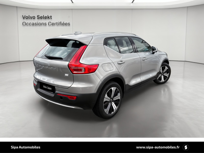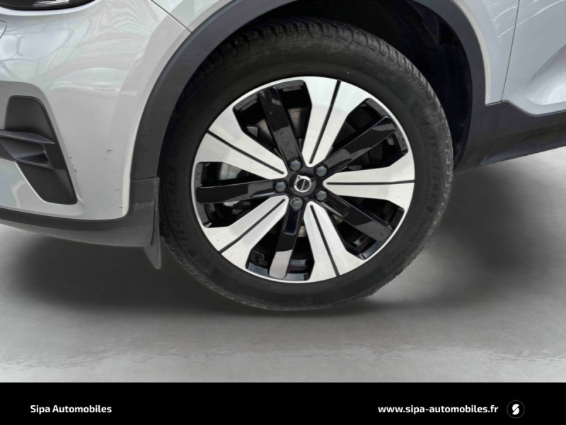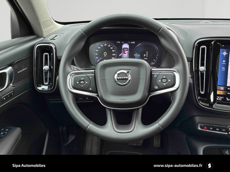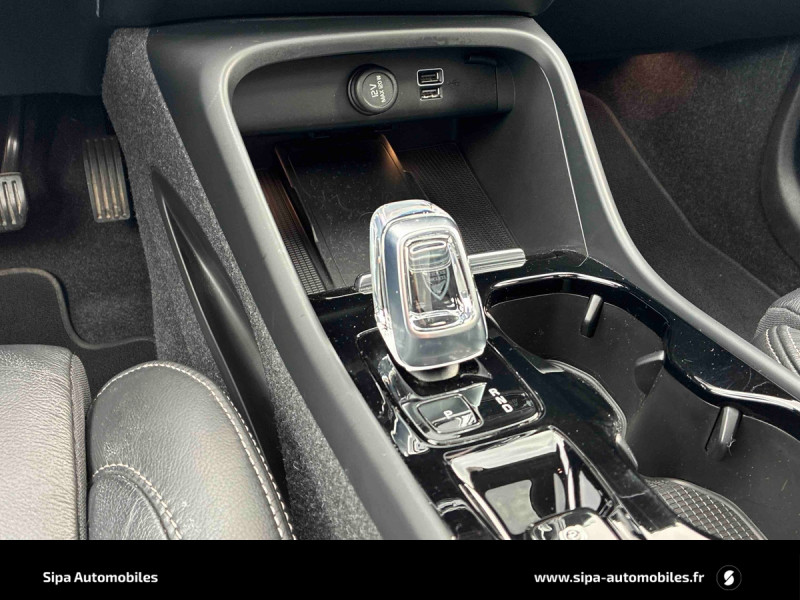City Safety, système d'anticipation de collision intelligent : Détection des véhicules, cyclistes et piétons avec freinage automatique à pleine puissance. Détection des véhicules aux intersections avec freinage automatique à pleine puissance. Avertissement visuel et sonore paramétrable. Préparation des freins et ceintures de sécurité AV. / Climatisation automatique bi-zone (incluant ouïes d'aération à l'AR) / Commande vocale avancée (climatisation, médias, téléphone, eManuel utilisateur et navigation) / Déclenchement automatique des feux de detresse lors d'un freinage d'urgence / Envoi automatique d'une alerte au service d'urgence Volvo en cas de collision / Fonction climatisation de l'habitacle moteur coupé / Frein de parking électronique automatique en fonction Auto Hold (désactivable) / Freinage automatique post-collision (réduction du risque de suraccident) / Jantes alliage 19" 5 branches doubles Noir/Diamant 235/50 R19 / Phares LED avec feux de jour design marteau de Thor et feux de route adaptatifs / Pneus toutes saisons (sur jantes 18" et 19") / Pré-câblage électrique pour le crochet d'attelage / Sensus Connect avec Pack Navigation / Seuils de portes AV Volvo en Aluminium / Toit ouvrant panoramique avec rideau pare soleil intégréà commande électrique / Télécommande de verrouillage centralisé avec clé de contact intégrée, fermeture à distance des vitres et du toit ouvrant et fonction panique / Verrouillage automatique des portes à partir de 7 km/h / Volant sport en Cuir avec insert Aluminium / Accès au service d'assistance Volvo via bouton dédié dans le plafonnier / Accès au service d'urgence Volvo via bouton SOS dans le plafonnier / Airbag conducteur à déclenchement différencié / Airbag passager désactivable avec témoin d'indication (on/off) / Alerte vigilance conducteur / Application Volvo Cars / Assise des sièges AV extensible manuellement / Badge T4/T5 Recharge sur le hayon / Bas de caisse et passages de roues Anthracite / Ceintures de sécuritéà inertie à 3 points d'ancrage (sur les 5 sièges) / Combiné d'instruments digital 12,3" / Contour de la calandre chromé / Contrôle de la transmission en descente HDC / Câble de recharge de 4,5 mètres / 10 A / Direction assistée asservie à la vitesse / Eclairage d'accompagnement et éclairage d'approche / Eclairage d'intérieur : Spots de lecture à l'AV avec éclairage des passagers AV, éclairages dans le coffre (x2). Miroirs de courtoisie éclairés avec éclairage d'ambiance au niveau des pieds. Boîte à gants éclairée / Ecran tactile multimédia haute résolution 9" personnalisable / Espace de rangement sous la console centrale / Fonction Eco : optimisation des paramètres véhicule pour une conduite économique et écologique (à la demande) / Fonction Stop&Start : coupe et redémarre le moteur lorsque la voiture est à l'arrêt (déconnectable) / Gravure Recharge sur les montants AR / Hayon électrique avec fonction Confort / Incrustations Urban Grid / Indicateur de perte de pression des pneus / Kit anti-crevaison / Matériaux anti-allergènes dans l'habitacle (sellerie tissu, ceintures de sécurité, incrustations) / Miroirs de courtoisie éclairés, spots de lecture à l'AV et éclairage dans le coffre / Ouverture des portes sans clé Keyless Entry incluant éclairage du sol dans les poignées de porte AV / Pare-brise en verre feuilleté et colonne de direction rétractable en cas de choc / Pistage du véhicule par le service en cas de vol du véhicule / Port de recharge sur l'aile AV gauche / Porte-cartes bancaires et cartes de services intégré dans la planche de bord / Porte-ticket de parking et d?autoroute / Protection de pare-chocs AV et AR Noir / Préparation pour le système Isofix (places latérales de la 2ème rangée de sièges) / Rappel d'oubli de bouclage de ceinture de sécurité AV et AR / Réglage en hauteur manuel des ceintures AV / Rétroviseur intérieur électrochrome sans contour / Rétroviseurs couleur carrosserie avec partie inférieure noir / Sabots de protection AV et AR Noir / Sièges conducteur et passager avec réglage électriques des supports lombaires 4 positions / Sonde de température extérieure et horloge / Sortie d'échappement non visible / Système audio Volvo Premium Sound by Harman/Kardon 600 W avec 13 HP et technologie Subwoofer / Système de contrôle de la stabilité et de la traction STC / Système de contrôle du freinage du véhicule VDC / Système de filtration de l'air CleanZone Advanced avec indication de la qualité de l'air intérieur / Système de protection anti-sortie de route / Système de protection collision frontale : Détection du risque de collision frontale (de 65 à 140 km/h) avec action corrective sur la direction / Système de protection contre le coup du lapin WHIPS (sièges AV) / Système de protection contre les chocs latéraux SIPS / Système de protection en cas de sortie de route / Système de pré-conditionnement de l'habitacle (chauffage) / Système de recharge sans fil pour smartphone situé dans le compartiment de rangement AV / Système de réglage en hauteur des phares / Système intelligent d'information au conducteur IDIS / Sécurité enfant à commande électrique / Tapis de sol textile AV/AR / Trappe de carburant intelligente sans bouchon / Trousse de 1er secours et triangle de présignalisation / Tunnel de la console centrale Anthracite / Verrouillage de sécurité enfant manuel / Vitres AV et AR électriques à impulsion (montée et descente) avec système anti-pincement