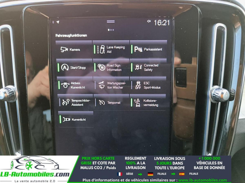 Référence : 1146549 Vos Avantages chez LB-AUTOMOBILES.com / Prix affiché TTC Livré hors carte grise / Livraison sous 10 jours dans toute la France hors 31 / Pas d?avance de frais paiement du véhicule 100% à la livraison par virement. Volvo XC40 Neuf remisée, Volvo XC40 Occasion Toulouse Beaupuy 31850, Volvo XC40 Véhicule sorti de réseau collaborateur, Volvo XC40 import, Volvo XC40 importateur, Volvo XC40 Livraison possible dans toute la France sous 5 jours, Volvo XC40, Volvo XC40 Location Option Achat, Volvo XC40 LLD, Volvo XC40 Longue Durée, Volvo XC40 TVA récupérable. Possibilité d'extension de garantie 12, 24,36 mois, Pour tout autres voitures import neufs ou occasions collaborateur fortement remisée, Mandataire Audi, Mandataire BMW, Mandataire Volkswagen, Mandataire Mercedes, Mandataire Peugeot Espagne, Mandataire Renault Espagne, Porsche import, Mandataire Citroën Espagne, Mandataire Seat Espagne, n'hésitez pas à nous contacter. « Sous réserve de vente préalable et erreur de saisie » Principaux équipements : - ABS - Accoudoir - Android Auto - Antidémarrage - Apple CarPlay - Assistance au freinage d'urgence - Assistance de démarrage en côte - Assistant feux de route - Avertisseur de franchissement de ligne - Bluetooth - Capteur de lumière - Capteur de pluie - Carnet d'entretien - Chargement par induction pour smartphones - Cockpit numérique - Commande vocale - Contrôle de la pression des pneus - Direction assistée - Éclairage adaptatif - Éclairage d'ambiance - Écran tactile - ESP - Fermeture centralisée - Feux de jour LED - Galerie de toit - GPS - Hayon électrique - Isofix - Jantes alliage - Kit de réparation d'urgence des pneus - Kit mains libres - Ordinateur de bord - Package hiver - Phare antibrouillard - Phares LED - Pneus toutes saisons - Port USB - Radio DAB - Régulateur de vitesse adaptatif - Rétroviseur extérieur électrique - Rétroviseur intérieur anti-éblouissement automatique - Rétroviseurs extérieurs rabattables électriquement - Sièges chauffants - Streaming musical intégré - Support lombaire - Système antipatinage - Système d'appel d'urgence - Système d'avertissement de la distance - Système de détection de la fatigue - Système de limitation de la vitesse - Système de nettoyage des phares - Système de reconnaissance des panneaux de signalisation - Système de sonorisation - Système Stop & Start - Traction avant - Tuner/radio - Véhicule non-fumeur - Verrouillage centralisé sans clé - Vitres électriques - Vitres teintées - Volant chauffant - Volant en cuir - Volant multifonction - WLAN / point d'accès Wi-Fi