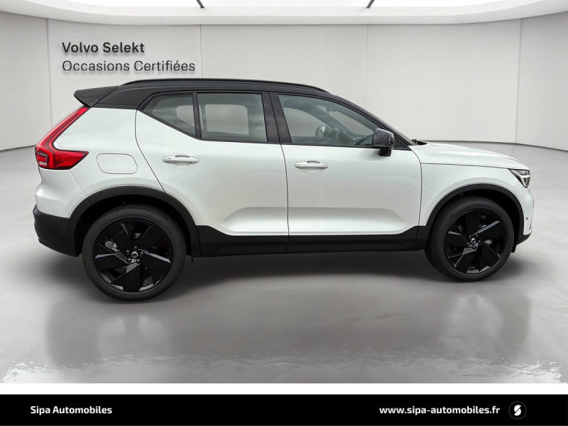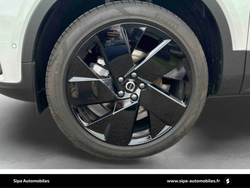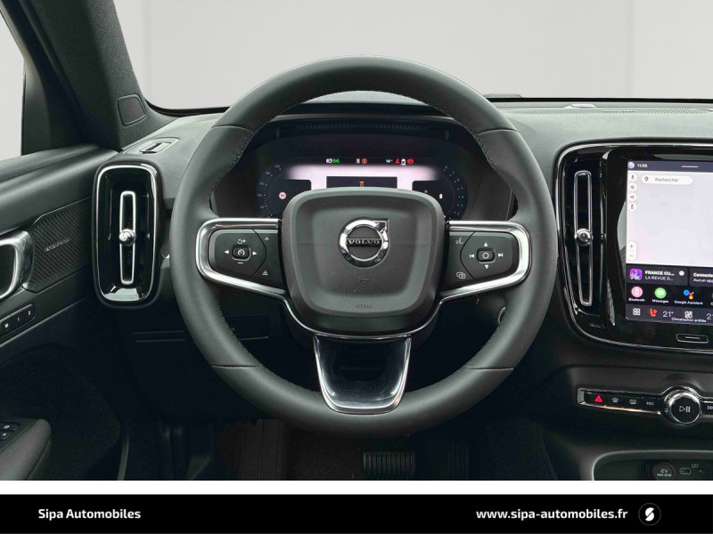 City Safety, système d'anticipation de collision intelligent : Détection des véhicules, cyclistes et piétons avec freinage automatique à pleine puissance. Détection des véhicules aux intersections avec freinage automatique à pleine puissance. Avertissement visuel et sonore paramétrable. Préparation des freins et ceintures de sécurité AV. / Climatisation automatique bi-zone (incluant ouïes d'aération à l'AR) Inclus un système de recirculation de l'air et un filtre à pollen / Déclenchement automatique des feux de detresse lors d'un freinage d'urgence / Envoi automatique d'une alerte au service d'urgence Volvo en cas de collision / Frein de parking électronique automatique en fonction Auto Hold (désactivable) / Freinage automatique post-collision (réduction du risque de suraccident) / Jantes alliage 20" 5 branches Noir 245/45 R20 / Phares LED avec feux de jour design marteau de Thor et feux de route adaptatifs / Pré-câblage électrique pour le crochet d'attelage / Radar de stationnement AR avec signal sonore et visuel / Seuils de portes AV Volvo en Aluminium / Télécommande de verrouillage centralisé avec clé de contact intégrée, fermeture à distance des vitres et du toit ouvrant et fonction panique (déclenchement du klaxon et des feux de détresse) / Volant sport gainé de cuir avec insert Aluminium / Accoudoir AR avec trappe à ski / Accès au service d'assistance Volvo via bouton dédié dans le plafonnier / Accès au service d'urgence Volvo via bouton SOS dans le plafonnier / Airbag passager désactivable avec témoin d'indication (on/off) / Airbags conducteur et passager à déclenchement différencié / Alerte vigilance conducteur / Application Volvo Cars / Assise des sièges AV extensible manuellement / Assistance anti-sortie de route (fonctionne entre 65 et 140 km/h) / Assistant d'arrêt d'urgence, qui peut faire ralentir le véhicule jusqu'à l'arrêt en cas d'absence de réaction du conducteur aux signaux d'alerte / Badge AR Noir Laqué / Bas de caisse et passages de roues Anthracite / Calandre et emblème AV noir laqué / Ceintures de sécuritéà inertie à 3 points d'ancrage (sur les 5 sièges) / Combiné d'instruments digital 12,3" / Contrôle de la transmission en descente HDC / Coques de rétroviseurs noires / Direction assistée électrique asservie à la vitesse / Eclairage d'accompagnement et éclairage d'approche / Eclairage d'intérieur : Spots de lecture à l'AV avec éclairage des passagers AV, éclairages dans le coffre (x2). Miroirs de courtoisie éclairés avec éclairage d'ambiance au niveau des pieds. Boîte à gants éclairée / Ecran tactile multimédia haute résolution 9" personnalisable / Espace de rangement sous la console centrale / Filtre à particules sans entretien (réduction des émissions de particules) / Fonction Stop&Start : coupe et redémarre le moteur lorsque la voiture est à l'arrêt (déconnectable) / Garniture finition noir brillant de la partie inférieure des vitres latérales / Hayon électrique avec fonction Confort / Incrustations Urban Grid / Indicateur de perte de pression des pneus / Infotainment Volvo Car UX Services Google (comprend Google Maps, Google Assistant, Google Play Store et un volume de données illimité pour les 4 premières années). Kit mains libres Bluetooth et Streaming Audio, mode d'emploi numérique du véhicule, réception de la radio numérique (DAB+), mises à jour à distance Over the Air (OTA) / Kit anti-crevaison / Matériaux anti-allergènes dans l'habitacle (sellerie tissu, ceintures de sécurité, incrustations) / Miroirs de courtoisie éclairés, spots de lecture à l'AV et éclairage dans le coffre / Ouverture des portes sans clé Keyless Entry incluant éclairage du sol dans les poignées de porte AV / Pavillon de toit Anthracite / Plaques décoratives AV/AR noir finition noir brillant / Protection de pare-chocs AV et AR Noir / Préparation pour le système Isofix (places latérales de la 2ème rangée de sièges) / Radio numérique terrestre, 2 prises USB à l'avant (type C), 2 prises USB à l'arrière et prise 12 V / Rails de toit Noir brillant / Rappel d'oubli de bouclage de ceinture de sécurité AV et AR / Régulateur adaptatif de vitesse et de distance ACC / Rétroviseur intérieur électrochrome sans contour / Sabots de protection AV et AR Noir / Siège conducteur et passager avec réglage manuel de la hauteur / Sièges AV à commande électrique avec fonction de mémoire pour la position d'assise et les rétroviseurs extérieurs / Sièges conducteur et passager avec réglage manuel de la longueur, de l'inclinaison du dossier et de l'assise / Sièges conducteur et passager avec réglage électriques des supports lombaires 4 positions / Surveillance anti-angle mort BLIS avec alerte trafic en marche AR / Système audio Volvo Premium Sound by Harman/Kardon 600 W avec 13 HP et technologie Subwoofer / Système de contrôle de la stabilité et de la traction STC / Système de filtration de l'air CleanZone Advanced avec indication de la qualité de l'air intérieur / Système de protection collision frontale : Détection du risque de collision frontale (de 65 à 140 km/h) avec action corrective sur la direction / Système de protection contre le coup du lapin WHIPS (sièges AV) / Système de protection contre les chocs latéraux SIPS / Système de protection en cas de sortie de route Ceintures de sécurité actives à prétensionneurs, Assise des sièges AV à absorption d'énergie, Pédale de frein rétractable en cas de collision frontale / Système de réglage en hauteur des phares / Sécurité enfant à commande électrique / Tapis de sol textile AV/AR / Transmission DCT7 / Trappe de carburant intelligente sans bouchon / Trousse de 1er secours et triangle de présignalisation / Tunnel de la console centrale Anthracite / Vitres AV et AR électriques à impulsion (montée et descente) avec système anti-pincement / Volvo Car Connect Plus: 4 ans de données internet
