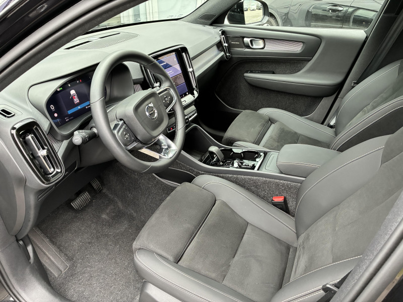 Caméras Surround View (vision panoramique à 360°) incluant caméra AV, caméra de recul et assistance de stationnement semi-automatique / City Safety, système d'anticipation de collision intelligent : Détection des véhicules, cyclistes et piétons avec freinage automatique à pleine puissance. Détection des véhicules aux intersections avec freinage automatique à pleine puissance. Avertissement visuel et sonore paramétrable. Préparation des freins et ceintures de sécurité AV. / Climatisation automatique bi-zone (incluant ouïes d'aération à l'AR) Inclus un système de recirculation de l'air et un filtre à pollen / Déclenchement automatique des feux de detresse lors d'un freinage d'urgence / Envoi automatique d'une alerte au service d'urgence Volvo en cas de collision / Fonction climatisation de l'habitacle moteur coupé / Frein de parking électronique automatique en fonction Auto Hold (désactivable) / Freinage automatique post-collision (réduction du risque de suraccident) / Jantes alliage 19" 5 branches Y Noir Mat/Diamant 235/50 R19 / Phares LED avec feux de jour design marteau de Thor et feux de route adaptatifs / Pré-câblage électrique pour le crochet d'attelage / Radar de stationnement AR avec signal sonore et visuel / Seuils de portes AV Volvo en Aluminium / Toit ouvrant panoramique avec rideau pare soleil intégréà commande électrique / Télécommande de verrouillage centralisé avec clé de contact intégrée, fermeture à distance des vitres et du toit ouvrant et fonction panique (déclenchement du klaxon et des feux de détresse) / Verrouillage automatique des portes à partir de 7 km/h / Volant sport en Cuir avec insert Aluminium / Accès au service d'assistance Volvo via bouton dédié dans le plafonnier / Accès au service d'urgence Volvo via bouton SOS dans le plafonnier / Airbag passager désactivable avec témoin d'indication (on/off) / Airbags conducteur et passager à déclenchement différencié / Alerte vigilance conducteur / Application Volvo Cars / Assise des sièges AV extensible manuellement / Assistant d'arrêt d'urgence, qui peut faire ralentir le véhicule jusqu'à l'arrêt en cas d'absence de réaction du conducteur aux signaux d'alerte / Bas de caisse et passages de roues Anthracite / Calandre avec contour et lamelles horizontales noir brillant / Ceintures de sécuritéà inertie à 3 points d'ancrage (sur les 5 sièges) / Combiné d'instruments digital 12,3" / Contrôle de la transmission en descente HDC / Coques de rétroviseurs noires / Direction assistée électrique asservie à la vitesse / Eclairage d'accompagnement et éclairage d'approche / Eclairage d'intérieur : Spots de lecture à l'AV avec éclairage des passagers AV, éclairages dans le coffre (x2). Miroirs de courtoisie éclairés avec éclairage d'ambiance au niveau des pieds. Boîte à gants éclairée / Ecran tactile multimédia haute résolution 9" personnalisable / Espace de rangement sous la console centrale / Filtre à particules sans entretien (réduction des émissions de particules) / Fonction Eco : optimisation des paramètres véhicule pour une conduite économique et écologique (à la demande) / Fonction Stop&Start : coupe et redémarre le moteur lorsque la voiture est à l'arrêt (déconnectable) / Garniture finition noir brillant de la partie inférieure des vitres latérales / Hayon électrique avec fonction Confort / Indicateur de perte de pression des pneus / Infotainment Volvo Car UX Services Google (comprend Google Maps, Google Assistant, Google Play Store et un volume de données illimité pour les 4 premières années). Kit mains libres Bluetooth et Streaming Audio, mode d'emploi numérique du véhicule, réception de la radio numérique (DAB+), mises à jour à distance Over the Air (OTA) / Kit anti-crevaison / Matériaux anti-allergènes dans l'habitacle (sellerie tissu, ceintures de sécurité, incrustations) / Miroirs de courtoisie éclairés, spots de lecture à l'AV et éclairage dans le coffre / Ouverture des portes sans clé Keyless Entry incluant éclairage du sol dans les poignées de porte AV / Pare-brise en verre feuilleté et colonne de direction rétractable en cas de choc / Pistage du véhicule par le service d'urgence Volvo en cas de vol du véhicule / Plaques décoratives AV/AR noir finition noir brillant / Porte-cartes bancaires et cartes de services intégré dans la planche de bord / Protection de pare-chocs AV et AR Noir / Préparation pour le système Isofix (places latérales de la 2ème rangée de sièges) / Rails de toit Noir brillant / Rappel d'oubli de bouclage de ceinture de sécurité AV et AR / Réglage en hauteur manuel des ceintures AV / Régulateur adaptatif de vitesse et de distance ACC / Rétroviseur intérieur électrochrome sans contour / Sabots de protection AV et AR Noir / Sièges AV à commande électrique avec fonction de mémoire pour la position d'assise et les rétroviseurs extérieurs / Sièges conducteur et passager avec réglage électriques des supports lombaires 4 positions / Sonde de température extérieure et horloge / Sortie d'échappement non visible / Système audio Volvo Premium Sound by Harman/Kardon 600 W avec 13 HP et technologie Subwoofer / Système de contrôle de la stabilité et de la traction STC / Système de contrôle du freinage du véhicule VDC / Système de filtration de l'air CleanZone Advanced avec indication de la qualité de l'air intérieur / Système de protection anti-sortie de route Détection du risque de sortie de route (avec ou sans marquage au sol, de 65 à 140 km/h) avec action corrective sur la direction et, si nécessaire, sur les freins / Système de protection collision frontale : Détection du risque de collision frontale (de 65 à 140 km/h) avec action corrective sur la direction / Système de protection contre le coup du lapin WHIPS (sièges AV) / Système de protection contre les chocs latéraux SIPS / Système de protection en cas de sortie de route Ceintures