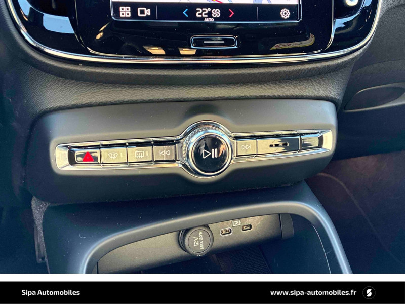 City Safety, système d'anticipation de collision intelligent : Détection des véhicules, cyclistes et piétons avec freinage automatique à pleine puissance. Détection des véhicules aux intersections avec freinage automatique à pleine puissance. Avertissement visuel et sonore paramétrable. Préparation des freins et ceintures de sécurité AV. / CleanZone : Filtre charbon de climatisation multi-actif AQS (limite l'entrée de pollen, de particules de pollution et de mauvaises odeurs en fermant automatiquement les arrivées d'air si nécessaire) et fonction pré-ventillation / Climatisation automatique bi-zone (incluant ouïes d'aération à l'AR) / Commande vocale avancée (climatisation, médias, téléphone, eManuel utilisateur et navigation) / Déclenchement automatique des feux de detresse lors d'un freinage d'urgence / Envoi automatique d'une alerte au service d'urgence Volvo en cas de collision / Fonction climatisation de l'habitacle moteur coupé / Frein de parking électronique automatique en fonction Auto Hold (désactivable) / Freinage automatique post-collision (réduction du risque de suraccident) / Jantes alliage 18" 5 branches Argent Brillant 235/55 R18 / Phares LED avec feux de jour design marteau de Thor et feux de route adaptatifs / Pneus toutes saisons (sur jantes 18" et 19") / Pré-câblage électrique pour le crochet d'attelage / Télécommande de verrouillage centralisé avec clé de contact intégrée, fermeture à distance des vitres et du toit ouvrant et fonction panique / Verrouillage automatique des portes à partir de 7 km/h / Volant sport en Cuir avec insert Aluminium / Accès au service d'assistance Volvo via bouton dédié dans le plafonnier / Accès au service d'urgence Volvo via bouton SOS dans le plafonnier / Airbag conducteur à déclenchement différencié / Airbag passager désactivable avec témoin d'indication (on/off) / Alerte vigilance conducteur / Application Volvo Cars / Assise des sièges AV extensible manuellement / Assistant d'arrêt d'urgence, qui peut faire ralentir le véhicule jusqu'à l'arrêt en cas d'absence de réaction du conducteur aux signaux d'alerte / Bas de caisse et passages de roues Anthracite / Ceintures de sécuritéà inertie à 3 points d'ancrage (sur les 5 sièges) / Combiné d'instruments digital 12,3" / Contour de la calandre chromé / Contrôle de la transmission en descente HDC / Direction assistée asservie à la vitesse / Eclairage d'accompagnement et éclairage d'approche / Eclairage d'intérieur : Spots de lecture à l'AV avec éclairage des passagers AV, éclairages dans le coffre (x2). Miroirs de courtoisie éclairés avec éclairage d'ambiance au niveau des pieds. Boîte à gants éclairée / Ecran tactile multimédia haute résolution 9" personnalisable / Espace de rangement sous la console centrale / Fonction Eco : optimisation des paramètres véhicule pour une conduite économique et écologique (à la demande) / Fonction Stop&Start : coupe et redémarre le moteur lorsque la voiture est à l'arrêt (déconnectable) / Hayon électrique avec fonction Confort / Incrustations Urban Grid / Indicateur de perte de pression des pneus / Infotainment Google Android / Kit anti-crevaison / Miroirs de courtoisie éclairés, spots de lecture à l'AV et éclairage dans le coffre / Ouverture des portes sans clé Keyless Entry incluant éclairage du sol dans les poignées de porte AV / Pare-brise en verre feuilleté et colonne de direction rétractable en cas de choc / Park Assist / Porte-cartes bancaires et cartes de services intégré dans la planche de bord / Porte-ticket de parking et d'autoroute / Protection de pare-chocs AV et AR Noir / Préparation pour le système Isofix (places latérales de la 2ème rangée de sièges) / Rails de toit Chrome / Rappel d'oubli de bouclage de ceinture de sécurité AV et AR / Réglage en hauteur manuel des ceintures AV / Rétroviseur intérieur électrochrome sans contour / Rétroviseurs couleur carrosserie avec partie inférieure noir / Sabots de protection AV et AR Noir / Sièges conducteur et passager avec réglage manuel de la hauteur / Sièges conducteur et passager avec réglage manuel de la longueur, de l'inclinaison du dossier et de l'assise / Sièges conducteur et passager avec réglage électriques des supports lombaires 4 positions / Sonde de température extérieure et horloge / Sortie d'échappement non visible / Système audio Volvo High Performance avec technologie air woofer au niveau de la console centrale 250 W, 8 HP et radio RDS / Système de contrôle de la stabilité et de la traction STC / Système de contrôle du freinage du véhicule VDC / Système de protection anti-sortie de route / Système de protection collision frontale : Détection du risque de collision frontale (de 65 à 140 km/h) avec action corrective sur la direction / Système de protection contre le coup du lapin WHIPS (sièges AV) / Système de protection contre les chocs latéraux SIPS / Système de protection en cas de sortie de route / Système de recharge sans fil pour smartphone situé dans le compartiment de rangement AV / Système de réglage en hauteur des phares / Système intelligent d'information au conducteur IDIS / Sécurité enfant à commande électrique / Tapis de sol textile AV/AR / Trappe de carburant intelligente sans bouchon / Trousse de 1er secours et triangle de présignalisation / Tunnel de la console centrale Anthracite / Verrouillage de sécurité enfant manuel / Vitres AV et AR électriques à impulsion (montée et descente) avec système anti-pincement