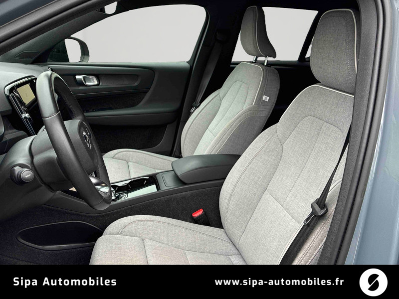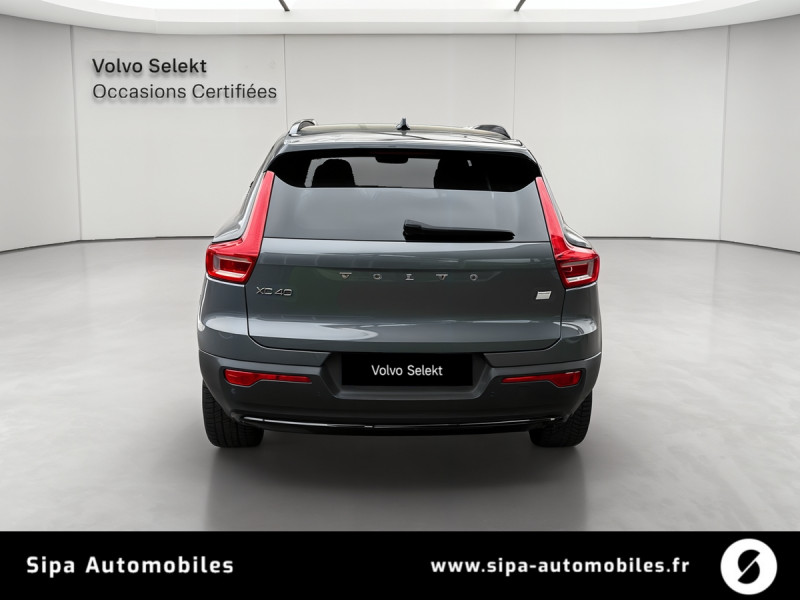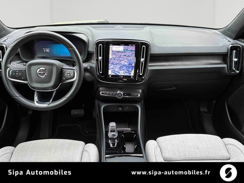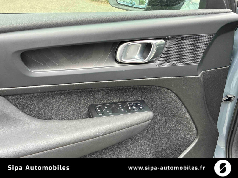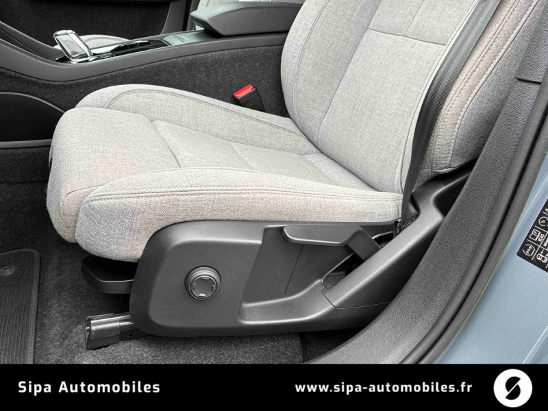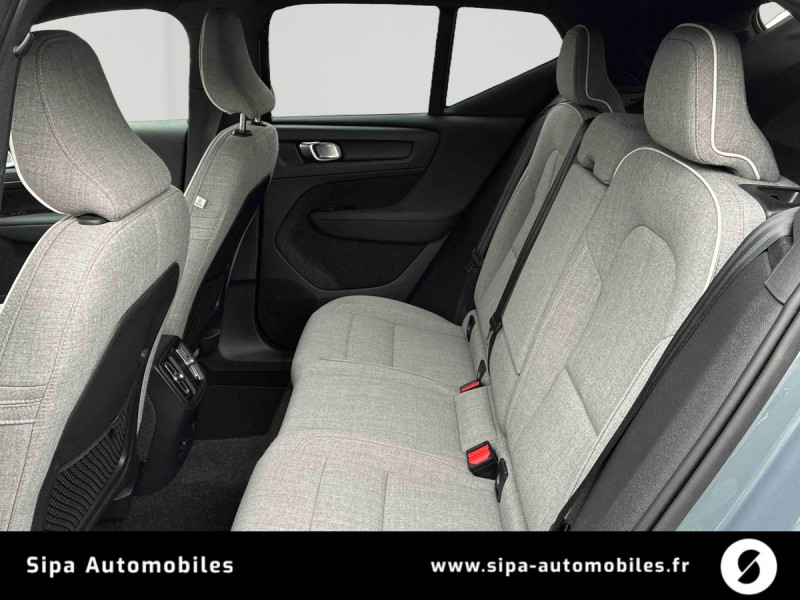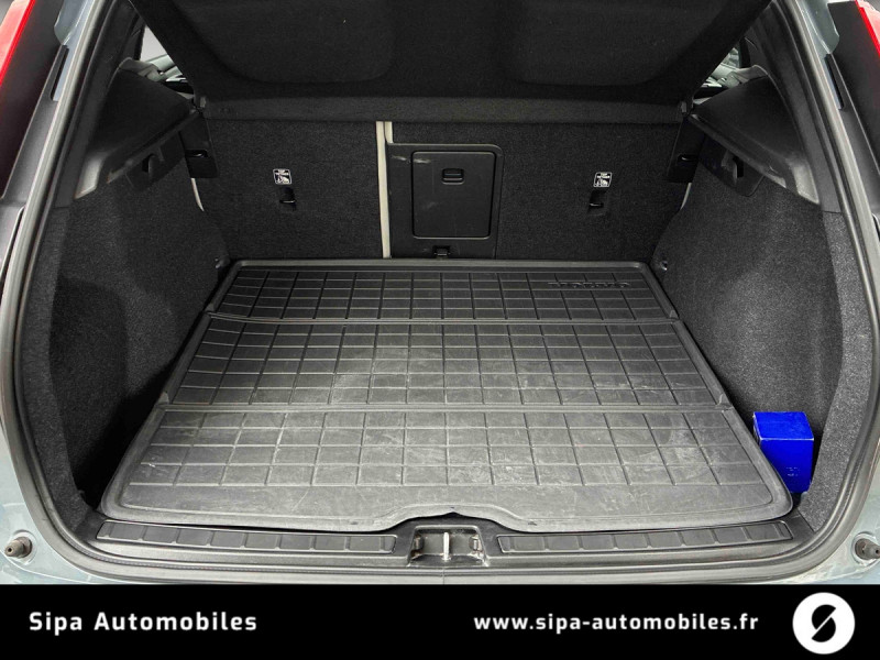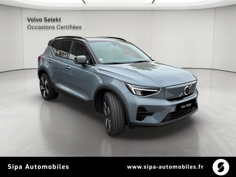 CleanZone : Filtre charbon de climatisation multi-actif (limite l'entrée de pollen, de particules de pollution et de mauvaises odeurs en fermant automatiquement les arrivées d'air si nécessaire) et fonction pré-ventillation / Climatisation automatique bi-zone (incluant ouïes d'aération à l'AR) / Déclenchement automatique des feux de detresse lors d'un freinage d'urgence / Envoi automatique d'une alerte au service d'urgence Volvo en cas de collision / Fonction climatisation de l'habitacle moteur coupé / Frein de parking électronique automatique en fonction Auto Hold (désactivable) / Freinage automatique post-collision (réduction du risque de suraccident) / Incrustations Aluminium / Jantes alliage 19" 5 branches Graphite Mat/Diamant AV 235/50 R19, AR 255/45 R19 / Phares LED avec feux de jour design marteau de Thor et feux de route adaptatifs / Pommeau de levier de vitesse gainé de Simili-Cuir / Pré-câblage électrique pour le crochet d'attelage / Seuil de coffre en Aluminium / Seuils de portes AV Volvo en Aluminium / Télécommande de verrouillage centralisé avec clé de contact intégrée, fermeture à distance des vitres et du toit ouvrant et fonction panique / Verrouillage automatique des portes à partir de 7 km/h / Volant sport avec insert Aluminium / 2 porte-cintres / Accès au service d'assistance Volvo via bouton dédié dans le plafonnier / Accès au service d'urgence Volvo via bouton SOS dans le plafonnier / Airbag passager désactivable avec témoin d'indication (on/off) / Airbags conducteur et passager à déclenchement différencié / Alerte vigilance conducteur / Application Volvo Cars sur smartphone iOS ou Android / Assise des sièges AV extensible manuellement / Assistance à l'évitement des piétons et des cyclistes / Badge Recharge sur le hayon / Bas de caisse et passages de roues Anthracite / Calandre AV pleine couleur carrosserie / Ceintures de sécuritéà inertie à 3 points d'ancrage (sur les 5 sièges) / City Safety, système d'anticipation de collision intelligent / Coffre sous le capot AV d'une capacité de 31 litres / Combiné d'instruments digital 12,3" / Contrôle de la transmission en descente HDC / Coques de rétroviseurs Noir brillant / Corbeille intégrée et amovible au niveau du tunnel central AV / Crochet pour sacs intégréà la boîte à gants / Câble de recharge de 7 mètres / 10 A. Pour prise secteur / Deuxième câble de recharge Type 2, 4.5 mètres, 32 A triphasé (fonctionne en monophasé) Pour borne de recharge / Diffuseur AR Noir laqué / Direction assistée asservie à la vitesse / Eclairage d'accompagnement et éclairage d'approche / Ecran tactile multimédia haute résolution 9" personnalisable / Espace de rangement sous la console centrale / Fonction Eco : optimisation des paramètres véhicule pour une conduite économique et écologique (à la demande) / Gravure Recharge sur les montants AR / Indicateur de perte de pression des pneus / Infotainment Google Android Services Google (comprend Google Maps, Google Assistant, Google Play Store, chargeur smartphone par induction et un volume de données illimité pour les 4 premières années) et Kit mains libres Bluetooth et Streaming Audio, mode d?emploi numérique du véhicule, réception de la radio numérique (DAB+), mises à jour Over the Air (OTA). / Kit anti-crevaison / Matériaux anti-allergènes dans l'habitacle (sellerie tissu, ceintures de sécurité, incrustations) / Miroirs de courtoisie éclairés, spots de lecture à l'AV et éclairage dans le coffre / Mise à jour du système à distance / Pare-brise en verre feuilleté et colonne de direction rétractable en cas de choc / Parties inférieures des vitres noir brillant / Pneus toutes saison / Port de recharge sur l'aile AR gauche et connecteur charge rapide (jusqu'à 150 kW) / Porte-cartes bancaires et cartes de services intégré dans la planche de bord / Protections de pare-chocs AV et AR Noir brillant / Préparation pour le système Isofix (places latérales de la 2ème rangée de sièges) / Rappel d'oubli de bouclage des ceintures de sécurité AV et AR / Réglage en hauteur manuel des ceintures AV / Rétroviseurs couleur carrosserie avec partie inférieure noir / Rétroviseurs intérieur (sans contour) et extérieur électrochrome / Sabots de protection AV et AR Noir / Siège conducteur et passager avec réglage manuel de la hauteur / Sièges conducteur et passager avec réglage manuel de la longueur, de l'inclinaison du dossier et de l'assise / Sièges conducteur et passager avec réglages électriques des supports lombaires / Sonde de température extérieure et horloge / Système audio Volvo High Performance avec technologie air woofer au niveau de la console centrale 250 W, 8 HP, radio numérique terrestre, prise 12 V et 2 ports USB C à l'AV / Système de contrôle de la stabilité et de la traction STC / Système de contrôle du freinage du véhicule VDC / Système de protection anti-sortie de route / Système de protection collision frontale : Détection du risque de collision frontale (de 65 à 140 km/h) avec action corrective sur la direction / Système de protection contre le coup du lapin WHIPS (sièges AV) / Système de protection contre les chocs latéraux SIPS / Système de protection en cas de sortie de route / Système de pré-conditionnement de l'habitacle (chauffage) / Système de réglage en hauteur des phares / Système intelligent d'information au conducteur IDIS / Tapis de sol premium / Trousse de 1er secours et triangle de présignalisation / Tunnel de la console centrale Noir brillant / Verrouillage de sécurité enfant manuel / Vitres AV et AR électriques à impulsion (montée et descente) avec système anti-pincement