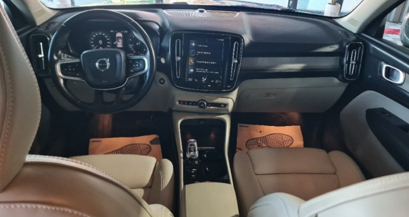 Cylindrée : 1477 cm3 Nb. Vitesse : 7 - 2 porte-cintres - Accès au service d?urgence Volvo via bouton SOS dans le plafonnier - Airbag genoux conducteur - Airbag passager désactivable avec témoin d'indication (on/off) - Airbags conducteur et passager à déclenchement différencié - Airbags latéraux conducteur et passager - Airbags rideaux - Alerte franchissement de ligne active - Alerte vigilance conducteur - Allumage automatique des feux - Antibrouillard AV à LED avec éclairage d'intersection - Apple CarPlay / Google Android Auto avec 2e prise USB - Application Volvo Cars avec fonction Car Sharing - Appuie-tête sur chaque siège réglable en hauteur - Appuis-tête AR rabattables automatiquement depuis l'écran central - Assise des sièges AV extensible manuellement - Assise et dossier des sièges en Cuir - Assistance au démarrage en côte - Badge T4/T5 Recharge sur le hayon - Bas de caisse et passages de roues Anthracite - Buses de lave-glace chauffantes - Câble de recharge de 4, 5 mètres / 10 A - Calandre spécifique Inscription avec contour chromé - Caméras Surround View (vision panoramique à 360°) incluant caméra AV et caméra de recul - Ceintures de sécurité à inertie à 3 points d'ancrage (sur les 5 sièges) - City Safety, système d'anticipation de collision intelligent - Clé Inscription gainée de cuir - CleanZone : filtre à charbon de climatisation multi-actif et fonction pré-ventilation - Climatisation automatique bi-zone et aérations individuelles à l'AR - Climatisation automatique bi-zone Inclut boîte à gants réfrigérée et ouïes d'aération à l'AR - Combiné d'instruments digital 12, 3' - Commande vocale avancée (climatisation, médias, téléphone, eManuel utilisateur et navigation) - Commandes audio au volant - Connexion Bluetooth - Contour inférieur des fenêtres latérales Argent brillant - Contrôle de la transmission en descente HDC - Contrôle de stabilité au roulis RSC - Correcteur électronique de trajectoire ESC - Crochet pour sacs intégré à la boîte à gants - Déclenchement automatique des feux de detresse lors d'un freinage d'urgence - Détecteur de pluie - Direction assistée électrique asservie à la vitesse - Dossier banquette AR rabattable 60/40 - Eclairage d'accompagnement et éclairage d'approche - Ecran tactile multimédia haute résolution 9' personnalisable - Espace de rangement sous la console centrale - Espace de rangement sous le siège conducteur - Feu antibrouillard AR - Feux de freinage d'urgence - Feux de jour à LED - Filet de protection coffre/habitacle - Filtre à particules sans entretien - Fonction climatisation de l'habitacle moteur coupé - Fonction Eco : optimisation des paramètres véhicule pour une conduite économique et écologique (à la demande) - Fonction Stop