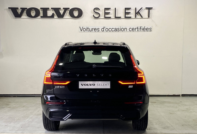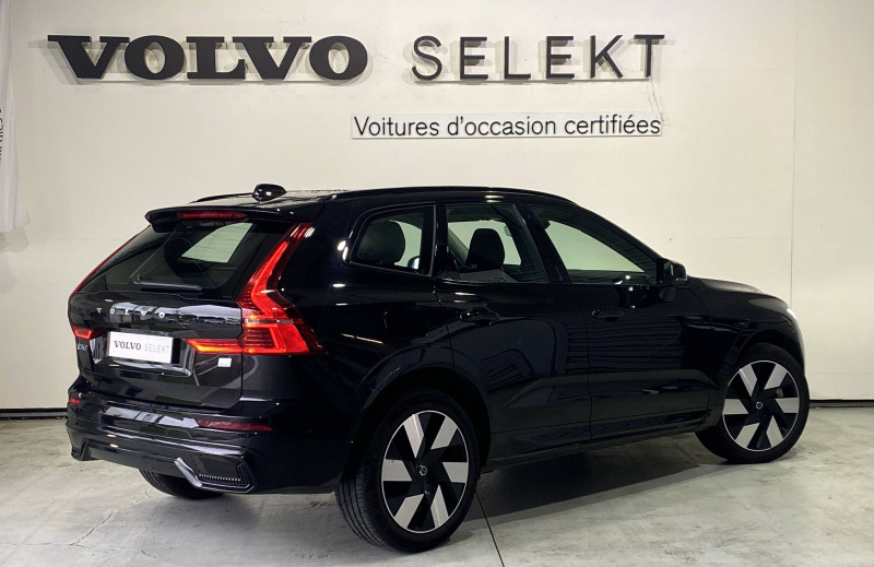 Assise et dossier des sièges en Cuir coloris Noir / Climatisation automatique bi-zone Inclut un système de recirculation de l'air et un filtre à pollen / Commande vocale avancée (climatisation, médias, téléphone, eManuel utilisateur et navigation) / Câble de recharge de 4,5 mètres avec LED d'indication de charge / Déclenchement automatique des feux de detresse lors d'un freinage d'urgence / Envoi automatique d'une alerte au service en cas de collision / Fonction climatisation de l'habitacle moteur coupé / Freinage automatique post-collision (réduction du risque de suraccident) / Incrustations Aluminium Maillé / Jantes alliage 20" 6 branches Noir / Diamant, 255/45 R20 / Pack Digital Connect / Pack Intellisafe Pro / Pack Visibilté / Pack éclairage / Phares directionnels Full LED avec correcteur dynamique de la portée, lave-phares à haute pression escamotables, feux de route actifs et feux de jour design marteau de thor / Planche de bord gainée de simili-cuir / Pommeau de levier de vitesse gainé de Simili-Cuir / Pré-câblage électrique pour le crochet d'attelage / Radar de stationnement AV et AR avec signal sonore et visuel / Seuil de coffre en Aluminium / Seuils de porte en Aluminium à l'AV badgés Volvo / Seuils de portes en Aluminium à l'AV badgés Recharge / Système de pré-conditionnement de l'habitacle (chauffage et climatisation) / Toit ouvrant panoramique en deux parties avec pare-soleil électrique / Télécommande de verrouillage centralisé avec clé de contact integrée, fermeture automatique des vitres et du toit ouvrant, fonction panique (déclenchement du klaxon et des feux de détresse) / Verrouillage automatique des portes à partir de 7 km/h / Verrouillage de sécurité enfant automatique commandé depuis le siège conducteur (condamne aussi les fenêtres AR) / Volant 3 branches gainé de Simili-Cuir / 2 prises USB type-C / 4 points d'ancrage dans les panneaux latéraux du compartiment à bagages / Accès au service d'assistance Volvo via bouton dédié dans le plafonnier / Accès au service d'urgence Volvo via bouton SOS dans le plafonnier / Affichage tête haute couleur avec système Alerte distance de sécurité / Airbag passager désactivable avec témoin d'indication (on/off) / Airbags conducteur et passager à déclenchement différencié / Alerte Distraction Trafic (Ready to drive notification) / Alerte vigilance conducteur / Application Volvo Cars sur smartphone iOS ou Android / Assise des sièges AV extensible (électriquement si le siège dispose des réglages électriques) / Bouclier AV et diffuseur AR spécifiques avec inserts Noir Laqué / Calandre spécifique avec incrustations et contour Noir Laqué / Ceintures de sécuritéà inertie à 3 points d'ancrage tous les sièges / Châssis Dynamique / City Safety (ou Safety Assistance) Système d'anticipation de collision intelligent / CleanZone Advanced : système de filtration de l'air avancé / Combiné d'instruments digital 12,3" nouvelle génération / Contour des vitres latérales Noir laqué / Contrôle de la transmission en descente HDC / Coques de rétroviseurs Noir Laqué / Direction assistée électrique asservie à la vitesse / Eclairage d'accompagnement et éclairage d'approche / Ecran central tactile multimédia haute résolution 9" personnalisable, nouvelle génération / Filet de protection coffre/habitacle / Fonction Stop&Start : coupe et redémarre le moteur lorsque la voiture est à l'arrêt (déconnectable) / Freins à disques 18" ventilés à l'AV, 17" à l'AR / Indicateur de perte de pression des pneus / Infotainment Google Android Services Google (comprend Google Maps, Google Assistant, Google Play Store, chargeur smartphone par induction et un volume de données illimité pour les 4 premières années) et Kit mains libres Bluetooth et Streaming Audio, mode d'emploi numérique du véhicule, réception de la radio numérique (DAB+), mises à jour Over the Air (OTA). / Inserts Noir Laqué sur le bouclier AV et AR / IntelliSafe Assist Régulateur adaptatif de vitesse et de distance ACC, Assistance à la conduite intelligente, Alerte distance de sécurité, Système d'assistance à l'arrêt d'urgence / IntelliSafe Surround Surveillance anti-angle mort, Assistance au changement de file, Alerte trafic en marche arrière et Alerte collision arrière avec action corrective sur la direction / Kit anti-crevaison / Miroirs de courtoisie éclairés, spots de lecture à l'AV, éclairage aux pieds à l'AV, dans la boîte à gants et le coffre, éclairage intérieur temporisé / Mise à jour du système à distance (Over The Air ou OTA) / Mode de conduite personnalisable : Pure, Hybrid, Power, AWD, Off Road Impactant direction, moteur, freins, ESC, Stop & Start, économies d'énergie, combiné digital et contrôle actif du bruit) / One Pedal Drive ou Conduite à une pédale Fonction permettant au conducteur de contrôler à la fois l'accélération et la décélération avec la seule pédale d'accélérateur / Ouverture des portes sans clé Keyless Entry incluant éclairage du sol dans les poignées de porte AV et ouverture Confort du hayon électrique (sans les mains) / Pare-brise en verre feuilleté et colonne de direction rétractable en cas de choc / Pare-chocs AR avec sorties d'échappement dissimulées / Pare-chocs AV couleur carrosserie avec inserts chromés / Pavillon de toit coloris Beige / Port de recharge sur l'aile AV gauche / Porte-ticket de parking et d'autoroute / Prise 12 V dans le coffre / Préparation pour le système Isofix (places latérales de la 2ème rangée de sièges) / Préparation pour l'installation d'un éthylomètre antidémarrage / Rails de toit couleur Noir Laqué / Rappel d'oubli de bouclage de ceinture de sécurité AV et AR / Rétroviseurs extérieurs couleur carrosserie / Rétroviseurs intérieur sans contour et extérieurs électrochromes / Siège conducteur à réglages électriques et à mémoire / Siège passager AV à réglages électriques /