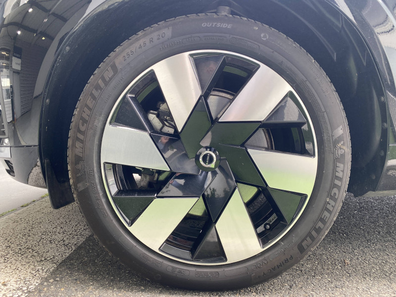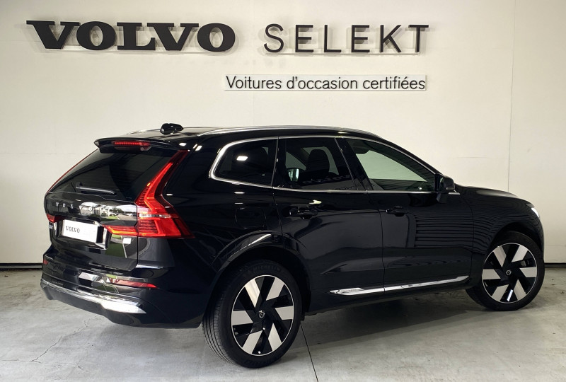 Assise et dossier des sièges en Cuir coloris Noir / Climatisation automatique bi-zone Inclut un système de recirculation de l'air et un filtre à pollen / Commande vocale avancée (climatisation, médias, téléphone, eManuel utilisateur et navigation) / Câble de recharge de 4,5 mètres avec LED d'indication de charge / Déclenchement automatique des feux de detresse lors d'un freinage d'urgence / Envoi automatique d'une alerte au service en cas de collision / Fonction climatisation de l'habitacle moteur coupé / Freinage automatique post-collision (réduction du risque de suraccident) / Incrustations Aluminium Maillé / Jantes alliage 20" 6 branches Noir / Diamant, 255/45 R20 / Pack Digital Connect / Pack Intellisafe Pro / Pack Visibilté / Pack éclairage / Phares directionnels Full LED avec correcteur dynamique de la portée, lave-phares à haute pression escamotables, feux de route actifs et feux de jour design marteau de thor / Planche de bord gainée de simili-cuir / Pommeau de levier de vitesse gainé de Simili-Cuir / Pré-câblage électrique pour le crochet d'attelage / Radar de stationnement AV et AR avec signal sonore et visuel / Seuil de coffre en Aluminium / Seuils de porte en Aluminium à l'AV badgés Volvo / Seuils de portes en Aluminium à l'AV badgés Recharge / Système de pré-conditionnement de l'habitacle (chauffage et climatisation) / Toit ouvrant panoramique en deux parties avec pare-soleil électrique / Télécommande de verrouillage centralisé avec clé de contact integrée, fermeture automatique des vitres et du toit ouvrant, fonction panique (déclenchement du klaxon et des feux de détresse) / Verrouillage automatique des portes à partir de 7 km/h / Verrouillage de sécurité enfant automatique commandé depuis le siège conducteur (condamne aussi les fenêtres AR) / Volant 3 branches gainé de Simili-Cuir / 2 prises USB type-C / 4 points d'ancrage dans les panneaux latéraux du compartiment à bagages / Accès au service d'assistance Volvo via bouton dédié dans le plafonnier / Accès au service d'urgence Volvo via bouton SOS dans le plafonnier / Affichage tête haute couleur avec système Alerte distance de sécurité / Airbag passager désactivable avec témoin d'indication (on/off) / Airbags conducteur et passager à déclenchement différencié / Alerte Distraction Trafic (Ready to drive notification) / Alerte vigilance conducteur / Application Volvo Cars sur smartphone iOS ou Android / Assise des sièges AV extensible (électriquement si le siège dispose des réglages électriques) / Calandre avec contour chromé et inserts verticaux Noir Laqué et chromés / Ceintures de sécuritéà inertie à 3 points d'ancrage tous les sièges / Châssis Dynamique / City Safety (ou Safety Assistance) Système d'anticipation de collision intelligent / CleanZone Advanced : système de filtration de l'air avancé / Combiné d'instruments digital 12,3" nouvelle génération / Contour des vitres latérales chromé / Contrôle de la transmission en descente HDC / Direction assistée électrique asservie à la vitesse / Eclairage d'accompagnement et éclairage d'approche / Ecran central tactile multimédia haute résolution 9" personnalisable, nouvelle génération / Filet de protection coffre/habitacle / Fonction Stop&Start : coupe et redémarre le moteur lorsque la voiture est à l'arrêt (déconnectable) / Freins à disques 18" ventilés à l'AV, 17" à l'AR / Indicateur de perte de pression des pneus / Infotainment Google Android Services Google (comprend Google Maps, Google Assistant, Google Play Store, chargeur smartphone par induction et un volume de données illimité pour les 4 premières années) et Kit mains libres Bluetooth et Streaming Audio, mode d'emploi numérique du véhicule, réception de la radio numérique (DAB+), mises à jour Over the Air (OTA). / Insert chromé sur le bouclier AR / Insert chromé sur le bouclier AV / Insert chromé sur les bas de caisse latéraux / IntelliSafe Assist Régulateur adaptatif de vitesse et de distance ACC, Assistance à la conduite intelligente, Alerte distance de sécurité, Système d'assistance à l'arrêt d'urgence / IntelliSafe Surround Surveillance anti-angle mort, Assistance au changement de file, Alerte trafic en marche arrière et Alerte collision arrière avec action corrective sur la direction / Kit anti-crevaison / Miroirs de courtoisie éclairés, spots de lecture à l'AV, éclairage aux pieds à l'AV, dans la boîte à gants et le coffre, éclairage intérieur temporisé / Mise à jour du système à distance (Over The Air ou OTA) / Mode de conduite personnalisable : Pure, Hybrid, Power, AWD, Off Road Impactant direction, moteur, freins, ESC, Stop & Start, économies d'énergie, combiné digital et contrôle actif du bruit) / One Pedal Drive ou Conduite à une pédale Fonction permettant au conducteur de contrôler à la fois l'accélération et la décélération avec la seule pédale d'accélérateur / Ouverture des portes sans clé Keyless Entry incluant éclairage du sol dans les poignées de porte AV et ouverture Confort du hayon électrique (sans les mains) / Pare-brise en verre feuilleté et colonne de direction rétractable en cas de choc / Pare-chocs AR avec sorties d'échappement dissimulées / Pare-chocs AV couleur carrosserie avec inserts chromés / Pavillon de toit coloris Beige / Port de recharge sur l'aile AV gauche / Porte-ticket de parking et d'autoroute / Prise 12 V dans le coffre / Préparation pour l'installation d'un éthylomètre antidémarrage / Préparation pour le système Isofix (places latérales de la 2ème rangée de sièges) / Rails de toit Chrome / Rappel d'oubli de bouclage de ceinture de sécurité AV et AR / Rétroviseurs extérieurs couleur carrosserie / Rétroviseurs intérieur sans contour et extérieurs électrochromes / Siège conducteur à réglages électriques et à mémoire / Siège passager AV à réglages électriques / Siège passager avec fonction mémoi