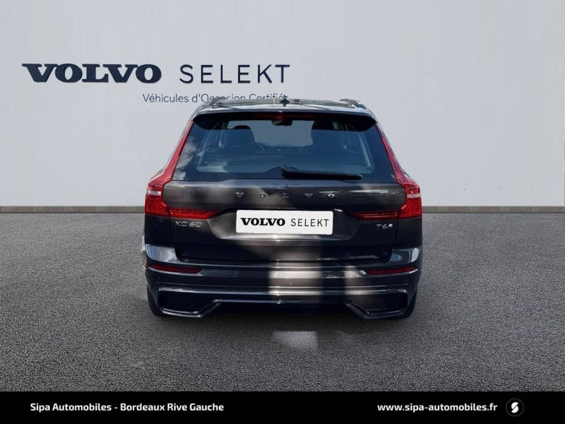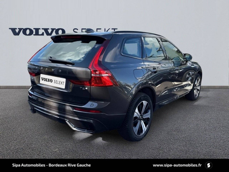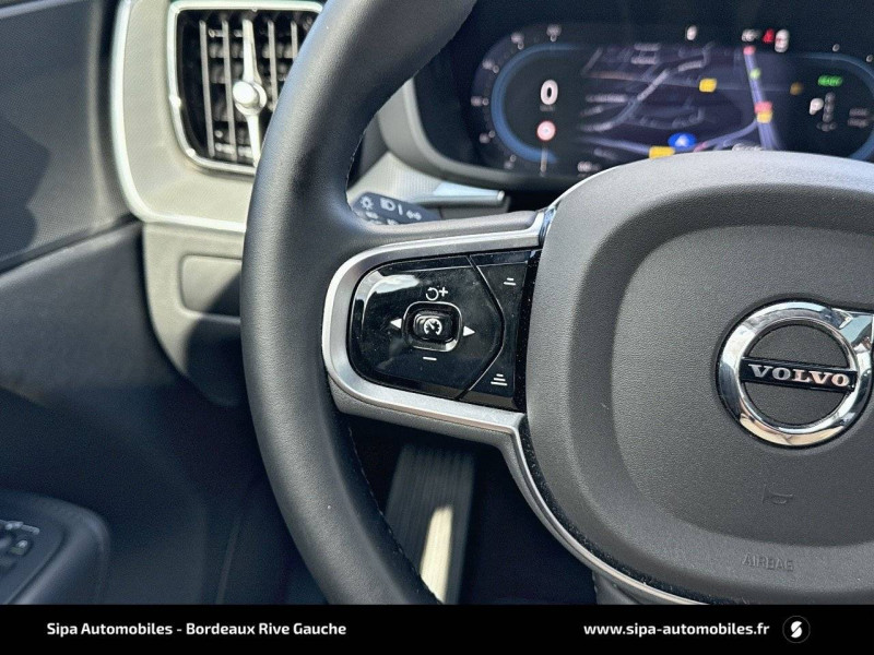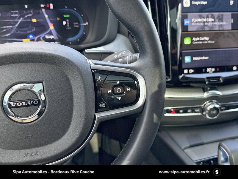 2 prises USB type-C / 4 points d'ancrage dans les panneaux latéraux du compartiment à bagages / Accès au service d'assistance Volvo via bouton dédié dans le plafonnier / Accès au service d'urgence Volvo via bouton SOS dans le plafonnier / Airbag passager désactivable avec témoin d'indication (on/off) / Airbags conducteur et passager à déclenchement différencié / Alerte Distraction Trafic (Ready to drive notification) / Alerte vigilance conducteur / Application Volvo Cars sur smartphone iOS ou Android / Appuie-tête AR rabattables électriquement / Assise des sièges AV extensible (électriquement si le siège dispose des réglages électriques) / Assise et dossier des sièges en Cuir coloris Noir / Bouclier AV et diffuseur AR spécifiques avec inserts Noir Laqué / Câble de recharge de 4,5 mètres avec LED d'indication de charge / Calandre spécifique avec incrustations et contour Noir Laqué / Ceintures de sécuritéà inertie à 3 points d'ancrage tous les sièges / Châssis Dynamique / City Safety (ou Safety Assistance) Système d'anticipation de collision intelligent / Climatisation automatique bi-zone Inclut un système de recirculation de l'air et un filtre à pollen / Combiné d'instruments digital 12,3" nouvelle génération / Commande vocale avancée (climatisation, médias, téléphone, eManuel utilisateur et navigation) / Contour des vitres latérales Noir laqué / Contrôle de la transmission en descente HDC / Coques de rétroviseurs Noir Laqué / Déclenchement automatique des feux de detresse lors d'un freinage d'urgence / Direction assistée électrique asservie à la vitesse / Eclairage d'accompagnement et éclairage d'approche / Ecran central tactile multimédia haute résolution 9" personnalisable, nouvelle génération / Envoi automatique d'une alerte au service en cas de collision / Filet de protection coffre/habitacle / Fonction climatisation de l'habitacle moteur coupé / Fonction Stop&Start : coupe et redémarre le moteur lorsque la voiture est à l'arrêt (déconnectable) / Freinage automatique post-collision (réduction du risque de suraccident) / Freins à disques 18" ventilés à l'AV, 17" à l'AR / Incrustations Aluminium Maillé / Indicateur de perte de pression des pneus / Infotainment Google Android Services Google (comprend Google Maps, Google Assistant, Google Play Store, chargeur smartphone par induction et un volume de données illimité pour les 4 premières années) et Kit mains libres Bluetooth et Streaming Audio, mode d'emploi numérique du véhicule, réception de la radio numérique (DAB+), mises à jour Over the Air (OTA). / Inserts Noir Laqué sur le bouclier AV et AR / Jantes alliage 19" 5 branches double Noir/Diamant 235/55 R19 / Kit anti-crevaison / Miroirs de courtoisie éclairés, spots de lecture à l'AV, éclairage aux pieds à l'AV, dans la boîte à gants et le coffre, éclairage intérieur temporisé / Mise à jour du système à distance (Over The Air ou OTA) / Mode de conduite personnalisable : Pure, Hybrid, Power, AWD, Off Road Impactant direction, moteur, freins, ESC, Stop & Start, économies d'énergie, combiné digital et contrôle actif du bruit) / One Pedal Drive ou Conduite à une pédale Fonction permettant au conducteur de contrôler à la fois l'accélération et la décélération avec la seule pédale d'accélérateur / Ouverture des portes sans clé Keyless Entry incluant éclairage du sol dans les poignées de porte AV et ouverture Confort du hayon électrique (sans les mains) / Pack Digital Connect / Pack éclairage / Pare-brise en verre feuilleté et colonne de direction rétractable en cas de choc / Pare-chocs AR avec sorties d'échappement dissimulées / Pare-chocs AV couleur carrosserie avec inserts chromés / Pavillon de toit coloris Beige / Phares LED avec correcteur dynamique de la portée et feux de jour design marteau de Thor / Pommeau de levier de vitesse gainé de Simili-Cuir / Port de recharge sur l'aile AV gauche / Porte-ticket de parking et d'autoroute / Pré-câblage électrique pour le crochet d'attelage / Préparation pour le système Isofix (places latérales de la 2ème rangée de sièges) / Préparation pour l'installation d'un éthylomètre antidémarrage / Prise 12 V dans le coffre / Purificateur d'air CleanZone Avancé Système de filtration de l'air avancé avec indication de la qualité de l'air / Radar de stationnement AV et AR avec signal sonore et visuel / Rails de toit couleur Noir Laqué / Rappel d'oubli de bouclage de ceinture de sécurité AV et AR / Rétroviseurs extérieurs couleur carrosserie / Rétroviseurs intérieur sans contour et extérieurs électrochromes / Sécurité connectée Alerte Feux de détresse et Chaussée glissante (nécessite une connexion Internet) / Sellerie Cuir avec Sièges confort / Seuil de coffre en Aluminium / Seuils de porte en Aluminium à l'AV badgés Volvo / Seuils de portes en Aluminium à l'AV badgés Recharge / Siège conducteur à réglages électriques et à mémoire / Siège passager AV à réglages électriques / Siège passager avec fonction mémoire / Sonde de température extérieure et horloge / Structure de l'habitacle renforcéà l'acier de Bore / Subwoofer / Supports lombaires des sièges AV réglables électriquement (4 positions) / Système audio Volvo High Performance, 220 W, 10 HP, radio RDS / Système de contrôle de la stabilité et de la traction STC / Système de contrôle du freinage du véhicule VDC / Système de pré-conditionnement de l'habitacle (chauffage et climatisation) / Système de protection anti-sortie de route / Système de protection collision frontale : Détection du risque de collision frontale (jusqu'à 80 km/h) avec action corrective sur la direction / Système de protection en cas de sortie de route / Système de récupération de l'énergie au freinage / Système de réglage en hauteur des phares / Système intelligent d'information au conducteur IDIS / Tapis de sol textile AV/AR / Télécommande de