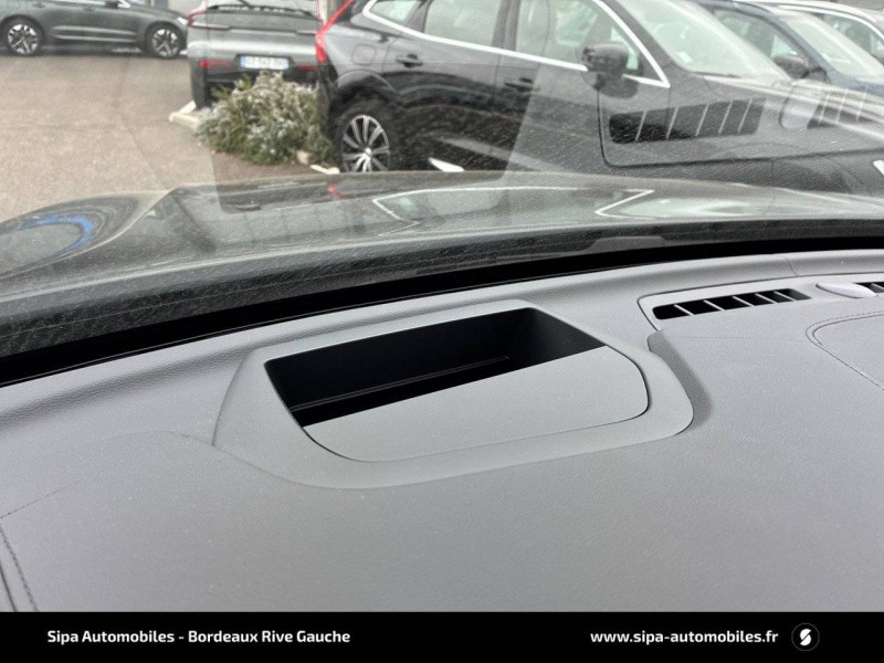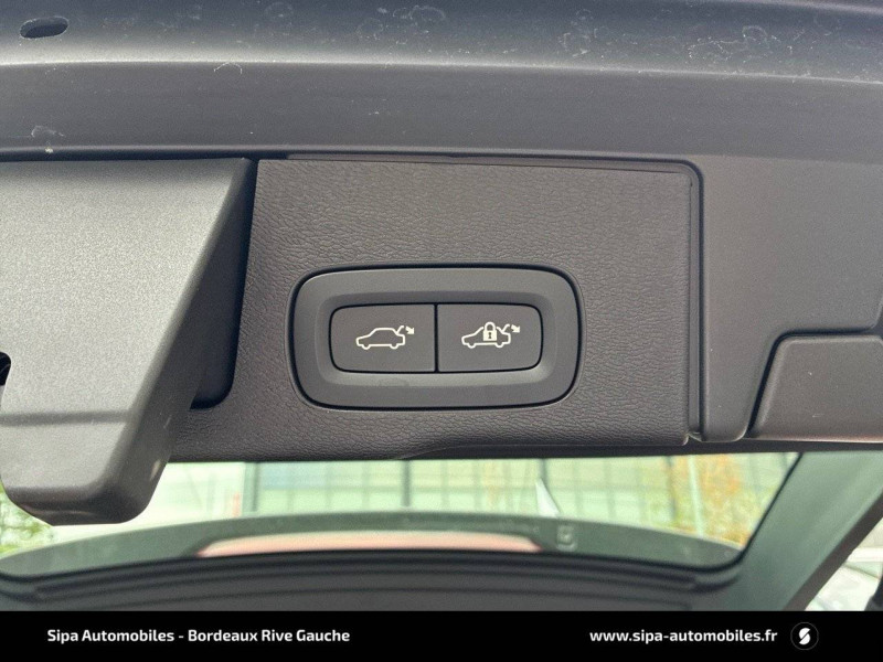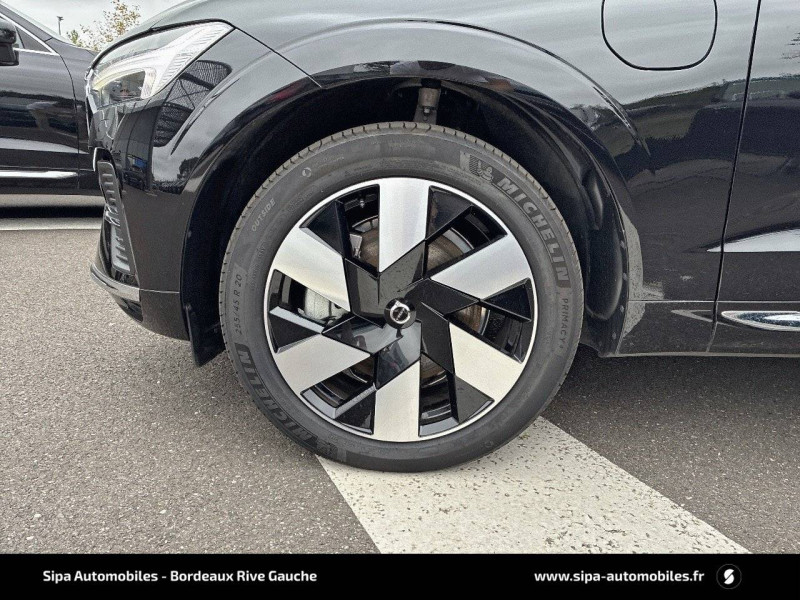 2 prises USB type-C / 4 points d'ancrage dans les panneaux latéraux du compartiment à bagages / Accès au service d'assistance Volvo via bouton dédié dans le plafonnier / Accès au service d'urgence Volvo via bouton SOS dans le plafonnier / Affichage tête haute couleur avec système Alerte distance de sécurité / Airbag passager désactivable avec témoin d'indication (on/off) / Airbags conducteur et passager à déclenchement différencié / Alerte Distraction Trafic (Ready to drive notification) / Alerte vigilance conducteur / Application Volvo Cars sur smartphone iOS ou Android / Appuie-tête AR rabattables électriquement / Assise des sièges AV extensible (électriquement si le siège dispose des réglages électriques) / Câble de recharge de 4,5 mètres avec LED d'indication de charge / Calandre avec contour chromé et inserts verticaux Noir Laqué et chromés / Ceintures de sécuritéà inertie à 3 points d'ancrage tous les sièges / Châssis Dynamique / City Safety (ou Safety Assistance) Système d'anticipation de collision intelligent / Climatisation automatique bi-zone Inclut un système de recirculation de l'air et un filtre à pollen / Combiné d'instruments digital 12,3" nouvelle génération / Commande vocale avancée (climatisation, médias, téléphone, eManuel utilisateur et navigation) / Contour des vitres latérales chromé / Contrôle de la transmission en descente HDC / Déclenchement automatique des feux de detresse lors d'un freinage d'urgence / Direction assistée électrique asservie à la vitesse / Eclairage d'accompagnement et éclairage d'approche / Ecran central tactile multimédia haute résolution 9" personnalisable, nouvelle génération / Envoi automatique d'une alerte au service en cas de collision / Filet de protection coffre/habitacle / Fonction climatisation de l'habitacle moteur coupé / Fonction Stop&Start : coupe et redémarre le moteur lorsque la voiture est à l'arrêt (déconnectable) / Freinage automatique post-collision (réduction du risque de suraccident) / Freins à disques 18" ventilés à l'AV, 17" à l'AR / Incrustations Aluminium Maillé / Indicateur de perte de pression des pneus / Infotainment Google Android Services Google (comprend Google Maps, Google Assistant, Google Play Store, chargeur smartphone par induction et un volume de données illimité pour les 4 premières années) et Kit mains libres Bluetooth et Streaming Audio, mode d'emploi numérique du véhicule, réception de la radio numérique (DAB+), mises à jour Over the Air (OTA). / Insert chromé sur le bouclier AR / Insert chromé sur le bouclier AV / Insert chromé sur les bas de caisse latéraux / IntelliSafe Assist Régulateur adaptatif de vitesse et de distance ACC, Assistance à la conduite intelligente, Alerte distance de sécurité, Système d'assistance à l'arrêt d'urgence / IntelliSafe Surround Surveillance anti-angle mort, Assistance au changement de file, Alerte trafic en marche arrière et Alerte collision arrière avec action corrective sur la direction / Jantes alliage 20" 6 branches Noir / Diamant, 255/45 R20 / Kit anti-crevaison / Miroirs de courtoisie éclairés, spots de lecture à l'AV, éclairage aux pieds à l'AV, dans la boîte à gants et le coffre, éclairage intérieur temporisé / Mise à jour du système à distance (Over The Air ou OTA) / Mode de conduite personnalisable : Pure, Hybrid, Power, AWD, Off Road Impactant direction, moteur, freins, ESC, Stop & Start, économies d'énergie, combiné digital et contrôle actif du bruit) / One Pedal Drive ou Conduite à une pédale Fonction permettant au conducteur de contrôler à la fois l'accélération et la décélération avec la seule pédale d'accélérateur / Ouverture des portes sans clé Keyless Entry incluant éclairage du sol dans les poignées de porte AV et ouverture Confort du hayon électrique (sans les mains) / Pack Digital Connect / Pack éclairage / Pack Intellisafe Pro IntelliSafe Assist IntelliSafe Surround / Pack Visibilté / Pare-brise en verre feuilleté et colonne de direction rétractable en cas de choc / Pare-chocs AR avec sorties d'échappement dissimulées / Pare-chocs AV couleur carrosserie avec inserts chromés / Pavillon de toit coloris Beige / Phares directionnels Full LED avec correcteur dynamique de la portée, lave-phares à haute pression escamotables, feux de route actifs et feux de jour design marteau de thor / Planche de bord gainée de simili-cuir / Pommeau de levier de vitesse gainé de Simili-Cuir / Port de recharge sur l'aile AV gauche / Porte-ticket de parking et d'autoroute / Pré-câblage électrique pour le crochet d'attelage / Préparation pour le système Isofix (places latérales de la 2ème rangée de sièges) / Préparation pour l'installation d'un éthylomètre antidémarrage / Prise 12 V dans le coffre / Purificateur d'air CleanZone Avancé Système de filtration de l'air avancé avec indication de la qualité de l'air / Radar de stationnement AV et AR avec signal sonore et visuel / Rails de toit Chrome / Rappel d'oubli de bouclage de ceinture de sécurité AV et AR / Rétroviseurs extérieurs couleur carrosserie / Rétroviseurs intérieur sans contour et extérieurs électrochromes / Sécurité connectée Alerte Feux de détresse et Chaussée glissante (nécessite une connexion Internet) / Sellerie Cuir avec Sièges confort / Seuil de coffre en Aluminium / Seuils de porte en Aluminium à l'AV badgés Volvo / Seuils de portes en Aluminium à l'AV badgés Recharge / Siège conducteur à réglages électriques et à mémoire / Siège passager AV à réglages électriques / Siège passager avec fonction mémoire / Sièges AR chauffants (3 niveaux d'intensité) / Sièges AV chauffants (3 niveaux d'intensité) / Sonde de température extérieure et horloge / Structure de l'habitacle renforcéà l'acier de Bore / Subwoofer / Supports lombaires des sièges AV réglables électriquement (4 positions) / Système audio Volvo Harman Kardon Premium