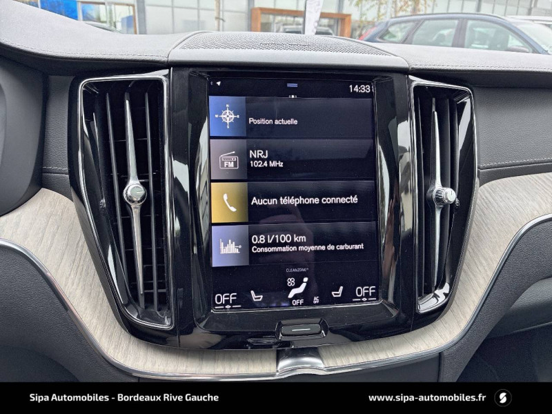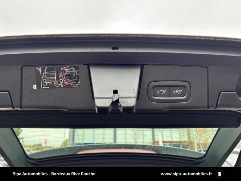 2 prises USB type-C / 4 points d'ancrage dans les panneaux latéraux du compartiment à bagages / Accès au service d'urgence Volvo via bouton SOS dans le plafonnier / Affichage tête haute couleur personnalisable avec système Alerte distance de sécurité / Airbag conducteur à déclenchement différencié / Airbag passager désactivable avec témoin d'indication (on/off) / Alerte Distraction Trafic (Ready to drive notification) / Alerte vigilance conducteur / Assise des sièges AV extensible (électriquement si le siège dispose des réglages électriques) / Assise et dossier des sièges en Cuir / Câble de recharge de 4,5 mètres avec LED d'indication de charge / Calandre avec contour chromé et inserts verticaux Noir Laqué et chromés / Ceintures de sécuritéà inertie à 3 points d'ancrage tous les sièges / Châssis Dynamique / City Safety (ou Safety Assistance) Système d'anticipation de collision intelligent / CleanZone : filtre à charbon de climatisation multi-actif et fonction préventilation / Clé gainée de cuir / Combiné d'instruments digital 12,3" nouvelle génération / Commande vocale avancée (climatisation, médias, téléphone, eManuel utilisateur et navigation) / Contour des vitres latérales chromé / Contrôle de la transmission en descente HDC / Déclenchement automatique des feux de detresse lors d'un freinage d'urgence / Direction assistée électrique asservie à la vitesse / Eclairage d'accompagnement et éclairage d'approche / Ecran central tactile multimédia haute résolution 9" personnalisable, nouvelle génération / Filet de protection coffre/habitacle / Fonction climatisation de l'habitacle moteur coupé / Fonction Eco : optimisation des paramètres véhicule pour une conduite économique et écologique (à la demande) / Fonction Stop&Start : coupe et redémarre le moteur lorsque la voiture est à l'arrêt (déconnectable) / Freinage automatique post-collision (réduction du risque de suraccident) / Incrustations Bois Flotté / Incrustations Bois Moderne Mat / Indicateur de perte de pression des pneus / Infotainment Google Android avec service Automotive et Google Maps / Insert chromé sur le bouclier AR / Insert chromé sur le bouclier AV / Insert chromé sur les bas de caisse latéraux / IntelliSafe Assist Régulateur adaptatif de vitesse et de distance ACC, Assistance à la conduite intelligente, Alerte distance de sécurité, Système d'assistance à l'arrêt d'urgence / Jantes alliage 19" 5 branches double Noir / Diamant, 235/55 R19 / Kit anti-crevaison / Miroirs de courtoisie éclairés, spots de lecture à l'AV, éclairage aux pieds à l'AV, dans la boîte à gants et le coffre, éclairage intérieur temporisé / Mise à jour du système à distance (Over The Air ou OTA) / Mode de conduite personnalisable Impactant direction, moteur, freins, ESC, Stop & Start, économies d'énergie, combiné digital et contrôle actif du bruit) / Ouverture des portes sans clé Keyless Entry incluant éclairage du sol dans les poignées de porte AV et ouverture Confort du hayon électrique (sans les mains) / Pack Digital Connect / Pack éclairage / Pack Prestige / Pare-brise en verre feuilleté et colonne de direction rétractable en cas de choc / Pare-chocs AR avec sorties d'échappement dissimulées / Pare-chocs AV couleur carrosserie avec inserts chromés / Phares LED avec correcteur dynamique de la portée et feux de jour design marteau de Thor / Planche de bord gainée de simili-cuir / Pommeau de levier de vitesses exclusif en cristal d'Orrefors / Port de recharge sur l'aile AV gauche / Porte-ticket de parking et d'autoroute / Pré-câblage électrique pour le crochet d'attelage / Préparation pour le système Isofix (places latérales de la 2ème rangée de sièges) / Prise 12 V dans le coffre / Radar de stationnement AV et AR avec signal sonore et visuel / Rails de toit couleur aluminium / Rappel d'oubli de bouclage de ceinture de sécurité AV et AR / Rétroviseurs extérieurs couleur carrosserie / Rétroviseurs intérieur sans contour et extérieurs électrochromes / Sécurité connectée Alerte Feux de détresse et Chaussée glissante (nécessite une connexion Internet) / Sellerie Cuir avec Sièges confort / Seuil de coffre en Aluminium / Seuils de portes en Aluminium à l'AV badgés Recharge / Siège conducteur à réglages électriques et à mémoire / Siège passager AV à réglages électriques / Siège passager avec fonction mémoire / Sièges AV chauffants (3 niveaux d'intensité) / Sonde de température extérieure et horloge / Structure de l'habitacle renforcéà l'acier de Bore / Subwoofer / Supports lombaires des sièges AV réglables électriquement (4 positions) / Système Alerte Trafic en marche AR avec freinage automatique en cas de danger (Rear auto brake) / Système audio Volvo Harman Kardon Premium Sound / Système de contrôle de la stabilité et de la traction STC / Système de contrôle du freinage du véhicule VDC / Système de filtration de l'air CleanZone Advanced avec indication de la qualité de l'air / Système de pré-conditionnement de l'habitacle (chauffage et climatisation) / Système de protection anti-sortie de route / Système de protection collision frontale : Détection du risque de collision frontale (de 65 à 140 km/h) avec action corrective sur la direction / Système de protection en cas de sortie de route / Système de récupération de l'énergie au freinage / Système de réglage en hauteur des phares / Système intelligent d'information au conducteur IDIS / Tapis de sol textile AV/AR / Télécommande de verrouillage centralisé avec clé de contact integrée, fermeture automatique des vitres et du toit ouvrant, fonction panique (déclenchement du klaxon et des feux de détresse) / Toit ouvrant panoramique en deux parties avec pare-soleil électrique / Trappe de carburant intelligente sans bouchon / Trousse de 1er secours et triangle de présignalisation / Verrouillage automatique des portes à partir de 7 k