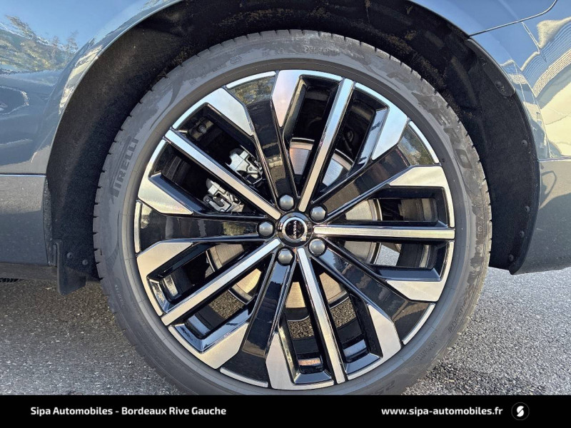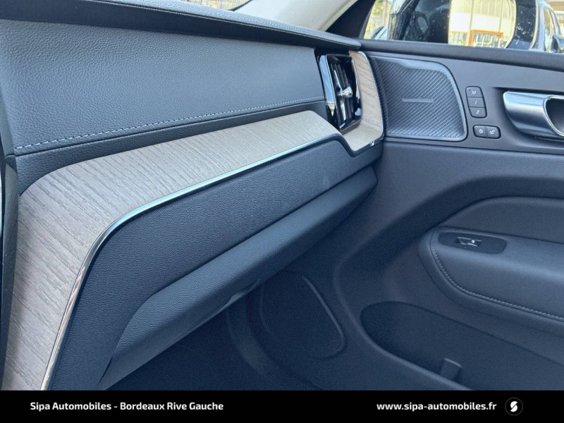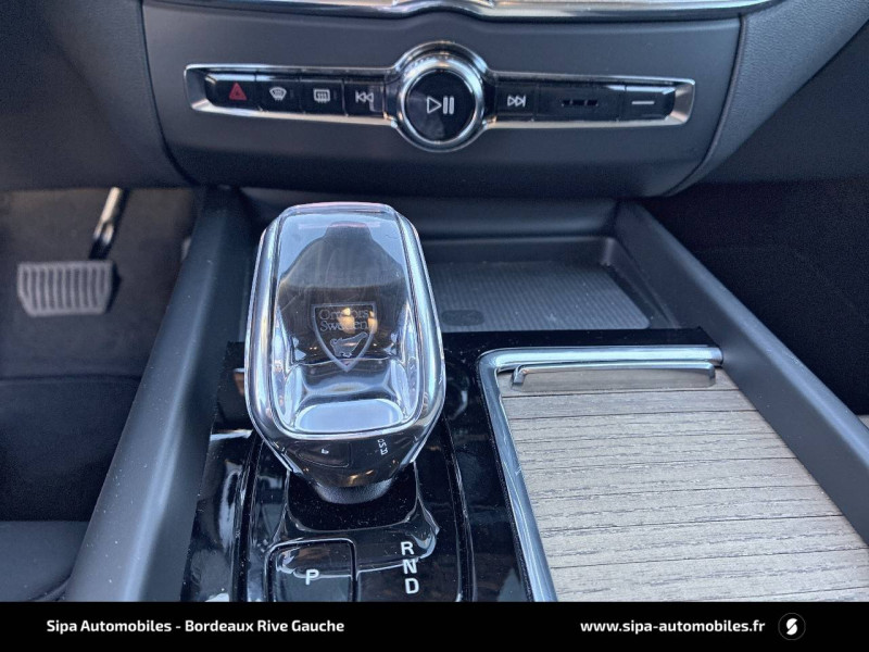 4 prises USB type-C / 5 modes de conduite disponibles : Hybrid, Power, Pure, Off road, AWD / Accès au service d'assistance Volvo via bouton dédié dans le plafonnier / Accès au service d'urgence Volvo via bouton SOS dans le plafonnier / Airbag passager désactivable avec témoin d'indication (on/off) / Alerte Distraction Trafic (ou Ready To Drive Notification) informe le conducteur de porter plus d'attention sur le trafic / Alerte vigilance conducteur en cas de distraction ou de fatigue un avertissement sonore et un message sur l'écran conducteur vous suggèrent de faire une pause / Application Volvo Cars sur smartphone iOS ou Android / Appuie-tête AR rabattables électriquement / Barres de toit longitudinales noir / Bas de caisse, passage de roue et partie basse des pare-chocs AV et AR couleur carrosserie / Bouton de démarrage en Aluminium cranté / Bouton de verrouillage centralisé pour le conducteur et la passager avec diode de contrôle / Buses lave-glace intégrées aux balais d'essuie-glace / Câble de recharge Type 2 mode 2 monophasé 8 A / Cache-bagages avec fonction de position de chargement / Ceintures de sécuritéà inertie à 3 points d'ancrage tous les sièges / Châssis Dynamique / Climatisation automatique bi-zone Inclut un système de recirculation de l'air et un filtre à pollen / Combiné d'instruments digital derrière le volant 12,3" / Commande vocale avancée (climatisation, médias, téléphone, eManuel utilisateur et navigation) / Contrôle de la transmission en descente HDC / Déclenchement automatique des feux de detresse lors d'un freinage d'urgence / Eclairage d'intérieur intérmédiaire: jambes AV, miroirs de courtoisie, liseuses, éclairage de rangement ARe, boîte à gants et coffre / En cas de collision, envoi automatique d'une alerte au service d'urgence Volvo / Espace de rangement sous le plancher du coffre / Fonction Stop & Start : coupe et redémarre le moteur lorsque la voiture est à l'arrêt / Freinage automatique post-collision suite à l'activation des prétensionneurs de sécurité ou d'un airbag / Frein de parking électronique automatique en fonction Auto Hold désactivable / Freins à disques 18" ventilés à l'AV, 17" à l'AR / Grand écran central flottant 11,2'' / Hayon du coffre électrique avec ouverture mains libres / Incrustations Bois Flotté / Indicateur de perte de pression des pneus TPMS / Jantes alliage 20'' 5 branches en Y Noir / Diamant / Kit anti-crevaison / Levier de vitesses en Cristal d'Orrefors / Mise à jour du système à distance (Over The Air ou OTA) / Ouverture des portes et démarrge sans clé Keyless / Pack Hiver - Sièges AV chauffants (trois niveaux d'intensité) - Sièges AR chauffants sur les places aux extrémités (trois niveaux d'intensité) - Volant chauffant / Pack Mémoire - Siège conducteur à réglages électriques avec fonction mémoire - Siège passager avant à réglages électriques avec fonction mémoire - Supports lombaires des sièges AV réglables électriquement (4 positions) - Assise des sièges AV extensible électriquement / Pack Pilot Assist Pilot Assist, assistance à la conduite intelligente : Maintien de la distance de sécurité avec le véhicule de devant en adaptant la vitesse, Maintien du véhicule dans sa voie grâce à de légers ajustements de la direction, Fonctionnement jusqu'à l'arrêt complet du véhicule Surveillance des angles morts avec alerte trafic en marche AR / Pack Premium Toit ouvrant panoramique en deux parties avec pare-soleil électrique, Affichage tête haute couleur, Caméra avec vision panoramique à 360° / Pack Visibilté - Lave-phares à haute pression - Phares directionnels Full LED avec correcteur dynamique de la portée - Éclairage intérieur haut de gamme : lampes de lecture, bacs de rangement des portes, des porte-gobelets et des poignées de porte intérieures, et le coffre. / Pare-brise en verre feuilleté et colonne de direction rétractable en cas de choc / Phares AV à LED avec feux du jour marteau de Thor / Préparation pour le système Isofix (places latérales de la 2ème rangée de sièges) / Prises 12V à l'AV, à l'AR et dans le coffre / Purificateur d'air : système de filtration de l'air avancé avec indication de la qualité de l'air / Radar de stationnement AV et AR avec signal sonore et visuel / Rappel d'oubli de bouclage de ceinture de sécurité AV et AR / Réglage en hauteur manuel des ceintures AV et des places latérales de la 2ème rangée de sièges / Régulateur adaptatif de vitesse et de distance ACC / Rétroviseurs intérieur sans contour et extérieurs électrochromes / Sellerie confort Nordico / Seuil de coffre en Inox / Seuils de porte en Aluminium à l'AV badgés Volvo / Sièges AR avec dossier rabattable en 2 parties 60/40 / Style Dark Rails de toit noir laqué, Calandre style Dark avec inserts noir laqué, Contour des vitres latérales noir laqué, Pare-chocs avec inserts noir laqué, Coques de rétroviseurs noir laqué / Système audio Volvo Harman Kardon Amplificateur 12 canaux de 600 W, 14 HP dont un subwoofer Technologie Dirac unique de traitement du son qui optimise la réponse de chaque haut-parleurs pour garantir une parfaite harmonie pour chacun des occupants / Système audio Volvo High Performance, 220 W, 10 HP / Système d'adaptation intelligente de la vitesse ou Intelligent Speed Assist (ISA) / Système d'anticipation de collision intelligent (ou Safety Assistance) Système fonctionnant de jour comme de nuit et détecte : - les autres véhicules (voitures, camions, motos, scooters) - les piétons et cyclistes - les grands animaux - les marquages de signalisation fixes comme les bords de route, les marquages de voie et les structures fixes - les panneaux routiers Système de protection anti-sortie de route : détection du risque de sortie de route avec action corrective sur la direction et des vibrations au volant si le conducteur ne réagit pas / Système de contrôle de la qualité de l'air / Système d