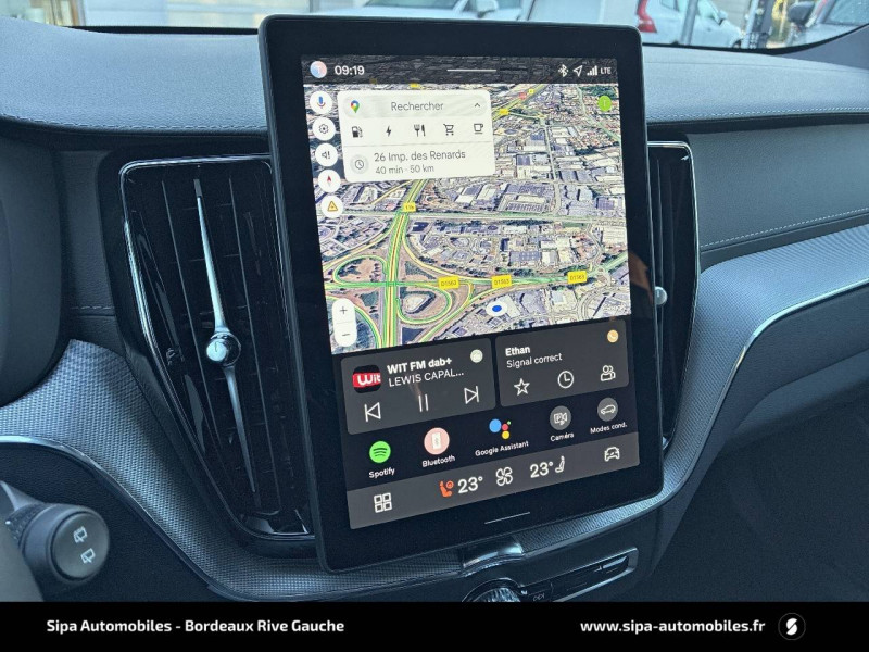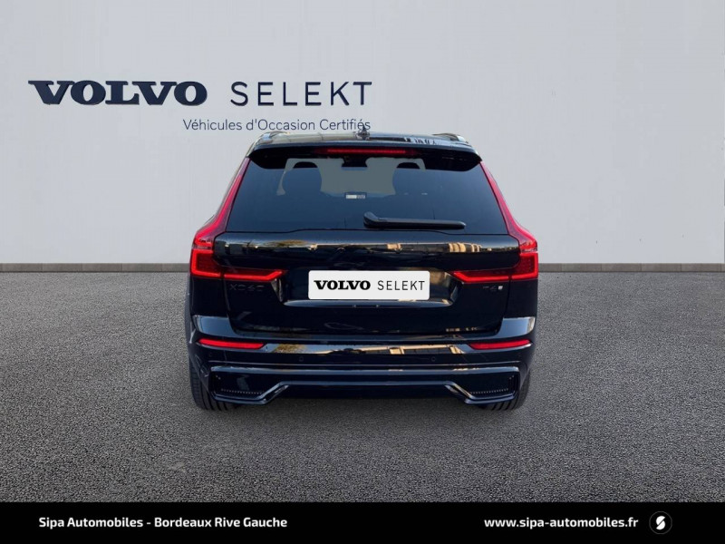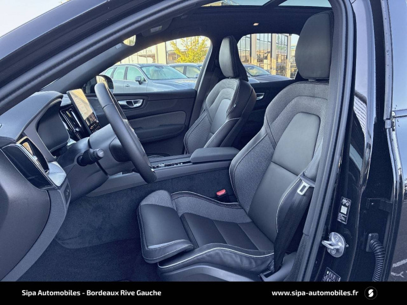 4 prises USB type-C / 5 modes de conduite disponibles : Hybrid, Power, Pure, Off road, AWD / Accès au service d'assistance Volvo via bouton dédié dans le plafonnier / Accès au service d'urgence Volvo via bouton SOS dans le plafonnier / Airbag passager désactivable avec témoin d'indication (on/off) / Alerte Distraction Trafic (ou Ready To Drive Notification) informe le conducteur de porter plus d'attention sur le trafic / Alerte vigilance conducteur en cas de distraction ou de fatigue un avertissement sonore et un message sur l'écran conducteur vous suggèrent de faire une pause / Application Volvo Cars sur smartphone iOS ou Android / Appuie-tête AR rabattables électriquement / Badge AR Noir Laqué / Barres de toit longitudinales noir / Bas de caisse, passage de roue et partie basse des pare-chocs AV et AR couleur carrosserie / Bouton de démarrage en Aluminium cranté / Bouton de verrouillage centralisé pour le conducteur et la passager avec diode de contrôle / Buses lave-glace intégrées aux balais d'essuie-glace / Câble de recharge Type 2 mode 2 monophasé 8 A / Cache-bagages avec fonction de position de chargement / Calandre Noir laqué / Ceintures de sécuritéà inertie à 3 points d'ancrage tous les sièges / Châssis Dynamique / Climatisation automatique bi-zone Inclut un système de recirculation de l'air et un filtre à pollen / Combiné d'instruments digital derrière le volant 12,3" / Commande vocale avancée (climatisation, médias, téléphone, eManuel utilisateur et navigation) / Contrôle de la transmission en descente HDC / Déclenchement automatique des feux de detresse lors d'un freinage d'urgence / Eclairage d'intérieur intérmédiaire: jambes AV, miroirs de courtoisie, liseuses, éclairage de rangement ARe, boîte à gants et coffre / Emblème AV Noir Laqué / En cas de collision, envoi automatique d'une alerte au service d'urgence Volvo / Espace de rangement sous le plancher du coffre / Fonction Stop & Start : coupe et redémarre le moteur lorsque la voiture est à l'arrêt / Freinage automatique post-collision suite à l'activation des prétensionneurs de sécurité ou d'un airbag / Frein de parking électronique automatique en fonction Auto Hold désactivable / Freins à disques 18" ventilés à l'AV, 17" à l'AR / Grand écran central flottant 11,2'' / Hayon du coffre électrique avec ouverture mains libres / Incrustations Aluminium Maillé / Indicateur de perte de pression des pneus TPMS / Jantes alliage 21'' 5 branches doubles Black Edition / Kit anti-crevaison / Levier de vitesses en Cristal d'Orrefors / Mise à jour du système à distance (Over The Air ou OTA) / Ouverture des portes et démarrge sans clé Keyless / Pack Hiver - Sièges AV chauffants (trois niveaux d'intensité) - Sièges AR chauffants sur les places aux extrémités (trois niveaux d'intensité) - Volant chauffant / Pack Mémoire - Siège conducteur à réglages électriques avec fonction mémoire - Siège passager avant à réglages électriques avec fonction mémoire - Supports lombaires des sièges AV réglables électriquement (4 positions) - Assise des sièges AV extensible électriquement / Pack Pilot Assist Pilot Assist, assistance à la conduite intelligente : Maintien de la distance de sécurité avec le véhicule de devant en adaptant la vitesse, Maintien du véhicule dans sa voie grâce à de légers ajustements de la direction, Fonctionnement jusqu'à l'arrêt complet du véhicule Surveillance des angles morts avec alerte trafic en marche AR / Pack Premium Toit ouvrant panoramique en deux parties avec pare-soleil électrique, Affichage tête haute couleur, Caméra avec vision panoramique à 360° / Pack Visibilté - Lave-phares à haute pression - Phares directionnels Full LED avec correcteur dynamique de la portée - Éclairage intérieur haut de gamme : lampes de lecture, bacs de rangement des portes, des porte-gobelets et des poignées de porte intérieures, et le coffre. / Pare-brise en verre feuilleté et colonne de direction rétractable en cas de choc / Pavillon de toit Anthracite / Phares AV à LED avec feux du jour marteau de Thor / Préparation pour le système Isofix (places latérales de la 2ème rangée de sièges) / Prises 12V à l'AV, à l'AR et dans le coffre / Purificateur d'air : système de filtration de l'air avancé avec indication de la qualité de l'air / Radar de stationnement AV et AR avec signal sonore et visuel / Rappel d'oubli de bouclage de ceinture de sécurité AV et AR / Réglage en hauteur manuel des ceintures AV et des places latérales de la 2ème rangée de sièges / Régulateur adaptatif de vitesse et de distance ACC / Rétroviseurs intérieur sans contour et extérieurs électrochromes / Sellerie sport en Cuir Nappa/Tissu / Seuil de coffre en Inox / Seuils de porte en Aluminium à l'AV badgés Volvo / Sièges AR avec dossier rabattable en 2 parties 60/40 / Système audio Volvo Harman Kardon Amplificateur 12 canaux de 600 W, 14 HP dont un subwoofer Technologie Dirac unique de traitement du son qui optimise la réponse de chaque haut-parleurs pour garantir une parfaite harmonie pour chacun des occupants / Système audio Volvo High Performance, 220 W, 10 HP / Système d'adaptation intelligente de la vitesse ou Intelligent Speed Assist (ISA) / Système d'anticipation de collision intelligent (ou Safety Assistance) Système fonctionnant de jour comme de nuit et détecte : - les autres véhicules (voitures, camions, motos, scooters) - les piétons et cyclistes - les grands animaux - les marquages de signalisation fixes comme les bords de route, les marquages de voie et les structures fixes - les panneaux routiers Système de protection anti-sortie de route : détection du risque de sortie de route avec action corrective sur la direction et des vibrations au volant si le conducteur ne réagit pas / Système de contrôle de la qualité de l'air / Système de protection collision frontale : Détection du risque de collision frontale (jusqu