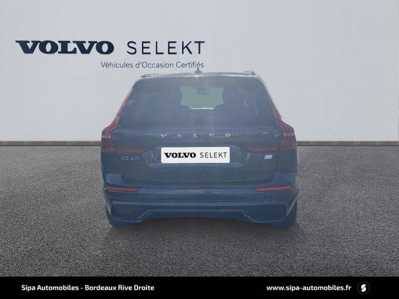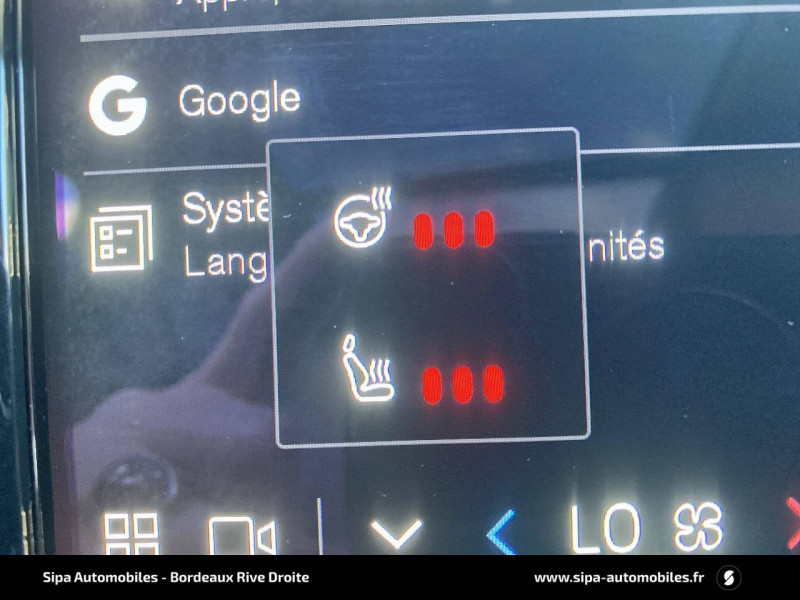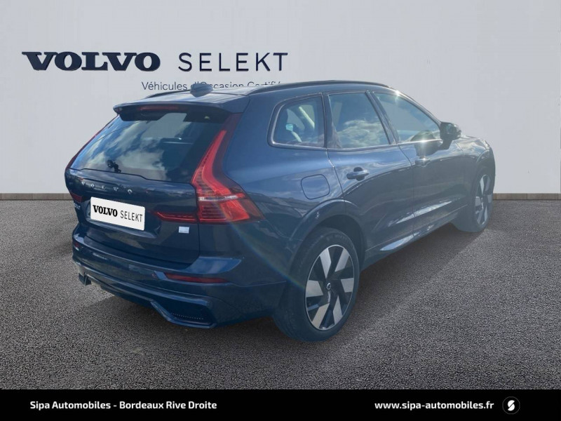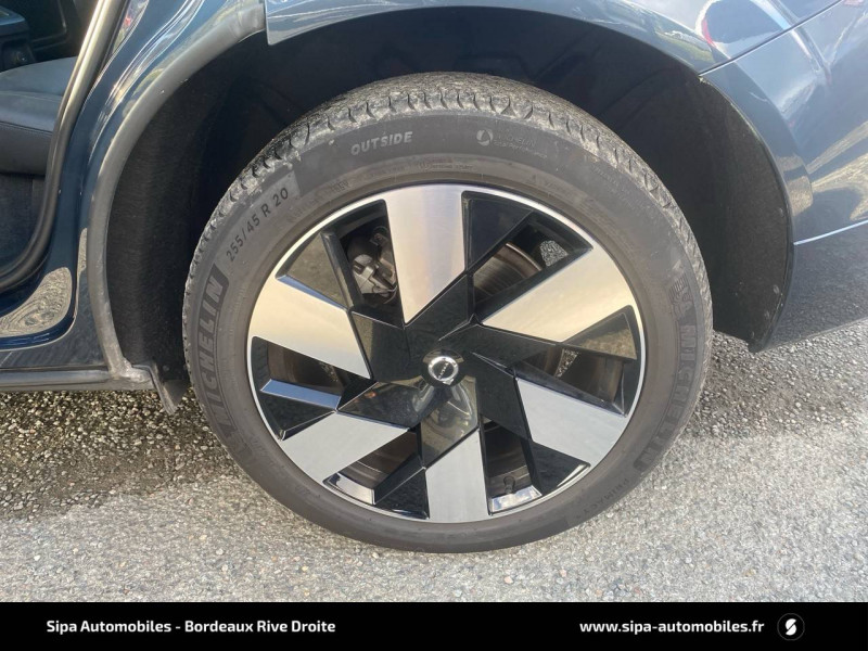 2 prises USB type-C / 4 points d'ancrage dans les panneaux latéraux du compartiment à bagages / Accès au service d'assistance Volvo via bouton dédié dans le plafonnier / Accès au service d'urgence Volvo via bouton SOS dans le plafonnier / Affichage tête haute couleur avec système Alerte distance de sécurité / Airbag passager désactivable avec témoin d'indication (on/off) / Airbags conducteur et passager à déclenchement différencié / Alerte Distraction Trafic (Ready to drive notification) / Alerte vigilance conducteur / Application Volvo Cars sur smartphone iOS ou Android / Appuie-tête AR rabattables électriquement / Assise des sièges AV extensible (électriquement si le siège dispose des réglages électriques) / Assise et dossier des sièges en Cuir coloris Noir / Bouclier AV et diffuseur AR spécifiques avec inserts Noir Laqué / Câble de recharge de 4,5 mètres avec LED d'indication de charge / Calandre spécifique avec incrustations et contour Noir Laqué / Ceintures de sécuritéà inertie à 3 points d'ancrage tous les sièges / Châssis Dynamique / City Safety (ou Safety Assistance) Système d'anticipation de collision intelligent / Climatisation automatique bi-zone Inclut un système de recirculation de l'air et un filtre à pollen / Combiné d'instruments digital 12,3" nouvelle génération / Commande vocale avancée (climatisation, médias, téléphone, eManuel utilisateur et navigation) / Contour des vitres latérales Noir laqué / Contrôle de la transmission en descente HDC / Coques de rétroviseurs Noir Laqué / Déclenchement automatique des feux de detresse lors d'un freinage d'urgence / Direction assistée électrique asservie à la vitesse / Eclairage d'accompagnement et éclairage d'approche / Ecran central tactile multimédia haute résolution 9" personnalisable, nouvelle génération / Envoi automatique d'une alerte au service en cas de collision / Filet de protection coffre/habitacle / Fonction climatisation de l'habitacle moteur coupé / Fonction Stop&Start : coupe et redémarre le moteur lorsque la voiture est à l'arrêt (déconnectable) / Freinage automatique post-collision (réduction du risque de suraccident) / Freins à disques 18" ventilés à l'AV, 17" à l'AR / Incrustations Aluminium Maillé / Indicateur de perte de pression des pneus / Infotainment Google Android Services Google (comprend Google Maps, Google Assistant, Google Play Store, chargeur smartphone par induction et un volume de données illimité pour les 4 premières années) et Kit mains libres Bluetooth et Streaming Audio, mode d'emploi numérique du véhicule, réception de la radio numérique (DAB+), mises à jour Over the Air (OTA). / Inserts Noir Laqué sur le bouclier AV et AR / IntelliSafe Assist Régulateur adaptatif de vitesse et de distance ACC, Assistance à la conduite intelligente, Alerte distance de sécurité, Système d'assistance à l'arrêt d'urgence / IntelliSafe Surround Surveillance anti-angle mort, Assistance au changement de file, Alerte trafic en marche arrière et Alerte collision arrière avec action corrective sur la direction / Jantes alliage 20" 6 branches Noir / Diamant, 255/45 R20 / Kit anti-crevaison / Miroirs de courtoisie éclairés, spots de lecture à l'AV, éclairage aux pieds à l'AV, dans la boîte à gants et le coffre, éclairage intérieur temporisé / Mise à jour du système à distance (Over The Air ou OTA) / Mode de conduite personnalisable : Pure, Hybrid, Power, AWD, Off Road Impactant direction, moteur, freins, ESC, Stop & Start, économies d'énergie, combiné digital et contrôle actif du bruit) / One Pedal Drive ou Conduite à une pédale Fonction permettant au conducteur de contrôler à la fois l'accélération et la décélération avec la seule pédale d'accélérateur / Ouverture des portes sans clé Keyless Entry incluant éclairage du sol dans les poignées de porte AV et ouverture Confort du hayon électrique (sans les mains) / Pack Digital Connect / Pack éclairage / Pack Intellisafe Pro IntelliSafe Assist IntelliSafe Surround / Pack Visibilté / Pare-brise en verre feuilleté et colonne de direction rétractable en cas de choc / Pare-chocs AR avec sorties d'échappement dissimulées / Pare-chocs AV couleur carrosserie avec inserts chromés / Pavillon de toit coloris Beige / Phares directionnels Full LED avec correcteur dynamique de la portée, lave-phares à haute pression escamotables, feux de route actifs et feux de jour design marteau de thor / Planche de bord gainée de simili-cuir / Pommeau de levier de vitesse gainé de Simili-Cuir / Port de recharge sur l'aile AV gauche / Porte-ticket de parking et d'autoroute / Pré-câblage électrique pour le crochet d'attelage / Préparation pour le système Isofix (places latérales de la 2ème rangée de sièges) / Préparation pour l'installation d'un éthylomètre antidémarrage / Prise 12 V dans le coffre / Purificateur d'air CleanZone Avancé Système de filtration de l'air avancé avec indication de la qualité de l'air / Radar de stationnement AV et AR avec signal sonore et visuel / Rails de toit couleur Noir Laqué / Rappel d'oubli de bouclage de ceinture de sécurité AV et AR / Rétroviseurs extérieurs couleur carrosserie / Rétroviseurs intérieur sans contour et extérieurs électrochromes / Sécurité connectée Alerte Feux de détresse et Chaussée glissante (nécessite une connexion Internet) / Sellerie Cuir avec Sièges confort / Seuil de coffre en Aluminium / Seuils de porte en Aluminium à l'AV badgés Volvo / Seuils de portes en Aluminium à l'AV badgés Recharge / Siège conducteur à réglages électriques et à mémoire / Siège passager AV à réglages électriques / Siège passager avec fonction mémoire / Sièges AR chauffants (3 niveaux d'intensité) / Sièges AV chauffants (3 niveaux d'intensité) / Sonde de température extérieure et horloge / Structure de l'habitacle renforcéà l'acier de Bore / Subwoofer / Supports lombaires des siège