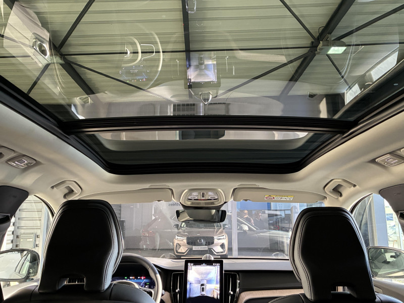 Bouton de démarrage en Aluminium cranté / Climatisation automatique bi-zone Inclut un système de recirculation de l?air et un filtre à pollen / Commande vocale avancée (climatisation, médias, téléphone, eManuel utilisateur et navigation) / Déclenchement automatique des feux de detresse lors d'un freinage d'urgence / En cas de collision, envoi automatique d?une alerte au service d?urgence Volvo / Frein de parking électronique automatique en fonction Auto Hold désactivable / Freinage automatique post-collision suite à l'activation des prétensionneurs de sécurité ou d'un airbag / Incrustations Bois Flotté / Jantes alliage 20'' 5 branches en Y Noir / Diamant / Phares AV à LED avec feux du jour marteau de Thor / Radar de stationnement AV et AR avec signal sonore et visuel / Seuils de porte en Aluminium à l'AV badgés Volvo / Toit ouvrant panoramique en deux parties avec pare-soleil électrique / Télécommande de verrouillage centralisé avec clé de contact intégrée, fermeture à distance des vitres et du toit ouvrant et fonction alert (déclenchement du klaxon et des feux de détresse) / Verrouillage automatique des portes en roulant / Volant 3 branches gainé de Simili-Cuir / 4 prises USB type-C / 5 modes de conduite disponibles : Hybrid, Power, Pure, Off road, AWD / Accès au service d'assistance Volvo via bouton dédié dans le plafonnier / Accès au service d'urgence Volvo via bouton SOS dans le plafonnier / Airbag passager désactivable avec témoin d'indication (on/off) / Alerte Distraction Trafic (ou Ready To Drive Notification) informe le conducteur de porter plus d'attention sur le trafic / Alerte vigilance conducteur en cas de distraction ou de fatigue un avertissement sonore et un message sur l'écran conducteur vous suggèrent de faire une pause / Application Volvo Cars sur smartphone iOS ou Android / Appuie-tête AR rabattables électriquement / Barres de toit longitudinales noir / Bas de caisse, passage de roue et partie basse des pare-chocs AV et AR couleur carrosserie / Bouton de verrouillage centralisé pour le conducteur et la passager avec diode de contrôle / Buses lave-glace intégrées aux balais d'essuie-glace / Cache-bagages avec fonction de position de chargement / Ceintures de sécuritéà inertie à 3 points d'ancrage tous les sièges / Châssis Dynamique / Combiné d'instruments digital derrière le volant 12,3" / Contrôle de la transmission en descente HDC / Câble de recharge Type 2 mode 2 monophasé 8 A / Eclairage d?intérieur intérmédiaire: jambes AV, miroirs de courtoisie, liseuses, éclairage de rangement ARe, boîte à gants et coffre / Espace de rangement sous le plancher du coffre / Fonction Stop & Start : coupe et redémarre le moteur lorsque la voiture est à l'arrêt / Freins à disques 18" ventilés à l'AV, 17" à l'AR / Grand écran central flottant 11,2'' / Hayon du coffre électrique avec ouverture mains libres / Indicateur de perte de pression des pneus TPMS / Kit anti-crevaison / Levier de vitesses en Cristal d'Orrefors / Mise à jour du système à distance (Over The Air ou OTA) / Ouverture des portes et démarrge sans clé Keyless / Pare-brise en verre feuilleté et colonne de direction rétractable en cas de choc / Prises 12V à l'AV, à l'AR et dans le coffre / Préparation pour le système Isofix (places latérales de la 2ème rangée de sièges) / Purificateur d'air : système de filtration de l'air avancé avec indication de la qualité de l'air / Rappel d'oubli de bouclage de ceinture de sécurité AV et AR / Réglage en hauteur manuel des ceintures AV et des places latérales de la 2ème rangée de sièges / Régulateur adaptatif de vitesse et de distance ACC / Rétroviseurs intérieur sans contour et extérieurs électrochromes / Seuil de coffre en Inox / Sièges AR avec dossier rabattable en 2 parties 60/40 / Style Dark Rails de toit noir laqué, Calandre style Dark avec inserts noir laqué, Contour des vitres latérales noir laqué, Pare-chocs avec inserts noir laqué, Coques de rétroviseurs noir laqué / Système audio Volvo Harman Kardon Amplificateur 12 canaux de 600 W, 14 HP dont un subwoofer Technologie Dirac unique de traitement du son qui optimise la réponse de chaque haut-parleurs pour garantir une parfaite harmonie pour chacun des occupants / Système audio Volvo High Performance, 220 W, 10 HP / Système d'adaptation intelligente de la vitesse ou Intelligent Speed Assist (ISA) / Système d'anticipation de collision intelligent (ou Safety Assistance) Système fonctionnant de jour comme de nuit et détecte : - les autres véhicules (voitures, camions, motos, scooters) - les piétons et cyclistes - les grands animaux - les marquages de signalisation fixes comme les bords de route, les marquages de voie et les structures fixes - les panneaux routiers Système de protection anti-sortie de route : détection du risque de sortie de route avec action corrective sur la direction et des vibrations au volant si le conducteur ne réagit pas / Système de contrôle de la qualité de l'air / Système de protection collision frontale : Détection du risque de collision frontale (jusqu'à 80 km/h) avec action corrective sur la direction / Système de protection en cas de sortie de route Ceintures de sécurité avec prétensionneurs, assise des sièges AV à absorption d'énergie / Système d?infodivertissement Volvo Car UX avec services Google Comprend Google Maps, Google Assistant, Google Play Store et un volume de données illimité pour les 4 premières années, kit mains libres Bluetooth et Streaming Audio, mode d?emploi numérique du véhicule, réception de la radio numérique (DAB) / Système intelligent d'information au conducteur IDIS / Tapis de sol textile AV/AR / Transmission intégrale AWD à 4 roues motrices, gérée par électronique / Trousse de 1er secours et triangle de présignalisation / Verrouillage des portes et fenêtres AR pour la sécurité des enfants / Vitres AV et AR électriques à impu
