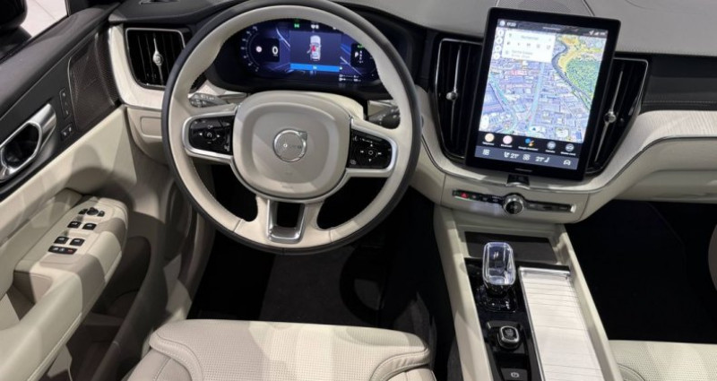 VOLVO XC60 T6 AWD Hybride rechargeable 253 ch+145 ch Geartronic 8 Ultra Style Dark, tout-terrain, 15 cv, 5 portes, première mise en circulation le 02/10/2025, garantie : 24 mois. Prix TTC : 76 990 € Prix HT : 64 158 € La TVA est récupérable sur ce véhicule. 5 places, couleur intérieur : BLOND CHAR/LEAC/BLOND OPTIONS ET ÉQUIPEMENTS : Couleur : - Peinture métallisée Extérieur : - Jantes alliage 22'' 5 branches doubles Noir Mat / Diamant - Vitres latérales AR et du coffre surteintées Autres équipements et informations : - Sellerie confort Cuir Nappa perforé/ventilé - Suspension pneumatique active Notre châssis actif avec sa suspension pneumatique auto-adaptative pour toutes les roues ajuste automatiquement la hauteur de caisse de -2 cm à +4 cm et adapte chaque amortisseur aux conditions de conduite et à la chaussée. Cette technologie surveille la voiture, la route et le conducteur 500 fois par seconde. Afin de faciliter le chargement et déchargement des objets lourds, un bouton est également disponible dans le coffre pour ajuster la hauteur de la voiture. Référence annonce : 703