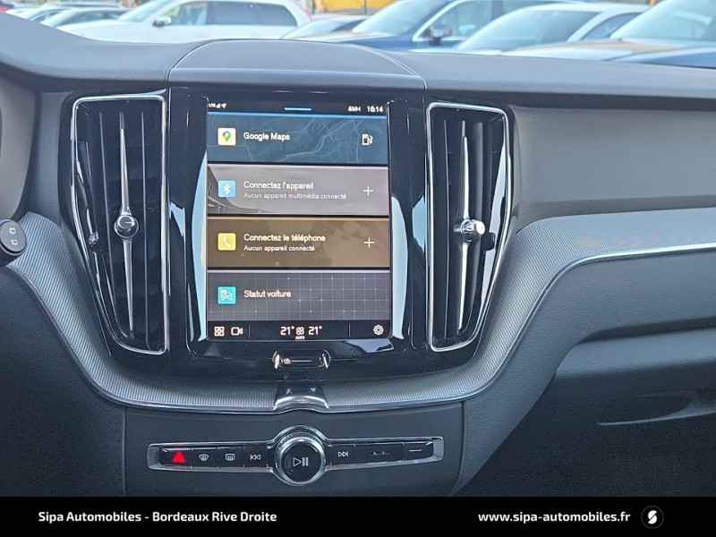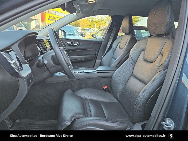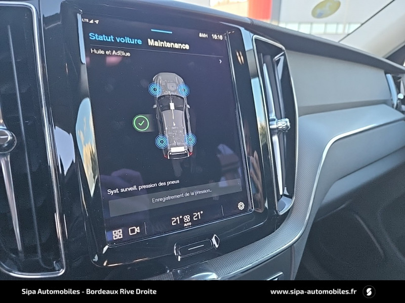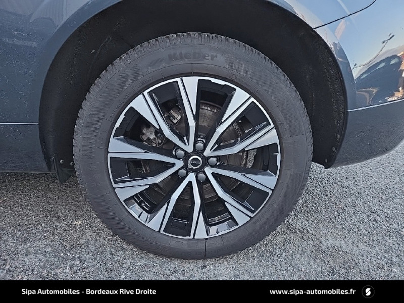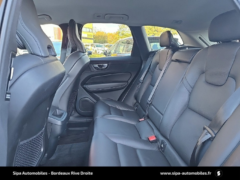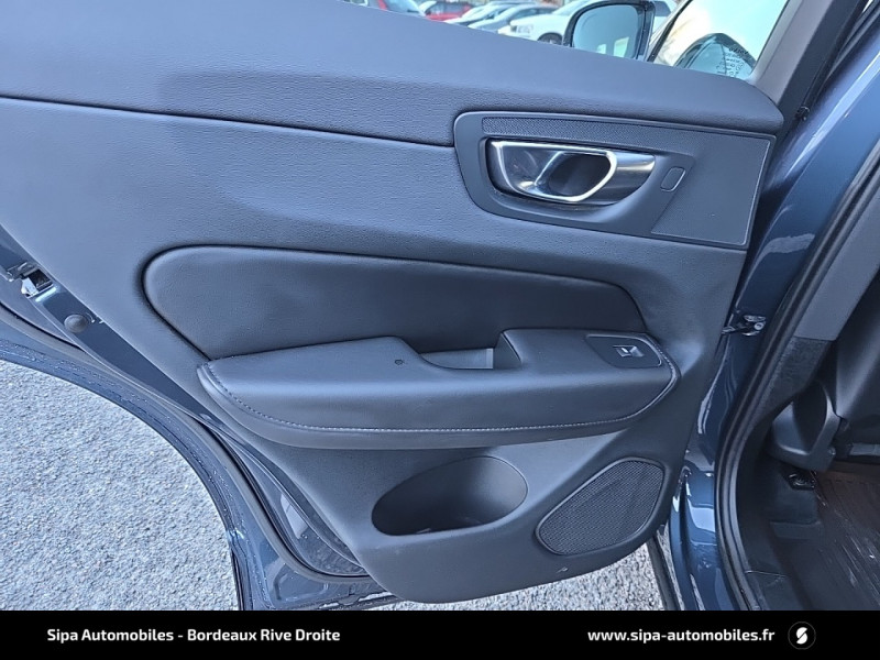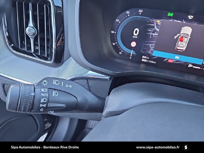 Assise et dossier des sièges en Cuir coloris Noir / Climatisation automatique bi-zone Inclut un système de recirculation de l?air et un filtre à pollen / Commande vocale avancée (climatisation, médias, téléphone, eManuel utilisateur et navigation) / Déclenchement automatique des feux de detresse lors d'un freinage d'urgence / Envoi automatique d?une alerte au service en cas de collision / Fonction climatisation de l'habitacle moteur coupé / Freinage automatique post-collision (réduction du risque de suraccident) / Jantes alliage 19" 5 branches en V Noir / Diamant, 235/55 R19 / Phares LED avec correcteur dynamique de la portée et feux de jour design marteau de Thor / Pommeau de levier de vitesse gainé de Simili-Cuir / Pré-câblage électrique pour le crochet d'attelage / Radar de stationnement AV et AR avec signal sonore et visuel / Sellerie Cuir avec Sièges confort / Seuil de coffre en Aluminium / Seuils de porte en Aluminium à l'AV badgés Volvo / Télécommande de verrouillage centralisé avec clé de contact integrée, fermeture automatique des vitres et du toit ouvrant, fonction panique (déclenchement du klaxon et des feux de détresse) / Verrouillage automatique des portes à partir de 7 km/h / Verrouillage de sécurité enfant automatique commandé depuis le siège conducteur (condamne aussi les fenêtres AR) / Volant 3 branches gainé de Simili-Cuir / 2 prises USB type-C / 4 points d'ancrage dans les panneaux latéraux du compartiment à bagages / Accès au service d'assistance Volvo via bouton dédié dans le plafonnier / Accès au service d'urgence Volvo via bouton SOS dans le plafonnier / Airbag passager désactivable avec témoin d'indication (on/off) / Airbags conducteur et passager à déclenchement différencié / Alerte Distraction Trafic (Ready to drive notification) / Alerte vigilance conducteur / Application Volvo Cars / Assise des sièges AV extensible (électriquement si le siège dispose des réglages électriques) / Calandre avec contour chromé et inserts verticaux Noir Laqué et chromés / Ceintures de sécuritéà inertie à 3 points d'ancrage tous les sièges / Châssis Dynamique / City Safety (ou Safety Assistance) Système d?anticipation de collision intelligent / CleanZone Advanced : système de filtration de l?air avancé / Combiné d'instruments digital 12,3" nouvelle génération / Contour des vitres latérales chromé / Contrôle de la transmission en descente HDC / Direction assistée électrique asservie à la vitesse / Eclairage d'accompagnement et éclairage d'approche / Ecran central tactile multimédia haute résolution 9" personnalisable, nouvelle génération / Filet de protection coffre/habitacle / Fonction Stop&Start : coupe et redémarre le moteur lorsque la voiture est à l'arrêt (déconnectable) / Freins à disques 18" ventilés à l'AV, 17" à l'AR / Indicateur de perte de pression des pneus / Infotainment Google Android Services Google (comprend Google Maps, Google Assistant, Google Play Store, chargeur smartphone par induction et un volume de données illimité pour les 4 premières années) et Kit mains libres Bluetooth et Streaming Audio, mode d?emploi numérique du véhicule, réception de la radio numérique (DAB+), mises à jour Over the Air (OTA). / Insert chromé sur le bouclier AR / Insert chromé sur le bouclier AV / Insert chromé sur les bas de caisse latéraux / Kit anti-crevaison / Miroirs de courtoisie éclairés, spots de lecture à l'AV, éclairage aux pieds à l'AV, dans la boîte à gants et le coffre, éclairage intérieur temporisé / Mise à jour du système à distance (Over The Air ou OTA) / Mode de conduite personnalisable Impactant direction, moteur, freins, ESC, Stop & Start, économies d?énergie, combiné digital et contrôle actif du bruit) / Ouverture des portes sans clé Keyless Entry incluant éclairage du sol dans les poignées de porte AV et ouverture Confort du hayon électrique (sans les mains) / Pare-brise en verre feuilleté et colonne de direction rétractable en cas de choc / Pare-chocs AR avec sorties d?échappement dissimulées / Pare-chocs AV couleur carrosserie avec inserts chromés / Pavillon de toit coloris Beige / Porte-ticket de parking et d'autoroute / Prise 12 V dans le coffre / Préparation pour le système Isofix (places latérales de la 2ème rangée de sièges) / Rails de toit Chrome / Rappel d'oubli de bouclage de ceinture de sécurité AV et AR / Rétroviseurs extérieurs couleur carrosserie / Rétroviseurs intérieur sans contour et extérieurs électrochromes / Siège conducteur à réglages électriques et à mémoire / Siège passager AV à réglages électriques / Siège passager avec fonction mémoire / Sonde de température extérieure et horloge / Structure de l'habitacle renforcéà l'acier de Bore / Supports lombaires des sièges AV réglables électriquement (4 positions) / Système audio Volvo High Performance, 220 W, 10 HP, radio RDS / Système de contrôle de la stabilité et de la traction STC / Système de contrôle du freinage du véhicule VDC / Système de protection anti-sortie de route / Système de protection collision frontale : Détection du risque de collision frontale (jusqu'à 80 km/h) avec action corrective sur la direction / Système de protection en cas de sortie de route / Système de récupération de l'énergie au freinage / Système de réglage en hauteur des phares / Système intelligent d'information au conducteur IDIS / Sécurité connectée Alerte Feux de détresse et Chaussée glissante (nécessite une connexion Internet) / Tapis de sol textile AV/AR / Trappe de carburant intelligente sans bouchon / Trousse de 1er secours et triangle de présignalisation / Vitres AV et AR électriques à impulsion (montée et descente) avec système anti-pincement