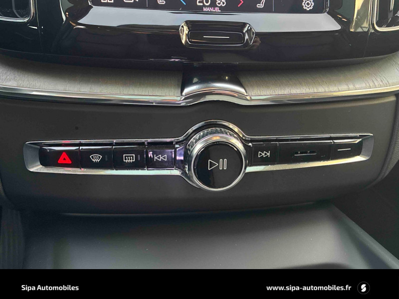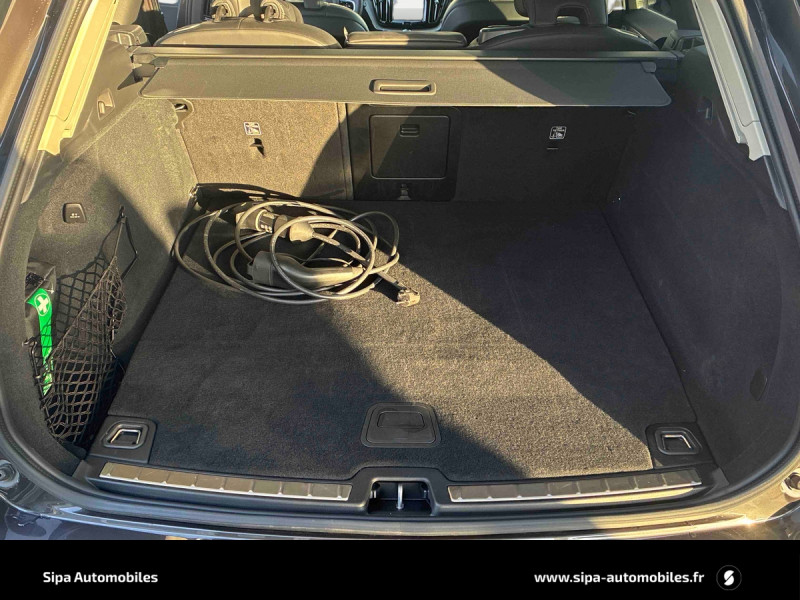 Assise et dossier des sièges en Cuir coloris Noir / Climatisation automatique bi-zone Inclut un système de recirculation de l?air et un filtre à pollen / Commande vocale avancée (climatisation, médias, téléphone, eManuel utilisateur et navigation) / Câble de recharge de 4,5 mètres avec LED d'indication de charge / Déclenchement automatique des feux de detresse lors d'un freinage d'urgence / Envoi automatique d?une alerte au service en cas de collision / Fonction climatisation de l'habitacle moteur coupé / Freinage automatique post-collision (réduction du risque de suraccident) / Incrustations Aluminium Maillé / Jantes alliage 20" 6 branches Noir / Diamant, 255/45 R20 / Pack Digital Connect / Phares directionnels Full LED avec correcteur dynamique de la portée, lave-phares à haute pression escamotables, feux de route actifs et feux de jour design marteau de thor / Planche de bord gainée de simili-cuir / Pommeau de levier de vitesse gainé de Simili-Cuir / Pré-câblage électrique pour le crochet d'attelage / Radar de stationnement AV et AR avec signal sonore et visuel / Sellerie Cuir avec Sièges confort / Seuil de coffre en Aluminium / Seuils de porte en Aluminium à l'AV badgés Volvo / Seuils de portes en Aluminium à l'AV badgés Recharge / Système de pré-conditionnement de l'habitacle (chauffage et climatisation) / Toit ouvrant panoramique en deux parties avec pare-soleil électrique / Télécommande de verrouillage centralisé avec clé de contact integrée, fermeture automatique des vitres et du toit ouvrant, fonction panique (déclenchement du klaxon et des feux de détresse) / Verrouillage automatique des portes à partir de 7 km/h / Verrouillage de sécurité enfant automatique commandé depuis le siège conducteur (condamne aussi les fenêtres AR) / Volant 3 branches gainé de Simili-Cuir / 2 prises USB type-C / 4 points d'ancrage dans les panneaux latéraux du compartiment à bagages / Accès au service d'assistance Volvo via bouton dédié dans le plafonnier / Accès au service d'urgence Volvo via bouton SOS dans le plafonnier / Affichage tête haute couleur avec système Alerte distance de sécurité / Airbag passager désactivable avec témoin d'indication (on/off) / Airbags conducteur et passager à déclenchement différencié / Alerte Distraction Trafic (Ready to drive notification) / Alerte vigilance conducteur / Application Volvo Cars sur smartphone iOS ou Android / Appuie-tête AR rabattables électriquement / Assise des sièges AV extensible (électriquement si le siège dispose des réglages électriques) / Bouclier AV et diffuseur AR spécifiques avec inserts Noir Laqué / Calandre spécifique avec incrustations et contour Noir Laqué / Ceintures de sécuritéà inertie à 3 points d'ancrage tous les sièges / Châssis Dynamique / City Safety (ou Safety Assistance) Système d?anticipation de collision intelligent / Combiné d'instruments digital 12,3" nouvelle génération / Contour des vitres latérales Noir laqué / Contrôle de la transmission en descente HDC / Coques de rétroviseurs Noir Laqué / Direction assistée électrique asservie à la vitesse / Eclairage d'accompagnement et éclairage d'approche / Ecran central tactile multimédia haute résolution 9" personnalisable, nouvelle génération / Filet de protection coffre/habitacle / Fonction Stop&Start : coupe et redémarre le moteur lorsque la voiture est à l'arrêt (déconnectable) / Freins à disques 18" ventilés à l'AV, 17" à l'AR / Indicateur de perte de pression des pneus / Infotainment Google Android Services Google (comprend Google Maps, Google Assistant, Google Play Store, chargeur smartphone par induction et un volume de données illimité pour les 4 premières années) et Kit mains libres Bluetooth et Streaming Audio, mode d?emploi numérique du véhicule, réception de la radio numérique (DAB+), mises à jour Over the Air (OTA). / Inserts Noir Laqué sur le bouclier AV et AR / IntelliSafe Assist Régulateur adaptatif de vitesse et de distance ACC, Assistance à la conduite intelligente, Alerte distance de sécurité, Système d?assistance à l?arrêt d?urgence / IntelliSafe Surround Surveillance anti-angle mort, Assistance au changement de file, Alerte trafic en marche arrière et Alerte collision arrière avec action corrective sur la direction / Kit anti-crevaison / Miroirs de courtoisie éclairés, spots de lecture à l'AV, éclairage aux pieds à l'AV, dans la boîte à gants et le coffre, éclairage intérieur temporisé / Mise à jour du système à distance (Over The Air ou OTA) / Mode de conduite personnalisable : Pure, Hybrid, Power, AWD, Off Road Impactant direction, moteur, freins, ESC, Stop & Start, économies d?énergie, combiné digital et contrôle actif du bruit) / One Pedal Drive ou Conduite à une pédale Fonction permettant au conducteur de contrôler à la fois l?accélération et la décélération avec la seule pédale d?accélérateur / Ouverture des portes sans clé Keyless Entry incluant éclairage du sol dans les poignées de porte AV et ouverture Confort du hayon électrique (sans les mains) / Pare-brise en verre feuilleté et colonne de direction rétractable en cas de choc / Pare-chocs AR avec sorties d?échappement dissimulées / Pare-chocs AV couleur carrosserie avec inserts chromés / Pavillon de toit coloris Beige / Port de recharge sur l'aile AV gauche / Porte-ticket de parking et d'autoroute / Prise 12 V dans le coffre / Préparation pour l'installation d'un éthylomètre antidémarrage / Préparation pour le système Isofix (places latérales de la 2ème rangée de sièges) / Purificateur d'air CleanZone Avancé Système de filtration de l'air avancé avec indication de la qualité de l'air / Rails de toit couleur Noir Laqué / Rappel d'oubli de bouclage de ceinture de sécurité AV et AR / Rétroviseurs extérieurs couleur carrosserie / Rétroviseurs intérieur sans contour et extérieurs électrochromes / Siège conducteur à régla