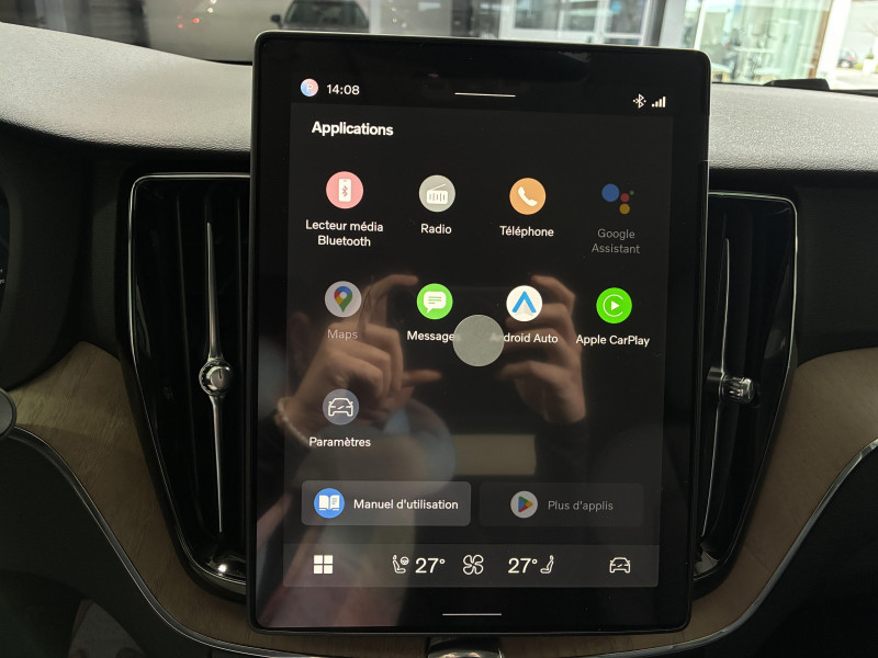 Bouton de démarrage en Aluminium cranté / Climatisation automatique bi-zone Inclut un système de recirculation de l?air et un filtre à pollen / Commande vocale avancée (climatisation, médias, téléphone, eManuel utilisateur et navigation) / Déclenchement automatique des feux de detresse lors d'un freinage d'urgence / En cas de collision, envoi automatique d?une alerte au service d?urgence Volvo / Frein de parking électronique automatique en fonction Auto Hold désactivable / Freinage automatique post-collision suite à l'activation des prétensionneurs de sécurité ou d'un airbag / Incrustations Bois Flotté / Jantes alliage 19'' 5 branches doubles Noir / Diamant / Phares AV à LED avec feux du jour marteau de Thor / Radar de stationnement AV et AR avec signal sonore et visuel / Seuils de porte en Aluminium à l'AV badgés Volvo / Télécommande de verrouillage centralisé avec clé de contact intégrée, fermeture à distance des vitres et du toit ouvrant et fonction alert (déclenchement du klaxon et des feux de détresse) / Verrouillage automatique des portes en roulant / Volant 3 branches gainé de Simili-Cuir / 4 prises USB type-C / 5 modes de conduite disponibles : Hybrid, Power, Pure, Off road, AWD / Accès au service d'assistance Volvo via bouton dédié dans le plafonnier / Accès au service d'urgence Volvo via bouton SOS dans le plafonnier / Airbag passager désactivable avec témoin d'indication (on/off) / Alerte Distraction Trafic (ou Ready To Drive Notification) informe le conducteur de porter plus d'attention sur le trafic / Alerte vigilance conducteur en cas de distraction ou de fatigue un avertissement sonore et un message sur l'écran conducteur vous suggèrent de faire une pause / Application Volvo Cars sur smartphone iOS ou Android / Appuie-tête AR rabattables électriquement / Barres de toit longitudinales noir / Bas de caisse, passage de roue et partie basse des pare-chocs AV et AR couleur carrosserie / Bouton de verrouillage centralisé pour le conducteur et la passager avec diode de contrôle / Buses lave-glace intégrées aux balais d'essuie-glace / Cache-bagages avec fonction de position de chargement / Ceintures de sécuritéà inertie à 3 points d'ancrage tous les sièges / Châssis Dynamique / Combiné d'instruments digital derrière le volant 12,3" / Contrôle de la transmission en descente HDC / Câble de recharge Type 2 mode 2 monophasé 8 A / Eclairage d?intérieur intérmédiaire: jambes AV, miroirs de courtoisie, liseuses, éclairage de rangement ARe, boîte à gants et coffre / Eclairage intérieur haut de gamme lampes de lecture, bacs de rangement des portes, des porte-gobelets et des poignées de porte intérieures, et le coffre. / Espace de rangement sous le plancher du coffre / Fonction Stop & Start : coupe et redémarre le moteur lorsque la voiture est à l'arrêt / Freins à disques 18" ventilés à l'AV, 17" à l'AR / Grand écran central flottant 11,2'' / Hayon du coffre électrique avec ouverture mains libres / Indicateur de perte de pression des pneus TPMS / Kit anti-crevaison / Levier de vitesses en Cristal d'Orrefors / Mise à jour du système à distance (Over The Air ou OTA) / Ouverture des portes et démarrge sans clé Keyless / Pare-brise en verre feuilleté et colonne de direction rétractable en cas de choc / Prises 12V à l'AV, à l'AR et dans le coffre / Préparation pour le système Isofix (places latérales de la 2ème rangée de sièges) / Purificateur d'air : système de filtration de l'air avancé avec indication de la qualité de l'air / Rappel d'oubli de bouclage de ceinture de sécurité AV et AR / Réglage en hauteur manuel des ceintures AV et des places latérales de la 2ème rangée de sièges / Régulateur adaptatif de vitesse et de distance ACC / Rétroviseurs intérieur sans contour et extérieurs électrochromes / Seuil de coffre en Inox / Sièges AR avec dossier rabattable en 2 parties 60/40 / Style Chrome Rails de toit chromé, Calandre style chrome avec inserts chromés, Contour des vitres latérales chromé, Pare-chocs avec inserts chromés, Coques de rétroviseurs couleur carrosserie / Système audio Volvo Harman Kardon Amplificateur 12 canaux de 600 W, 14 HP dont un subwoofer Technologie Dirac unique de traitement du son qui optimise la réponse de chaque haut-parleurs pour garantir une parfaite harmonie pour chacun des occupants / Système audio Volvo High Performance, 220 W, 10 HP / Système d'adaptation intelligente de la vitesse ou Intelligent Speed Assist (ISA) / Système d'anticipation de collision intelligent (ou Safety Assistance) Système fonctionnant de jour comme de nuit et détecte : - les autres véhicules (voitures, camions, motos, scooters) - les piétons et cyclistes - les grands animaux - les marquages de signalisation fixes comme les bords de route, les marquages de voie et les structures fixes - les panneaux routiers Système de protection anti-sortie de route : détection du risque de sortie de route avec action corrective sur la direction et des vibrations au volant si le conducteur ne réagit pas / Système de contrôle de la qualité de l'air / Système de protection collision frontale : Détection du risque de collision frontale (jusqu'à 80 km/h) avec action corrective sur la direction / Système de protection en cas de sortie de route Ceintures de sécurité avec prétensionneurs, assise des sièges AV à absorption d'énergie / Système d?infodivertissement Volvo Car UX avec services Google Comprend Google Maps, Google Assistant, Google Play Store et un volume de données illimité pour les 4 premières années, kit mains libres Bluetooth et Streaming Audio, mode d?emploi numérique du véhicule, réception de la radio numérique (DAB) / Système intelligent d'information au conducteur IDIS / Tapis de sol textile AV/AR / Transmission intégrale AWD à 4 roues motrices, gérée par électronique / Trousse de 1er secours et triangle de présignalisation / Verrouillage des port