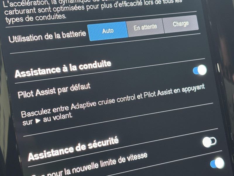 Assise et dossier des sièges en Cuir coloris Noir / Climatisation automatique bi-zone Inclut un système de recirculation de l?air et un filtre à pollen / Commande vocale avancée (climatisation, médias, téléphone, eManuel utilisateur et navigation) / Câble de recharge de 4,5 mètres avec LED d'indication de charge / Déclenchement automatique des feux de detresse lors d'un freinage d'urgence / Envoi automatique d?une alerte au service en cas de collision / Fonction climatisation de l'habitacle moteur coupé / Freinage automatique post-collision (réduction du risque de suraccident) / Incrustations Aluminium Maillé / Jantes alliage 19" 5 branches double Noir/Diamant 235/55 R19 / Pack Digital Connect / Phares LED avec correcteur dynamique de la portée et feux de jour design marteau de Thor / Pommeau de levier de vitesse gainé de Simili-Cuir / Pré-câblage électrique pour le crochet d'attelage / Radar de stationnement AV et AR avec signal sonore et visuel / Sellerie Cuir avec Sièges confort / Seuil de coffre en Aluminium / Seuils de porte en Aluminium à l'AV badgés Volvo / Seuils de portes en Aluminium à l'AV badgés Recharge / Système de pré-conditionnement de l'habitacle (chauffage et climatisation) / Toit ouvrant panoramique en deux parties avec pare-soleil électrique / Télécommande de verrouillage centralisé avec clé de contact integrée, fermeture automatique des vitres et du toit ouvrant, fonction panique (déclenchement du klaxon et des feux de détresse) / Verrouillage automatique des portes à partir de 7 km/h / Verrouillage de sécurité enfant automatique commandé depuis le siège conducteur (condamne aussi les fenêtres AR) / Volant 3 branches gainé de Simili-Cuir / 2 prises USB type-C / 4 points d'ancrage dans les panneaux latéraux du compartiment à bagages / Accès au service d'assistance Volvo via bouton dédié dans le plafonnier / Accès au service d'urgence Volvo via bouton SOS dans le plafonnier / Airbag passager désactivable avec témoin d'indication (on/off) / Airbags conducteur et passager à déclenchement différencié / Alerte Distraction Trafic (Ready to drive notification) / Alerte vigilance conducteur / Application Volvo Cars sur smartphone iOS ou Android / Appuie-tête AR rabattables électriquement / Assise des sièges AV extensible (électriquement si le siège dispose des réglages électriques) / Bouclier AV et diffuseur AR spécifiques avec inserts Noir Laqué / Calandre spécifique avec incrustations et contour Noir Laqué / Ceintures de sécuritéà inertie à 3 points d'ancrage tous les sièges / Châssis Dynamique / City Safety (ou Safety Assistance) Système d?anticipation de collision intelligent / Combiné d'instruments digital 12,3" nouvelle génération / Contour des vitres latérales Noir laqué / Contrôle de la transmission en descente HDC / Coques de rétroviseurs Noir Laqué / Direction assistée électrique asservie à la vitesse / Eclairage d'accompagnement et éclairage d'approche / Ecran central tactile multimédia haute résolution 9" personnalisable, nouvelle génération / Filet de protection coffre/habitacle / Fonction Stop&Start : coupe et redémarre le moteur lorsque la voiture est à l'arrêt (déconnectable) / Freins à disques 18" ventilés à l'AV, 17" à l'AR / Indicateur de perte de pression des pneus / Infotainment Google Android Services Google (comprend Google Maps, Google Assistant, Google Play Store, chargeur smartphone par induction et un volume de données illimité pour les 4 premières années) et Kit mains libres Bluetooth et Streaming Audio, mode d?emploi numérique du véhicule, réception de la radio numérique (DAB+), mises à jour Over the Air (OTA). / Inserts Noir Laqué sur le bouclier AV et AR / Kit anti-crevaison / Miroirs de courtoisie éclairés, spots de lecture à l'AV, éclairage aux pieds à l'AV, dans la boîte à gants et le coffre, éclairage intérieur temporisé / Mise à jour du système à distance (Over The Air ou OTA) / Mode de conduite personnalisable : Pure, Hybrid, Power, AWD, Off Road Impactant direction, moteur, freins, ESC, Stop & Start, économies d?énergie, combiné digital et contrôle actif du bruit) / One Pedal Drive ou Conduite à une pédale Fonction permettant au conducteur de contrôler à la fois l?accélération et la décélération avec la seule pédale d?accélérateur / Ouverture des portes sans clé Keyless Entry incluant éclairage du sol dans les poignées de porte AV et ouverture Confort du hayon électrique (sans les mains) / Pare-brise en verre feuilleté et colonne de direction rétractable en cas de choc / Pare-chocs AR avec sorties d?échappement dissimulées / Pare-chocs AV couleur carrosserie avec inserts chromés / Pavillon de toit coloris Beige / Port de recharge sur l'aile AV gauche / Porte-ticket de parking et d'autoroute / Prise 12 V dans le coffre / Préparation pour l'installation d'un éthylomètre antidémarrage / Préparation pour le système Isofix (places latérales de la 2ème rangée de sièges) / Purificateur d'air CleanZone Avancé Système de filtration de l'air avancé avec indication de la qualité de l'air / Rails de toit couleur Noir Laqué / Rappel d'oubli de bouclage de ceinture de sécurité AV et AR / Rétroviseurs extérieurs couleur carrosserie / Rétroviseurs intérieur sans contour et extérieurs électrochromes / Siège conducteur à réglages électriques et à mémoire / Siège passager AV à réglages électriques / Siège passager avec fonction mémoire / Sonde de température extérieure et horloge / Structure de l'habitacle renforcéà l'acier de Bore / Subwoofer / Supports lombaires des sièges AV réglables électriquement (4 positions) / Système audio Volvo High Performance, 220 W, 10 HP, radio RDS / Système de contrôle de la stabilité et de la traction STC / Système de contrôle du freinage du véhicule VDC / Système de protection anti-sortie de route / Système de protection collision fro