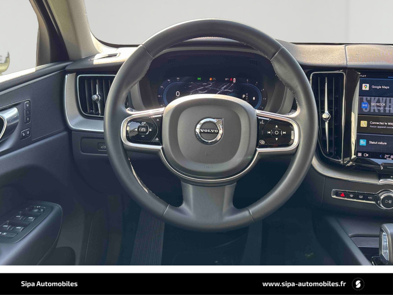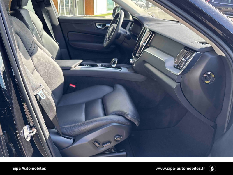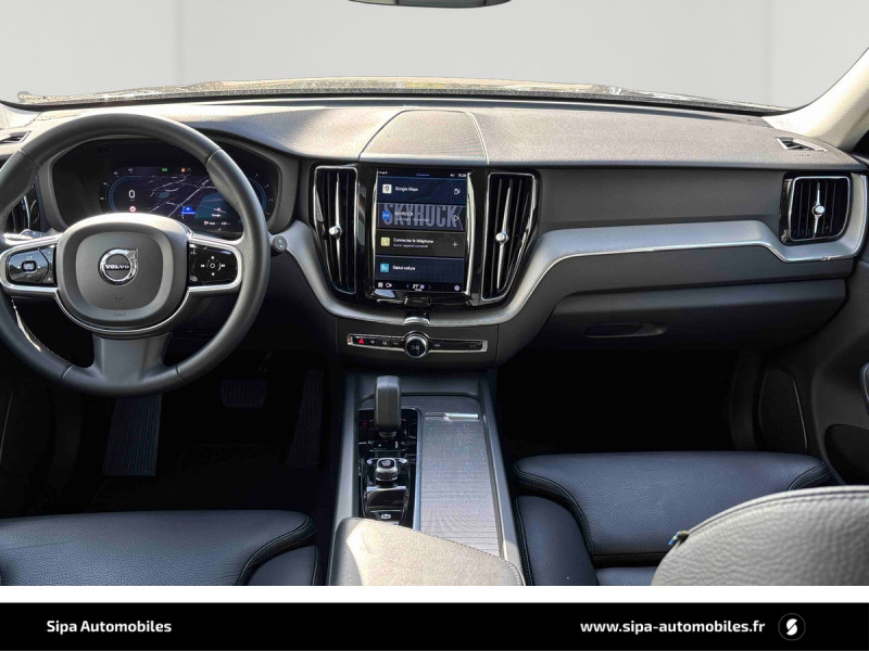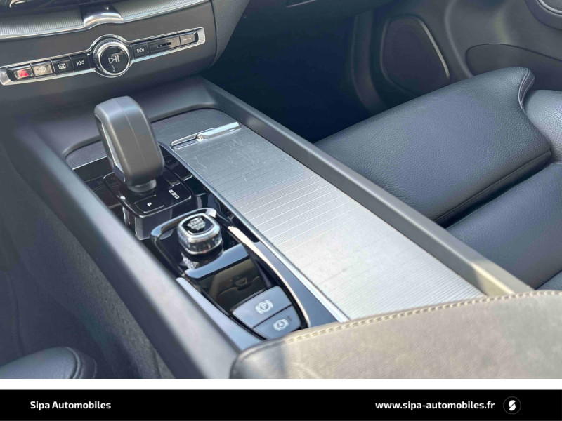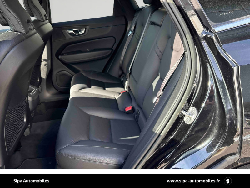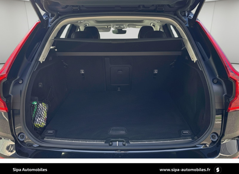 Assise et dossier des sièges en Cuir coloris Noir / Climatisation automatique bi-zone Inclut un système de recirculation de l'air et un filtre à pollen / Commande vocale avancée (climatisation, médias, téléphone, eManuel utilisateur et navigation) / Déclenchement automatique des feux de detresse lors d'un freinage d'urgence / Envoi automatique d'une alerte au service en cas de collision / Fonction climatisation de l'habitacle moteur coupé / Freinage automatique post-collision (réduction du risque de suraccident) / Jantes alliage 19" 5 branches en V Noir / Diamant, 235/55 R19 / Pack Digital Connect / Pack éclairage / Phares LED avec correcteur dynamique de la portée et feux de jour design marteau de Thor / Pommeau de levier de vitesse gainé de Simili-Cuir / Pré-câblage électrique pour le crochet d'attelage / Radar de stationnement AV et AR avec signal sonore et visuel / Seuil de coffre en Aluminium / Seuils de porte en Aluminium à l'AV badgés Volvo / Télécommande de verrouillage centralisé avec clé de contact integrée, fermeture automatique des vitres et du toit ouvrant, fonction panique (déclenchement du klaxon et des feux de détresse) / Verrouillage automatique des portes à partir de 7 km/h / Verrouillage de sécurité enfant automatique commandé depuis le siège conducteur (condamne aussi les fenêtres AR) / Volant 3 branches gainé de Simili-Cuir / 2 prises USB type-C / 4 points d'ancrage dans les panneaux latéraux du compartiment à bagages / Accès au service d'assistance Volvo via bouton dédié dans le plafonnier / Accès au service d'urgence Volvo via bouton SOS dans le plafonnier / Airbag passager désactivable avec témoin d'indication (on/off) / Airbags conducteur et passager à déclenchement différencié / Alerte Distraction Trafic (Ready to drive notification) / Alerte vigilance conducteur / Application Volvo Cars / Assise des sièges AV extensible (électriquement si le siège dispose des réglages électriques) / Calandre avec contour chromé et inserts verticaux Noir Laqué et chromés / Ceintures de sécuritéà inertie à 3 points d'ancrage tous les sièges / Châssis Dynamique / City Safety (ou Safety Assistance) Système d'anticipation de collision intelligent / CleanZone Advanced : système de filtration de l'air avancé / Combiné d'instruments digital 12,3" nouvelle génération / Contour des vitres latérales chromé / Contrôle de la transmission en descente HDC / Direction assistée électrique asservie à la vitesse / Eclairage d'accompagnement et éclairage d'approche / Ecran central tactile multimédia haute résolution 9" personnalisable, nouvelle génération / Filet de protection coffre/habitacle / Fonction Stop&Start : coupe et redémarre le moteur lorsque la voiture est à l'arrêt (déconnectable) / Freins à disques 18" ventilés à l'AV, 17" à l'AR / Indicateur de perte de pression des pneus / Infotainment Google Android Services Google (comprend Google Maps, Google Assistant, Google Play Store, chargeur smartphone par induction et un volume de données illimité pour les 4 premières années) et Kit mains libres Bluetooth et Streaming Audio, mode d'emploi numérique du véhicule, réception de la radio numérique (DAB+), mises à jour Over the Air (OTA). / Insert chromé sur le bouclier AR / Insert chromé sur le bouclier AV / Insert chromé sur les bas de caisse latéraux / Kit anti-crevaison / Miroirs de courtoisie éclairés, spots de lecture à l'AV, éclairage aux pieds à l'AV, dans la boîte à gants et le coffre, éclairage intérieur temporisé / Mise à jour du système à distance (Over The Air ou OTA) / Mode de conduite personnalisable Impactant direction, moteur, freins, ESC, Stop & Start, économies d'énergie, combiné digital et contrôle actif du bruit) / Ouverture des portes sans clé Keyless Entry incluant éclairage du sol dans les poignées de porte AV et ouverture Confort du hayon électrique (sans les mains) / Pare-brise en verre feuilleté et colonne de direction rétractable en cas de choc / Pare-chocs AR avec sorties d'échappement dissimulées / Pare-chocs AV couleur carrosserie avec inserts chromés / Pavillon de toit coloris Beige / Porte-ticket de parking et d'autoroute / Prise 12 V dans le coffre / Préparation pour le système Isofix (places latérales de la 2ème rangée de sièges) / Rails de toit Chrome / Rappel d'oubli de bouclage de ceinture de sécurité AV et AR / Rétroviseurs extérieurs couleur carrosserie / Rétroviseurs intérieur sans contour et extérieurs électrochromes / Siège conducteur à réglages électriques et à mémoire / Siège passager AV à réglages électriques / Siège passager avec foncion mémoire / Sonde de température extérieure et horloge / Structure de l'habitacle renforcéà l'acier de Bore / Supports lombaires des sièges AV réglables électriquement (4 positions) / Système audio Volvo High Performance, 220 W, 10 HP, radio RDS / Système de contrôle de la stabilité et de la traction STC / Système de contrôle du freinage du véhicule VDC / Système de protection anti-sortie de route / Système de protection collision frontale : Détection du risque de collision frontale (jusqu'à 80 km/h) avec action corrective sur la direction / Système de protection en cas de sortie de route / Système de récupération de l'énergie au freinage / Système de réglage en hauteur des phares / Système intelligent d'information au conducteur IDIS / Sécurité connectée Alerte Feux de détresse et Chaussée glissante (nécessite une connexion Internet) / Tapis de sol textile AV/AR / Trappe de carburant intélligente sans bouchon / Trousse de 1er secours et triangle de présignalisation / Vitres AV et AR électriques à impulsion (montée et descente) avec système anti-pincement