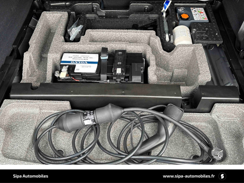 Assise et dossier des sièges en Cuir coloris Noir / Climatisation automatique bi-zone Inclut un système de recirculation de l?air et un filtre à pollen / Commande vocale avancée (climatisation, médias, téléphone, eManuel utilisateur et navigation) / Câble de recharge de 4,5 mètres avec LED d'indication de charge / Déclenchement automatique des feux de detresse lors d'un freinage d'urgence / Envoi automatique d?une alerte au service en cas de collision / Fonction climatisation de l'habitacle moteur coupé / Freinage automatique post-collision (réduction du risque de suraccident) / Incrustations Aluminium Maillé / Jantes alliage 20" 6 branches Noir / Diamant, 255/45 R20 / Pack Digital Connect / Phares directionnels Full LED avec correcteur dynamique de la portée, lave-phares à haute pression escamotables, feux de route actifs et feux de jour design marteau de thor / Planche de bord gainée de simili-cuir / Pommeau de levier de vitesse gainé de Simili-Cuir / Pré-câblage électrique pour le crochet d'attelage / Radar de stationnement AV et AR avec signal sonore et visuel / Sellerie Cuir avec Sièges confort / Seuil de coffre en Aluminium / Seuils de porte en Aluminium à l'AV badgés Volvo / Seuils de portes en Aluminium à l'AV badgés Recharge / Système de pré-conditionnement de l'habitacle (chauffage et climatisation) / Toit ouvrant panoramique en deux parties avec pare-soleil électrique / Télécommande de verrouillage centralisé avec clé de contact integrée, fermeture automatique des vitres et du toit ouvrant, fonction panique (déclenchement du klaxon et des feux de détresse) / Verrouillage automatique des portes à partir de 7 km/h / Verrouillage de sécurité enfant automatique commandé depuis le siège conducteur (condamne aussi les fenêtres AR) / Volant 3 branches gainé de Simili-Cuir / 2 prises USB type-C / 4 points d'ancrage dans les panneaux latéraux du compartiment à bagages / Accès au service d'assistance Volvo via bouton dédié dans le plafonnier / Accès au service d'urgence Volvo via bouton SOS dans le plafonnier / Affichage tête haute couleur avec système Alerte distance de sécurité / Airbag passager désactivable avec témoin d'indication (on/off) / Airbags conducteur et passager à déclenchement différencié / Alerte Distraction Trafic (Ready to drive notification) / Alerte vigilance conducteur / Application Volvo Cars sur smartphone iOS ou Android / Appuie-tête AR rabattables électriquement / Assise des sièges AV extensible (électriquement si le siège dispose des réglages électriques) / Bouclier AV et diffuseur AR spécifiques avec inserts Noir Laqué / Calandre spécifique avec incrustations et contour Noir Laqué / Ceintures de sécuritéà inertie à 3 points d'ancrage tous les sièges / Châssis Dynamique / City Safety (ou Safety Assistance) Système d?anticipation de collision intelligent / Combiné d'instruments digital 12,3" nouvelle génération / Contour des vitres latérales Noir laqué / Contrôle de la transmission en descente HDC / Coques de rétroviseurs Noir Laqué / Direction assistée électrique asservie à la vitesse / Eclairage d'accompagnement et éclairage d'approche / Ecran central tactile multimédia haute résolution 9" personnalisable, nouvelle génération / Filet de protection coffre/habitacle / Fonction Stop&Start : coupe et redémarre le moteur lorsque la voiture est à l'arrêt (déconnectable) / Freins à disques 18" ventilés à l'AV, 17" à l'AR / Indicateur de perte de pression des pneus / Infotainment Google Android Services Google (comprend Google Maps, Google Assistant, Google Play Store, chargeur smartphone par induction et un volume de données illimité pour les 4 premières années) et Kit mains libres Bluetooth et Streaming Audio, mode d?emploi numérique du véhicule, réception de la radio numérique (DAB+), mises à jour Over the Air (OTA). / Inserts Noir Laqué sur le bouclier AV et AR / IntelliSafe Assist Régulateur adaptatif de vitesse et de distance ACC, Assistance à la conduite intelligente, Alerte distance de sécurité, Système d?assistance à l?arrêt d?urgence / IntelliSafe Surround Surveillance anti-angle mort, Assistance au changement de file, Alerte trafic en marche arrière et Alerte collision arrière avec action corrective sur la direction / Kit anti-crevaison / Miroirs de courtoisie éclairés, spots de lecture à l'AV, éclairage aux pieds à l'AV, dans la boîte à gants et le coffre, éclairage intérieur temporisé / Mise à jour du système à distance (Over The Air ou OTA) / Mode de conduite personnalisable : Pure, Hybrid, Power, AWD, Off Road Impactant direction, moteur, freins, ESC, Stop & Start, économies d?énergie, combiné digital et contrôle actif du bruit) / One Pedal Drive ou Conduite à une pédale Fonction permettant au conducteur de contrôler à la fois l?accélération et la décélération avec la seule pédale d?accélérateur / Ouverture des portes sans clé Keyless Entry incluant éclairage du sol dans les poignées de porte AV et ouverture Confort du hayon électrique (sans les mains) / Pare-brise en verre feuilleté et colonne de direction rétractable en cas de choc / Pare-chocs AR avec sorties d?échappement dissimulées / Pare-chocs AV couleur carrosserie avec inserts chromés / Pavillon de toit coloris Beige / Port de recharge sur l'aile AV gauche / Porte-ticket de parking et d'autoroute / Prise 12 V dans le coffre / Préparation pour l'installation d'un éthylomètre antidémarrage / Préparation pour le système Isofix (places latérales de la 2ème rangée de sièges) / Purificateur d'air CleanZone Avancé Système de filtration de l'air avancé avec indication de la qualité de l'air / Rails de toit couleur Noir Laqué / Rappel d'oubli de bouclage de ceinture de sécurité AV et AR / Rétroviseurs extérieurs couleur carrosserie / Rétroviseurs intérieur sans contour et extérieurs électrochromes / Siège conducteur à régla