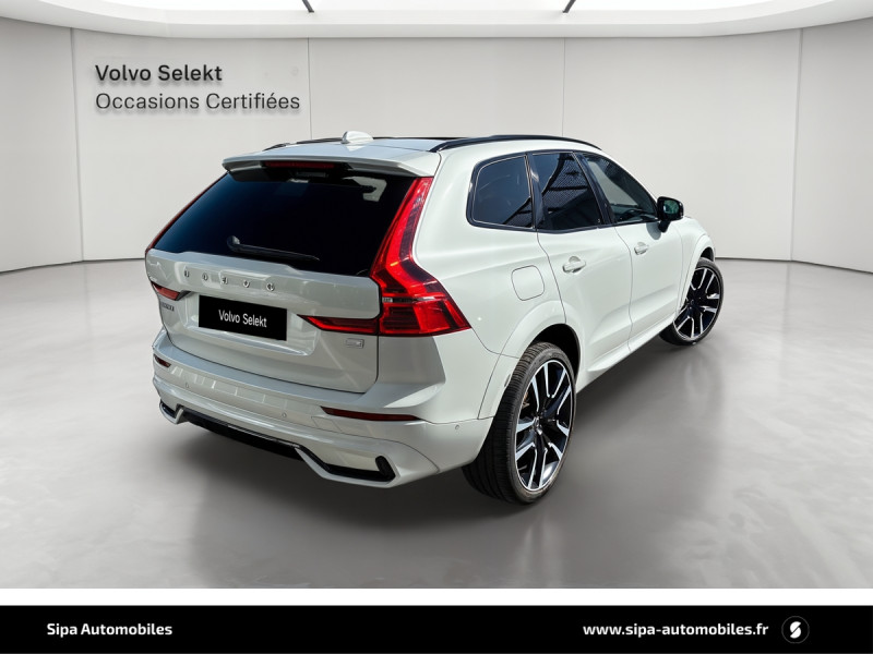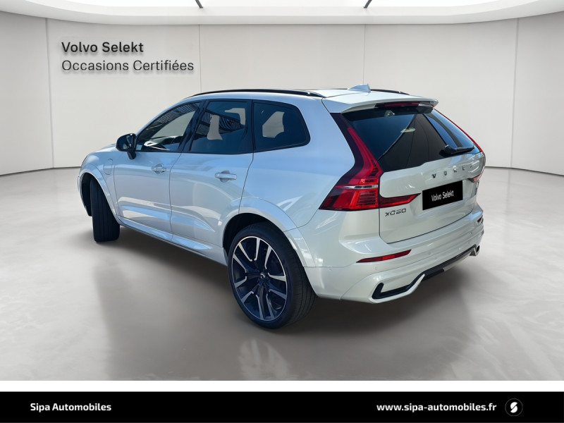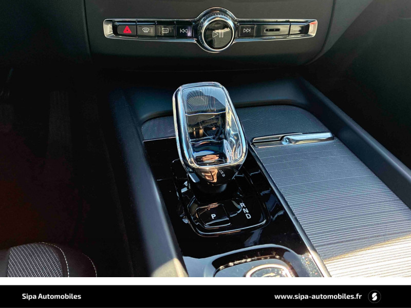 Climatisation automatique bi-zone Inclut un système de recirculation de l?air et un filtre à pollen / Commande vocale avancée (climatisation, médias, téléphone, eManuel utilisateur et navigation) / Câble de recharge de 4,5 mètres avec LED d'indication de charge / Déclenchement automatique des feux de detresse lors d'un freinage d'urgence / Envoi automatique d?une alerte au service en cas de collision / Fonction climatisation de l'habitacle moteur coupé / Freinage automatique post-collision (réduction du risque de suraccident) / Jantes alliage 20" 6 branches Noir / Diamant, 255/45 R20 / Phares directionnels Full LED avec correcteur dynamique de la portée, lave-phares à haute pression escamotables, feux de route actifs et feux de jour design marteau de thor / Planche de bord gainée de simili-cuir / Pommeau de levier de vitesse gainé de Simili-Cuir / Pré-câblage électrique pour le crochet d'attelage / Radar de stationnement AV et AR avec signal sonore et visuel / Sellerie Cuir avec Sièges confort / Seuil de coffre en Aluminium / Seuils de portes en Aluminium à l'AV badgés Recharge / Toit ouvrant panoramique en deux parties avec pare-soleil électrique / Télécommande de verrouillage centralisé avec clé de contact integrée, fermeture automatique des vitres et du toit ouvrant, fonction panique (déclenchement du klaxon et des feux de détresse) / Verrouillage automatique des portes à partir de 7 km/h / Verrouillage de sécurité enfant automatique commandé depuis le siège conducteur (condamne aussi les fenêtres AR) / Volant 3 branches gainé de Simili-Cuir / 2 prises USB type-C / 4 points d'ancrage dans les panneaux latéraux du compartiment à bagages / Accès au service d'assistance Volvo via bouton dédié dans le plafonnier / Accès au service d'urgence Volvo via bouton SOS dans le plafonnier / Affichage tête haute couleur avec système Alerte distance de sécurité / Airbag passager désactivable avec témoin d'indication (on/off) / Airbags conducteur et passager à déclenchement différencié / Alerte Distraction Trafic (Ready to drive notification) / Alerte vigilance conducteur / Application Volvo Cars sur smartphone iOS ou Android / Assise des sièges AV extensible (électriquement si le siège dispose des réglages électriques) / Bouclier AV et diffuseur AR spécifiques avec inserts Noir Laqué / Calandre spécifique avec incrustations et contour Noir Laqué / Ceintures de sécuritéà inertie à 3 points d'ancrage tous les sièges / Chauffage additionnel programmable (moteur et habitacle) / Châssis Dynamique / City Safety (ou Safety Assistance) Système d?anticipation de collision intelligent / CleanZone Advanced : système de filtration de l?air avancé / Combiné d'instruments digital 12,3" nouvelle génération / Contour des vitres latérales Noir laqué / Contrôle de la transmission en descente HDC / Coques de rétroviseurs Noir Laqué / Direction assistée électrique asservie à la vitesse / Eclairage d'accompagnement et éclairage d'approche / Ecran central tactile multimédia haute résolution 9" personnalisable, nouvelle génération / Filet de protection coffre/habitacle / Fonction Stop&Start : coupe et redémarre le moteur lorsque la voiture est à l'arrêt (déconnectable) / Freins à disques 18" ventilés à l'AV, 17" à l'AR / Indicateur de perte de pression des pneus / Infotainment Google Android Services Google (comprend Google Maps, Google Assistant, Google Play Store, chargeur smartphone par induction et un volume de données illimité pour les 4 premières années) et Kit mains libres Bluetooth et Streaming Audio, mode d?emploi numérique du véhicule, réception de la radio numérique (DAB+), mises à jour Over the Air (OTA). / Inserts Noir Laqué sur le bouclier AV et AR / IntelliSafe Assist Régulateur adaptatif de vitesse et de distance ACC, Assistance à la conduite intelligente, Alerte distance de sécurité, Système d?assistance à l?arrêt d?urgence / IntelliSafe Surround / Kit anti-crevaison / Miroirs de courtoisie éclairés, spots de lecture à l'AV, éclairage aux pieds à l'AV, dans la boîte à gants et le coffre, éclairage intérieur temporisé / Mise à jour du système à distance (Over The Air ou OTA) / Mode de conduite personnalisable : Pure, Hybrid, Power, AWD, Off Road Impactant direction, moteur, freins, ESC, Stop & Start, économies d?énergie, combiné digital et contrôle actif du bruit) / One Pedal Drive ou Conduite à une pédale Fonction permettant au conducteur de contrôler à la fois l?accélération et la décélération avec la seule pédale d?accélérateur / Ouverture des portes sans clé Keyless Entry incluant éclairage du sol dans les poignées de porte AV et ouverture Confort du hayon électrique (sans les mains) / Pare-brise en verre feuilleté et colonne de direction rétractable en cas de choc / Pare-chocs AR avec sorties d?échappement dissimulées / Pare-chocs AV couleur carrosserie avec inserts chromés / Pavillon de toit coloris Beige / Port de recharge sur l'aile AV gauche / Porte-ticket de parking et d'autoroute / Prise 12 V dans le coffre / Préparation pour le système Isofix (places latérales de la 2ème rangée de sièges) / Rails de toit couleur Noir Laqué / Rappel d'oubli de bouclage de ceinture de sécurité AV et AR / Rétroviseurs extérieurs couleur carrosserie / Rétroviseurs intérieur sans contour et extérieurs électrochromes / Siège conducteur à réglages électriques et à mémoire / Siège passager AV à réglages électriques / Siège passager avec fonction mémoire / Sièges AR chauffants (3 niveaux d'intensité) / Sièges AV chauffants (3 niveaux d'intensité) / Sonde de température extérieure et horloge / Structure de l'habitacle renforcéà l'acier de Bore / Subwoofer / Supports lombaires des sièges AV réglables électriquement (4 positions) / Système audio Volvo Harman Kardon Premium Sound / Système de contrôle de la stabilité et de la traction S