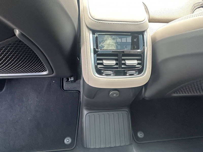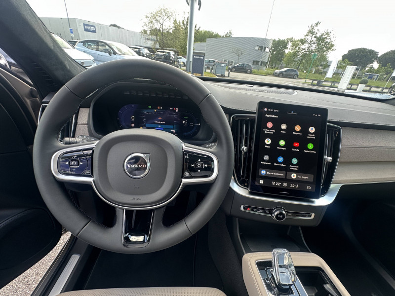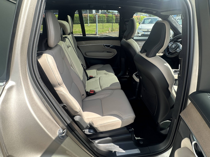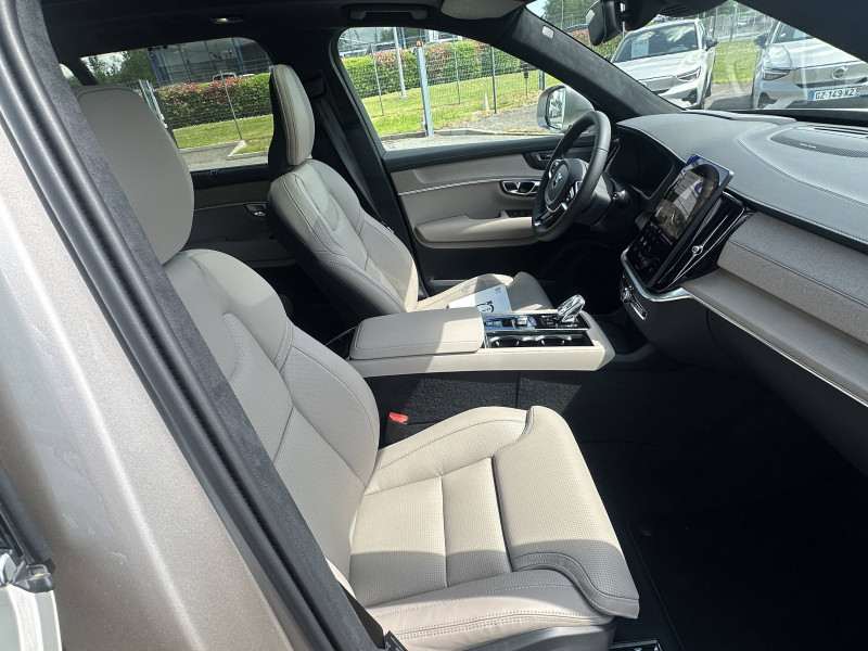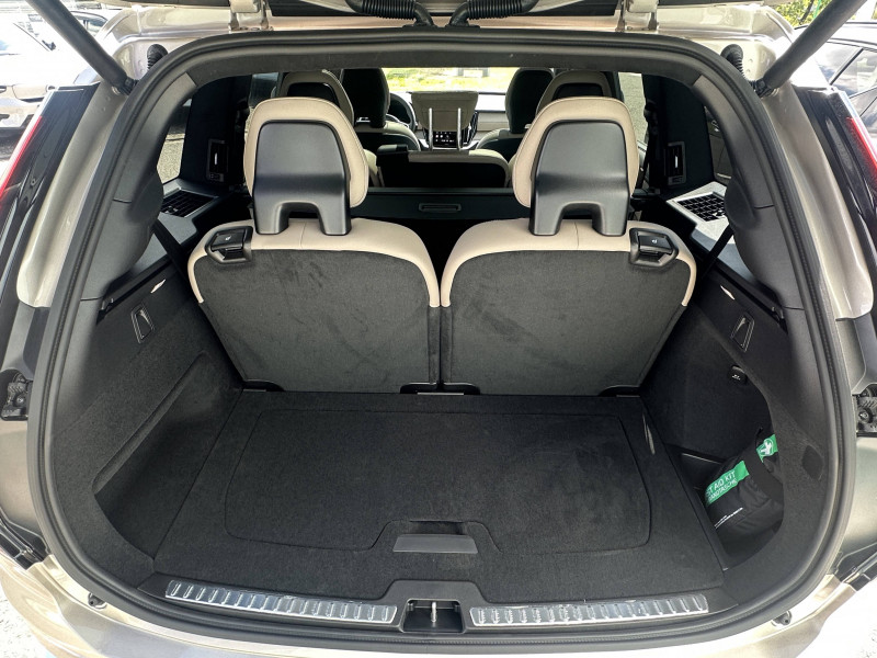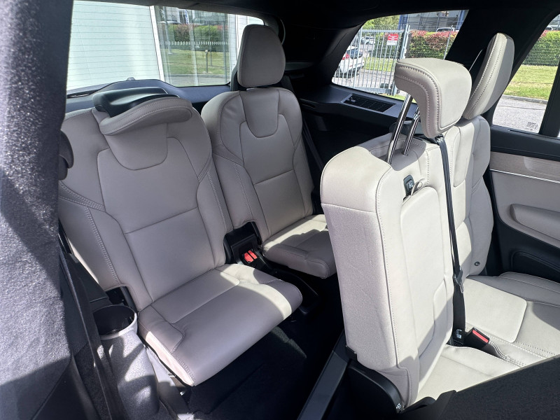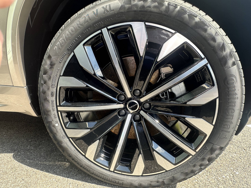 3ème rangée composée de 2 sièges individuels escamotables manuellement dans le coffre / 4 points d'ancrage dans les panneaux latéraux du coffre / 4 prises USB type-C / 5 modes de conduite disponibles : Hybrid, Power, Pure, Off road, AWD / Accès au service d'assistance Volvo via bouton dédié dans le plafonnier / Accès au service d'urgence Volvo via bouton SOS dans le plafonnier / Accoudoir central AR rabattable comprenant 2 porte-gobelets / Accoudoirs latéraux avec espace de rangement et porte-gobelet pour les sièges de la 3ème rangée / Airbag passager désactivable avec témoin d'indication (on/off) / Airbags rideaux sur toutes les rangées / Alerte Distraction Trafic (ou Ready To Drive Notification) informe le conducteur de porter plus d'attention sur le trafic / Alerte vigilance conducteur / Amortissement piloté avec la technologie FSD (ou Frequency Selective Damping) / Application Volvo Cars sur smartphone iOS ou Android / Appuis-tête 2ème rangée rabattables électriquement / Barres de toit longitudinales intégrées / Bas de caisse, passage de roue et partie basse des pare-chocs AV et AR couleur carrosserie / Boîte automatique Geartronic 8 rapports / Bouton de démarrage en Aluminium cranté / Bouton de verrouillage centralisé pour le conducteur et la passager avec diode de contrôle / Buses lave-glace intégrées aux balais d'essuie-glace / Câble de recharge Type 2 mode 2 monophasé 8A / Cache-bagages semi-automatique / Calandre style chrome avec inserts chromés / Caméras Surround View (vision panoramique à 360°) incluant caméra AV et caméra de recul / Ceintures de sécuritéà inertie à 3 points d'ancrage (sur les 7 sièges) / Combiné d'instruments digital derrière le volant 12,3" / Commande vocale avancée (climatisation, médias, téléphone, eManuel utilisateur et navigation) / Configuration 7 places / Contour des vitres latérales chromé / Contrôle de la traction (TCS) / Contrôle de la transmission en descente HDC / Coques de rétroviseurs couleur carrosserie / Coussin réhausseur intégré ajustable sur le siège central de la 2ème rangée / Déclenchement automatique des feux de detresse lors d'un freinage d'urgence / Deuxième rangée composée de trois sièges individuels : Dossiers rabattables 40/20/40 avec plancher plat, Dossiers inclinables individuellement, Sièges coulissant individuellement / Envoi automatique d'une alerte au service d'urgence Volvo en cas de collision / Espace de rangement dans les 4 portes, pouvant accueillir 1 bouteille de 1,5 l dans les portes AV / Espace de rangement sous le plancher du coffre / Filet de sécurité entre les sièges AR et le coffre / Fonction Stop & Start : coupe et redémarre le moteur lorsque la voiture est à l'arrêt / Frein à disques 19" ventlés à l'AV et 18" à l'AR / Freinage automatique post-collision suite à l'activation des prétensionneurs de sécurité ou d'un airbag / Frein de parking électronique automatique en fonction Auto Hold désactivable / Grand écran central flottant 11,2'' / Hayon du coffre électrique avec ouverture mains libres / Incrustations chromées autour des ouies d'aération / Incrustations Frêne Brun / Indicateur de perte de pression des pneus TPMS / Infotainment Google Android avec service Automotive et Google Maps Comprend Google Maps, Google Assistant, Google Play Store et un volume de données illimité pour les 4 premières années, kit mains libres Bluetooth et Streaming Audio, mode d'emploi numérique du véhicule, réception de la radio numérique (DAB+) / Jantes alliage 21'' 5 branches multiples Noir / Diamant / Kit anti-crevaison / Lave-phares à haute pression escamotables / Levier de vitesses en Cristal d'Orrefors / Miroirs de courtoisie des pare-soleil éclairés, spots de lecture à l'AV et à l'AR, éclairage aux pieds à l'AV, dans la boîte à gants et le coffre / Mise à jour du système à distance (Over The Air ou OTA) / Ouverture des portes sans clé Keyless Entry incluant éclairage du sol dans les poignées de porte AV / Pack éclairage Eclairage d'ambiance AV et AR, éclairage dans les rangements du tunnel central et du sol dans les portières AV / Pack Hiver Sièges AR chauffants (trois niveaux d'intensité), volant chauffant / Pack Mémoire - Réglage électrique des supports lombaires (4 positions) - Siège passager avec fonction mémoire - Assise des sièges AV extensible électriquement / Pare-brise en verre feuilleté et colonne de direction rétractable en cas de choc / Pare-chocs et partie inférieure des portes avec inserts chromés / Phares AV Matrix LED avec design du marteau de Thor -Technologie d'éclairage Matrix avec 15 segments - Identification des usagers de la route venant en sens inverse et ajustement automatique de la projection lumineuse pour éviter l'éblouissement - Permutation automatique des feux de route - Séquence lumineuse d'accueil lors de l'approche du véhicule / Pilot Assist, système d'assistance intelligent au conducteur comprenant : Régulateur adaptatif de vitesse et de distance ACC, - Assistance à la conduite intelligente (le véhicule lit le marquage au sol et agit sur la direction afin de se maintenir au centre de sa voie et adapte la vitesse en virage, le conducteur doit garder les mains sur le volant, fonctionne jusqu'à 130 km/h), Système d'assistance à l'arrêt d'urgence / Pneu dimensions 275/40 R21 / Pré-câblage électrique pour le crochet d'attelage / Préparation pour le système Isofix (places latérales de la 2ème rangée de sièges) / Préparation pour l'installation d'un éthylomètre antidémarrage / Prise 12 V à l'AV et à l'AR / Prise 12 V dans le coffre / Purificateur d'air : système de filtration de l'air avancé avec indication de la qualité de l'air / Radars de stationnement AV et AR avec signal sonore et visuel / Rails de toit Chrome / Rappel d'oubli de bouclage de ceinture de sécurité AV et AR / Réglage en hauteur manuel des ceintures AV et des places latérales d