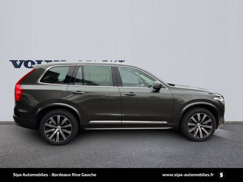 Bouton de démarrage et molette de la console centrale en Aluminium cranté / Cache-bagages semi-automatique / City Safety, système d'anticipation de collision intelligent : Détection des véhicules, cyclistes et piétons avec freinage automatique à pleine puissance. Détection des véhicules aux intersections avec freinage automatique à pleine puissance. Avertissement visuel et sonore paramétrable. Préparation des freins et ceintures de sécurité AV. / CleanZone : Filtre charbon de climatisation multi-actif AQS (limite l'entrée de pollen, de particules de pollution et de mauvaises odeurs en fermant automatiquement les arrivées d'air si nécessaire) et fonction pré-ventillation / Climatisation automatique quadri-zone (incluant boîte à gants réfrigirée) / Climatisation indépendante pour la 3e rangée de sièges avec aérations individuelles / Clé Inscription gainée de cuir / Commande vocale avancée (climatisation, médias, téléphone, eManuel utilisateur et navigation) / Câble de recharge de 4,5 mètres avec LED d'indication de charge et boîtier de commande de réglage du niveau d'intensité / Déclenchement automatique des feux de detresse lors d'un freinage d'urgence / Frein de parking électronique automatique en fonction Auto Hold désactivable / Freinage automatique post-collision (réduction du risque de suraccident) / IntelliSafe Assist : Régulateur adaptatif de vitesse et de distance ACC, Pilote semi-automatique, Alerte distance de sécurité / Jantes alliage 20" 10 branches Noir / Diamant 275/45 R20 / Pack Accessibilité Pro / Pack Eclairage Inscription / Pack Prestige / Pack Visibilté / Phares directionnels actifs full LED avec correcteur dynamique de la portée incluant feux de jour à LED, lave-phares à haute pression escamotables et feux de route actifs / Planche de bord et partie supérieure des contre-portes gainées de simili-cuir / Pré-câblage électrique pour le crochet d'attelage / Radars de stationnement AV et AR avec signal sonore et visuel / Rails de toit couleur aluminium / Sabot de protection AR couleur Aluminium avec double sortie d'échappement rectangulaire chromée intégrée / Sensus Navigation, Affichage 3D, cartographie Europe, information trafic en temps réel, applications web dédiées, 8 ans de mises à jour cartographiques gratuites grâce au programme MapCare / Seuil de coffre en Aluminium / Seuils de portes AV et AR en Aluminium rétroéclairé et badgés Volvo à l'AV / Sièges conducteur à réglages électriques avec mémoires + Rétroviseurs extérieurs avec inclinaison automatique pour marche AR / Toit ouvrant panoramique en deux parties avec pare-soleil électrique / Verrouillage automatique des portes à partir de 7 km/h / Verrouillage central de sécurité enfant automatique commandé depuis le siège conducteur / Volant 3 branches gainé de Cuir avec insert en Aluminium / "ATTENTION" - Equipements en cours de saisie / 2 espaces de rangement avec volet coulissant entre les sièges AV, incluant 2 porte-gobelets / 2ème rangée composée de 3 sièges individuels : Dossiers rabattable 40/20/40 avec plancher plat et dossiers inclinables individuellement selon 6 positions / 3 porte-tickets de parking et d'autoroute / 3ème rangée composée de 2 sièges individuels escamotables dans le coffre / 4 points d'ancrage dans les panneaux latéraux du compartiment à bagages / 4 porte-cintres / Accoudoir central AR rabattable comprenant 2 porte-gobelets / Accoudoirs latéraux avec espace de rangement et porte-gobelet pour les sièges de la 3ème rangée / Affichage tête haute couleur personnalisable / Airbag passager désactivable avec témoin d'indication / Airbags conducteur et passager à déclenchement différencié / Alerte vigilance conducteur / Appuis-tête sur chaque siège, dont 1 réglables en hauteur (AR central) / Assise des sièges AV extensible (électriquement si le siège dispose des réglages électriques) / Badge T8 Engine sur le hayon / Bas de caisse, passage de roue et partie basse des pare-chocs AV et AR couleur carrosserie / Bouton de verrouillage centralisé pour le conducteur et la passager avec diode de contrôle / Boîte à gants verrouillable / Buses de lave-glace chauffantes / Calandre Argent / Ceintures de sécuritéà inertie à 3 points d'ancrage (sur les 7 sièges) / Chauffage additionnel programmable (moteur et habitacle) / Combiné d'instruments digital 12,3" personnalisable / Connexion Bluetooth pour téléphone portable / Contour des vitres latérales chromé / Contrôle de la transmission en descente HDC / Direction assistée électrique asservie à la vitesse / Eclairage aux pieds à l'AV / Eclairage d'accompagnement et éclairage d'approche / Eclairage dans la boîte à gants / Eclairage dans le coffre / Eclairage intérieur à extinction temporisée / Ecran tactile multimédia haute résolution 9" personnalisable / Espace de rangement dans les 4 portes, pouvant accueillir 1 bouteille de 1,5 l dans les portes AV / Espace de rangement verrouillable sous le plancher du compartiment à bagages lorsque le coffre est verrouillé / Feux de Route Adaptatifs AHB / Filet de rangement sur le tunnel de la console centrale au niveau du siège passager AV / Filet de séparation coffre/habitacle / Fonction easy entry facilitant l'accès à la 3ème rangée / Fonction Eco : optimisation des paramètres véhicule pour une conduite économique et écologique (à la demande) / Fonction Stop&Start : coupe et redémarre le moteur lorsque la voiture est à l'arrêt (déconnectable) / Frein à disques 19" ventlés à l'AV et 18" à l'AR / Hayon électrique avec fonction Confort / Incrustations chromées autour des ouies d'aération / Incrustations Frêne Anthracite / Indicateur de perte de pression des pneus avec localisation / Insert chromé sur le bouclier AR / Insert chromé sur le bouclier AV / Inserts chromés badgé Inscription sur les bas de caisse latéraux / Inserts chromés sur les poignées de portes /