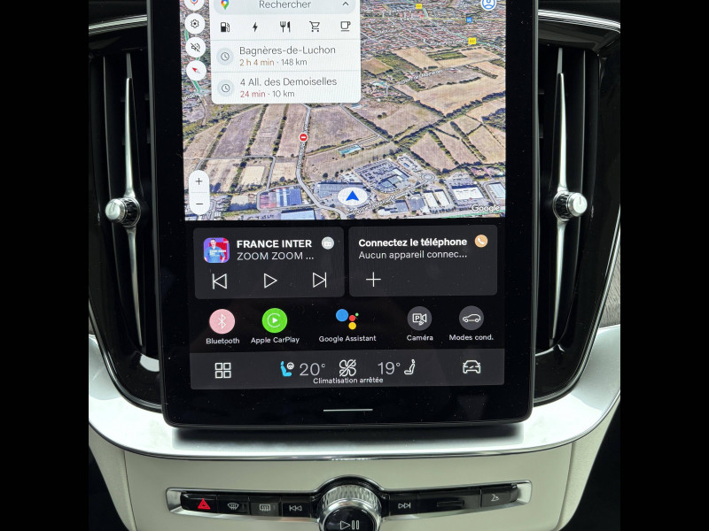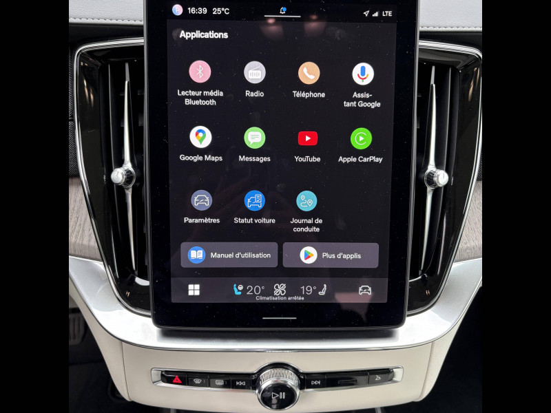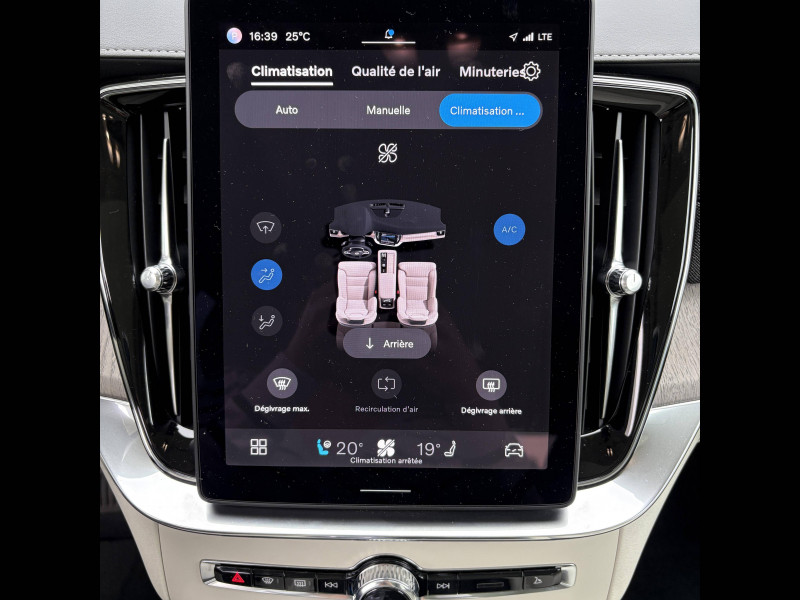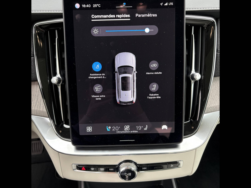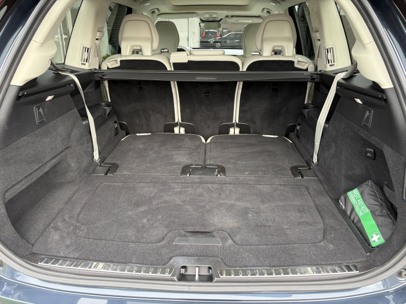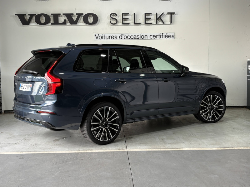 3ème rangée composée de 2 sièges individuels escamotables dans le coffre / 4 points d'ancrage dans les panneaux latéraux du coffre / 4 prises USB type-C / 5 modes de conduite disponibles : Hybrid, Power, Pure, Off road, AWD / Accès au service d'assistance Volvo via bouton dédié dans le plafonnier / Accès au service d'urgence Volvo via bouton SOS dans le plafonnier / Accoudoir central AR rabattable comprenant 2 porte-gobelets / Accoudoirs latéraux avec espace de rangement et porte-gobelet pour les sièges de la 3ème rangée / Airbag passager désactivable avec témoin d'indication (on/off) / Alarme Volvo Guard avec capteur de mouvements et d'inclinaison / Alerte Distraction Trafic (Ready to drive notification) (ADAS) Informe le conducteur lorsque le système remarque qu'il est nécessaire de porter plus d'attention sur le trafic et/ou qu'il faut mettre ses mains sur le volant / Alerte vigilance conducteur / Amortissement piloté avec la technologie FSD (ou Frequency Selective Damping) / Application Volvo Cars sur smartphone iOS ou Android / Appuis-tête 2ème rangée rabattables électriquement / Assise des sièges AV extensible (électriquement si le siège dispose des réglages électriques) / Barres de toit longitudinales intégrées / Bas de caisse, passage de roue et partie basse des pare-chocs AV et AR couleur carrosserie / Bouton de démarrage en Aluminium cranté / Bouton de verrouillage centralisé pour le conducteur et la passager avec diode de contrôle / Buses de lave-glace / Câble de recharge Type 2 mode 2 monophasé 8A / Cache-bagages semi-automatique / Calandre style Dark avec inserts noir laqué / Caméras Surround View (vision panoramique à 360°) incluant caméra AV et caméra de recul / Ceintures de sécuritéà inertie à 3 points d'ancrage (sur les 7 sièges) / Combiné d'instruments digital derrière le volant 12,3" / Commande vocale avancée (climatisation, médias, téléphone, eManuel utilisateur et navigation) / Configuration 7 places / Contour des vitres latérales Noir Laqué / Contrôle de la transmission en descente HDC / Coques de rétroviseurs Noir Laqué / Coussin réhausseur intégré ajustable sur le siège central de la 2ème rangée / Déclenchement automatique des feux de detresse lors d'un freinage d'urgence / Deuxième rangée composée de trois sièges individuels : Dossiers rabattables 40/20/40 avec plancher plat, Dossiers inclinables individuellement, Sièges coulissant individuellement / Direction assistée électrique asservie à la vitesse / Envoi automatique d'une alerte au service d'urgence Volvo en cas de collision / Espace de rangement dans les 4 portes, pouvant accueillir 1 bouteille de 1,5 l dans les portes AV / Espace de rangement sous le plancher du coffre / Filet de sécurité entre les sièges AR et le coffre / Fonction Stop & Start : coupe et redémarre le moteur lorsque la voiture est à l'arrêt / Frein à disques 19" ventlés à l'AV et 18" à l'AR / Freinage automatique post-collision (réduction du risque de suraccident) / Frein de parking électronique automatique en fonction Auto Hold désactivable / Grand écran central flottant 11,2'' / Hayon électrique avec fonction Confort (mains libres) / Incrustations chromées autour des ouies d'aération / Incrustations Frêne Brun / Indicateur de perte de pression des pneus TPMS / Infotainment Google Android avec service Automotive et Google Maps Comprend Google Maps, Google Assistant, Google Play Store et un volume de données illimité pour les 4 premières années, kit mains libres Bluetooth et Streaming Audio, mode d'emploi numérique du véhicule, réception de la radio numérique (DAB+) / Jantes alliage 21'' 5 branches multiples Noir / Diamant / Kit anti-crevaison / Lave-phares à haute pression escamotables / Miroirs de courtoisie des pare-soleil éclairés, éclairage aux pieds à l'AV, dans la boîte à gants et le coffre / Mise à jour du système à distance (Over The Air ou OTA) / Ouverture des portes sans clé Keyless Entry incluant éclairage du sol dans les poignées de porte AV / Pack éclairage Eclairage d'ambiance AV et AR, éclairage dans les rangements du tunnel central et du sol dans les portières AV / Pack Hiver Sièges AR chauffants (trois niveaux d'intensité), volant chauffant / Pare-brise en verre feuilleté et colonne de direction rétractable en cas de choc / Pare-chocs avec inserts noir laqué / Parties inférieures des portes couleur carrosserie / Phares AV Matrix LED avec design du marteau de Thor -Technologie d'éclairage Matrix avec 15 segments - Identification des usagers de la route venant en sens inverse et ajustement automatique de la projection lumineuse pour éviter l'éblouissement - Permutation automatique des feux de route - Séquence lumineuse d'accueil lors de l'approche du véhicule / Pilot Assist, système d'assistance intelligent au conducteur comprenant : Régulateur adaptatif de vitesse et de distance ACC, - Assistance à la conduite intelligente (le véhicule lit le marquage au sol et agit sur la direction afin de se maintenir au centre de sa voie et adapte la vitesse en virage, le conducteur doit garder les mains sur le volant, fonctionne jusqu'à 130 km/h), Système d'assistance à l'arrêt d'urgence / Pommeau de levier de vitesses exclusif en cristal d'Orrefors / Pré-câblage électrique pour le crochet d'attelage / Préparation pour le système Isofix (places latérales de la 2ème rangée de sièges) / Préparation pour l'installation d'un éthylomètre antidémarrage / Prise 12 V à l'AV et à l'AR / Prise 12 V dans le coffre / Purificateur d'air CleanZone Avancé Système de filtration de l'air avancé avec indication de la qualité de l'air / Radars de stationnement AV et AR avec signal sonore et visuel / Rails de toit couleur Noir Laqué / Rappel d'oubli de bouclage de ceinture de sécurité AV et AR / Réglage électrique des supports lombaires (4 positions) / Réglage en hauteur manuel des ceintures AV et de