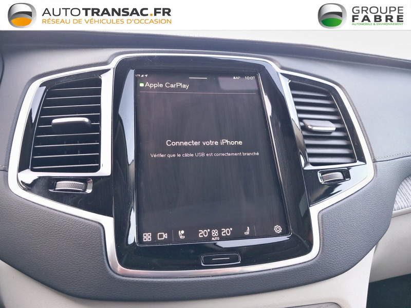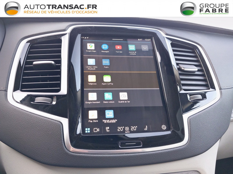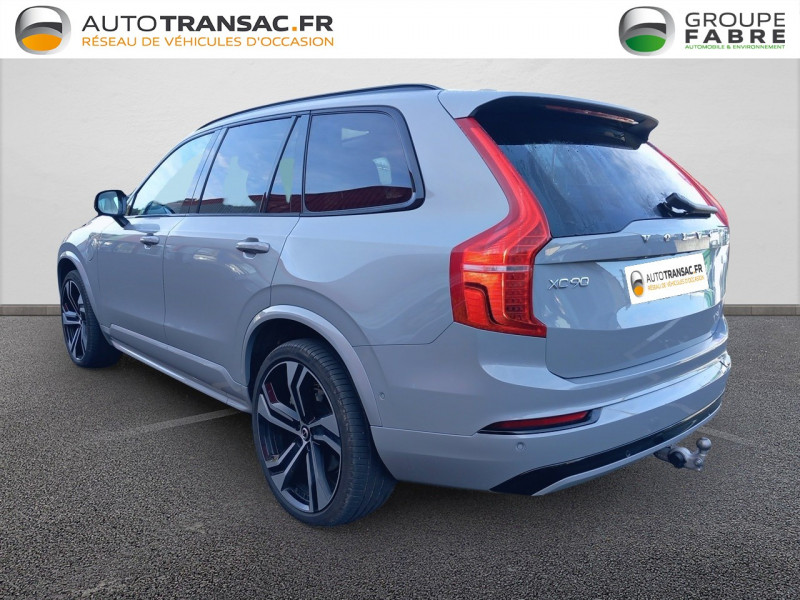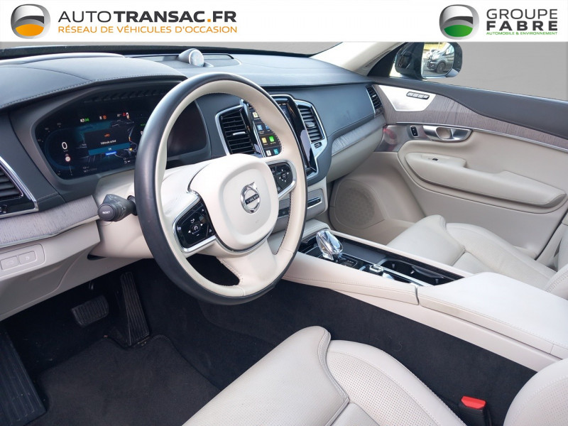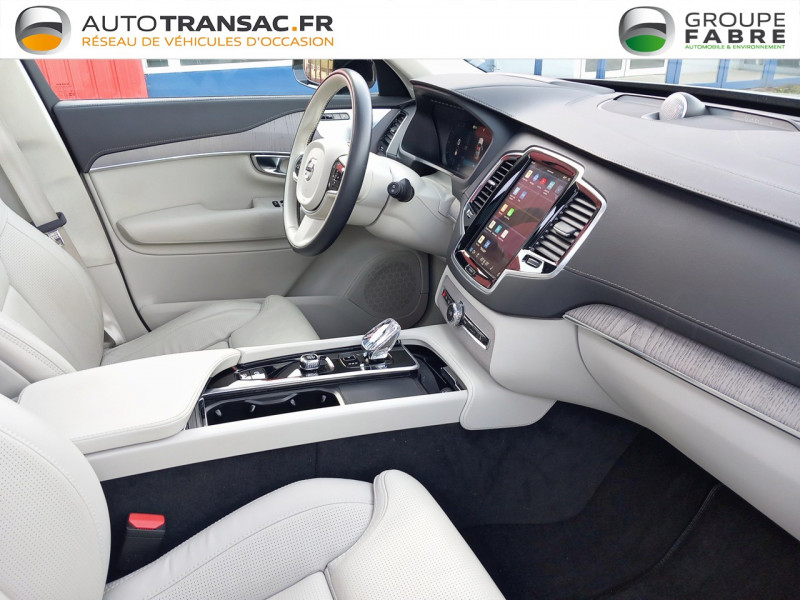Bouton de démarrage en Aluminium cranté / Cache-bagages semi-automatique / City Safety, système d'anticipation de collision intelligent comprenant : Détection des véhicules, cyclistes, piétons et grands animaux avec freinage automatique à pleine puissance, détection des véhicules aux intersections avec freinage automatique à pleine puissance, avertissement visuel et sonore paramétrable et préparation des freins / Climatisation automatique bi-zone et aérations individuelles à l'AR. Inclus un système de recirculation de l'air, un filtre à pollen et la fonction de climatisation de l'habitacle moteur coupé / Climatisation indépendante pour la 3ème rangée de sièges avec aérations individuelles / Commande vocale avancée (climatisation, médias, téléphone, eManuel utilisateur et navigation) / Câble de recharge de 4,5 mètres avec LED d'indication de charge / Déclenchement automatique des feux de detresse lors d'un freinage d'urgence / Envoi automatique d'une alerte au service d'urgence Volvo en cas de collision / Frein de parking électronique automatique en fonction Auto Hold désactivable / Freinage automatique post-collision (réduction du risque de suraccident) / IntelliSafe Surround système d?aide à la vigilance : Surveillance anti-angle mort, Assistance au changement de file, Alerte trafic en marche AR, Alerte collision AR avec action corrective sur la direction / Jantes alliage 20" 5 branches Noir / Diamant dimensions 275/45 R20 Avec élargisseur de passage de roue / Pavillon de toit et montants A, B et C en nubuck, pare-soleils et poignées de maintien gainés Cuir / Phares directionnels Full LED avec correcteur dynamique de la portée, lave-phares à haute pression escamotables, feux de route actifs et feux de jour / Planche de bord et partie supérieure des contre-portes gainées de simili-cuir / Pré-câblage électrique pour le crochet d'attelage / Radars de stationnement AV et AR avec signal sonore et visuel / Sellerie Cuir Nappa avec Sièges confort AV perforé et ventilé avec maintien latéral du dossier réglable électriquement / Seuil de coffre en Aluminium / Seuils de portes AV et AR en Aluminium et badgés Recharge à l'AV / Sièges conducteur à réglages électriques avec mémoires + Rétroviseurs extérieurs avec inclinaison automatique pour marche AR / Système de pré-conditionnement de l'habitacle (chauffage et climatisation) / Toit ouvrant panoramique en deux parties avec pare-soleil électrique / Télécommande de verrouillage centralisé avec clé de contact intégrée, fermeture à distance des vitres et du toit ouvrant et fonction panique (déclenchement du klaxon et des feux de détresse) / Verrouillage automatique des portes à partir de 7 km/h / Verrouillage de sécurité enfant automatique commandé depuis le siège conducteur (condamne aussi les fenêtres AR) / Volant 3 branches gainé de Simili-Cuir avec insert Aluminium / 2 espaces de rangement avec volet coulissant entre les sièges AV, incluant 2 porte-gobelets / 2 prises USB type-C / 2ème rangée composée de 3 sièges individuels : Dossiers rabattable 40/20/40 avec plancher plat et dossiers inclinables individuellement selon 6 positions / 3ème rangée composée de 2 sièges individuels escamotables dans le coffre / 4 points d'ancrage dans les panneaux latéraux du compartiment à bagages / 4 porte-cintres / Accoudoir central AR rabattable comprenant 2 porte-gobelets / Accoudoirs latéraux avec espace de rangement et porte-gobelet pour les sièges de la 3ème rangée / Accès au service d'assistance Volvo via bouton dédié dans le plafonnier / Accès au service d'urgence Volvo via bouton SOS dans le plafonnier / Airbag passager désactivable avec témoin d'indication (on/off) / Airbags conducteur et passager à déclenchement différencié / Alerte Distraction Trafic (Ready to drive notification) (ADAS) Informe le conducteur lorsque le système remarque qu'il est nécessaire de porter plus d'attention sur le trafic et/ou qu'il faut mettre ses mains sur le volant / Alerte vigilance conducteur / Application Volvo Cars sur smartphone iOS ou Android / Appuis-tête 2ème rangée rabattables électriquement / Appuis-tête sur chaque siège, dont 1 réglables en hauteur (AR central) / Assise des sièges AV extensible (électriquement si le siège dispose des réglages électriques) / Badge spécifique T8 AWD sur le hayon / Bas de caisse, passage de roue et partie basse des pare-chocs AV et AR couleur carrosserie / Bouclier AV et diffuseur AR spécifiques avec inserts Noir Laqué / Bouton de verrouillage centralisé pour le conducteur et la passager avec diode de contrôle / Buses de lave-glace / Calandre Style Dark spécifique avec contour Noir Laqué / Ceintures de sécuritéà inertie à 3 points d'ancrage (sur les 7 sièges) / Combiné d'instruments digital 12,3" nouvelle génération / Contour des vitres latérales Noir Laqué / Contrôle de la transmission en descente HDC / Coques de rétroviseurs Noir Laqué / Coussin réhausseur intégré ajustable sur le siège central de la 2ème rangée / Direction assistée électrique asservie à la vitesse / Eclairage aux pieds à l'AV / Eclairage d'accompagnement et éclairage d'approche / Eclairage dans la boîte à gants / Eclairage dans le coffre / Eclairage intérieur temporisée / Ecran tactile multimédia haute résolution 9", nouvelle géneration / Emblème Volvo chauffant sur calandre AV / Espace de rangement dans les 4 portes, pouvant accueillir 1 bouteille de 1,5 l dans les portes AV / Espace de rangement verrouillable sous le plancher du compartiment à bagages lorsque le coffre est verrouillé / Feux de route adaptatifs / Filet de protection coffre/habitacle / Fonction easy entry facilitant l'accès à la 3ème rangée / Fonction Stop & Start : coupe et redémarre le moteur lorsque la voiture est à l'arrêt / Frein à disques 19" ventlés à l'AV et 18" à l'AR / Hayon électrique avec fonction Confort (mains libres) /