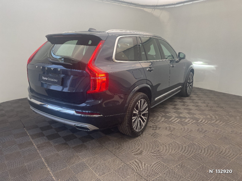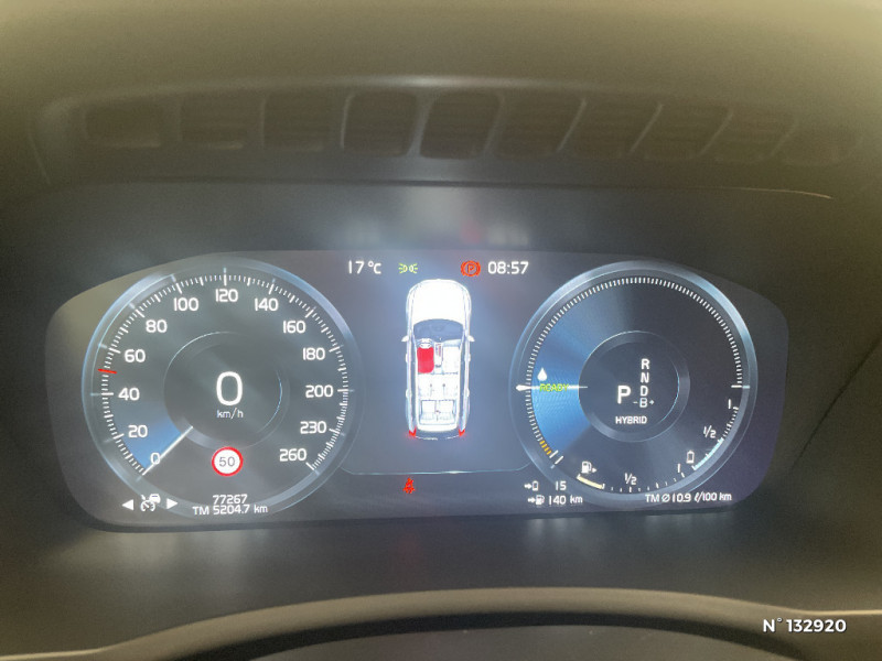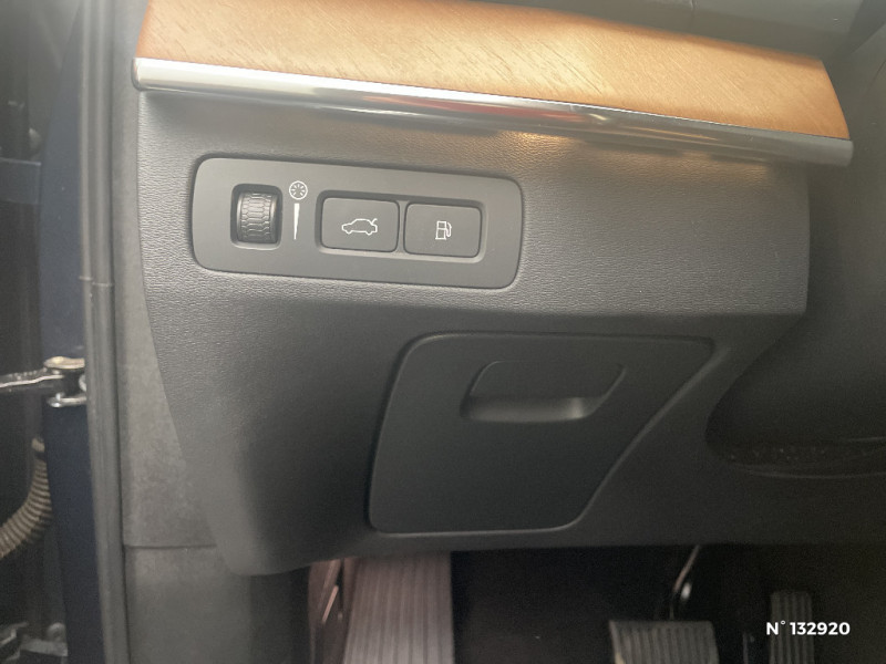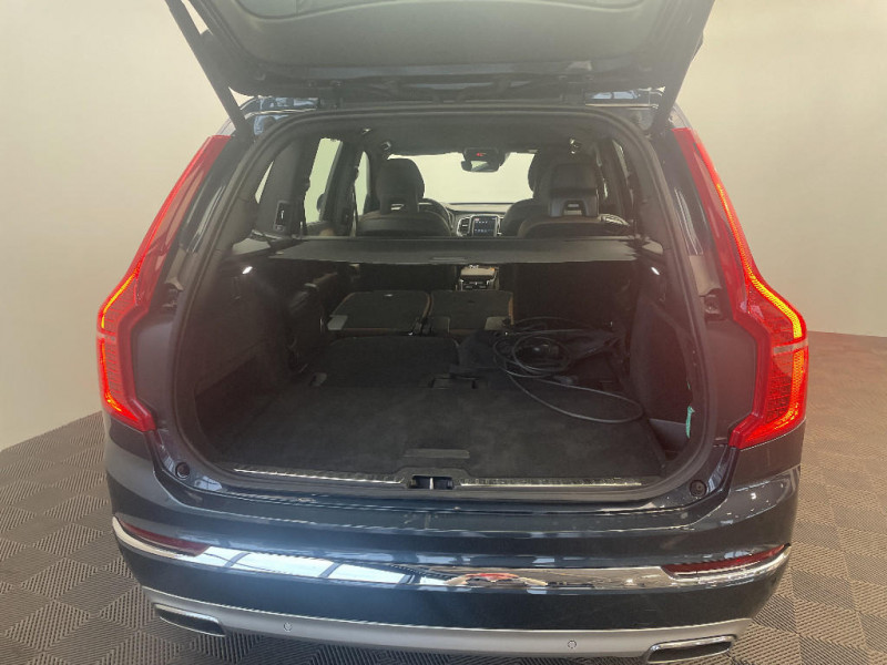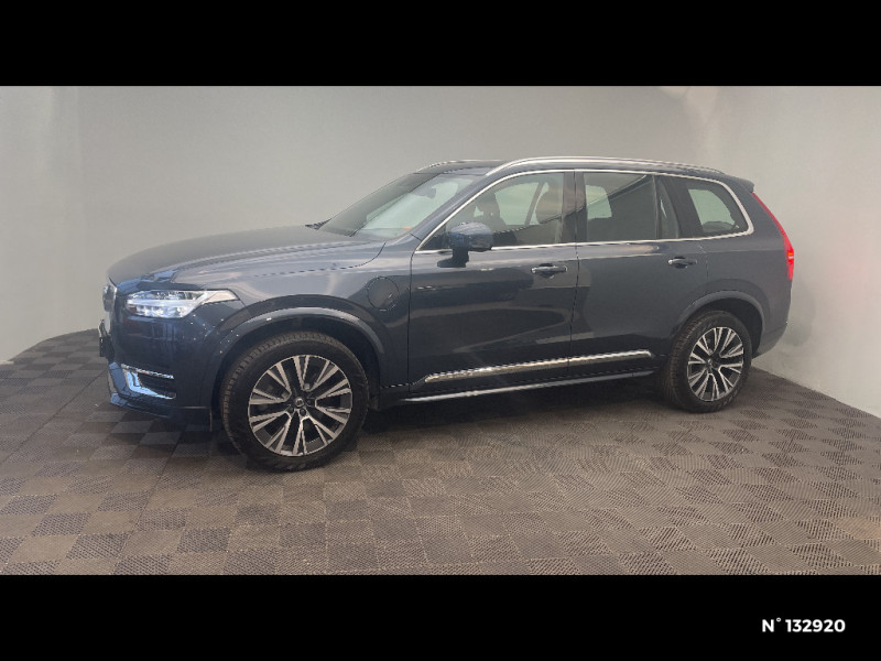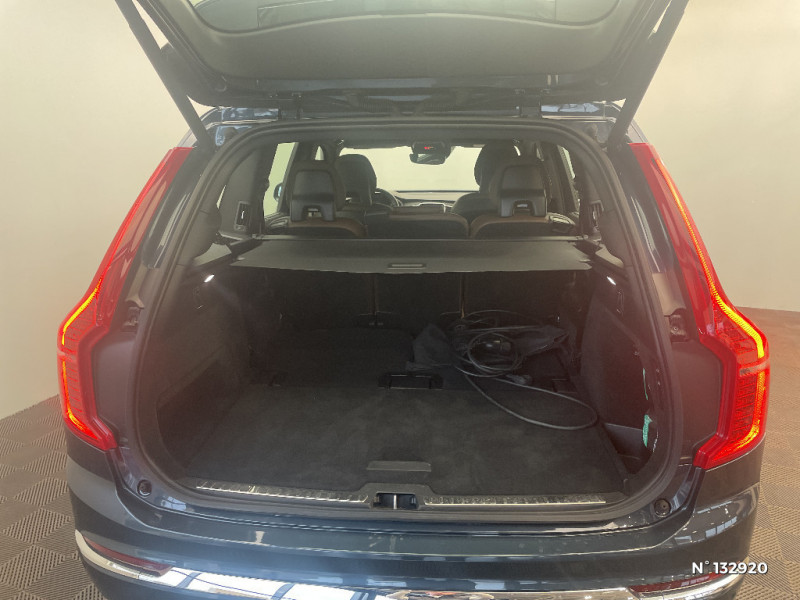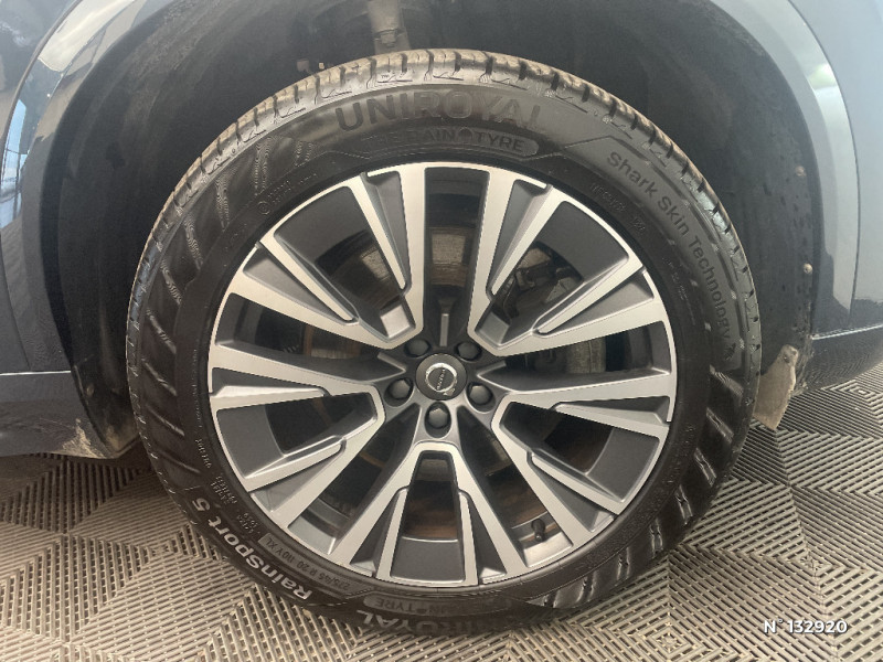 Contrôle de la transmission en descente HDC / Insert couleur aluminium sur le bouclier AR / Inserts chromés sur les poignées de portes / IntelliSafe Assist : régulateur adaptatif de vitesse et de distance ACC, Assistance à la conduite intelligente, Alerte distance de sécurité / IntelliSafe Surround : Surveillance anti-angle mort BLIS avec Assistance au Changement de File LCMA et Alerte Trafic en Marche AR et alerte collision AR / Jantes alliage 19" 6 branches Argent Brillant 235/55 R19 / Jantes alliage 20" 10 branches Noir / Diamant 275/45 R20 / Kit anti-crevaison / Matériaux anti-allergènes dans l'habitacle (sellerie, ceintures de sécurité, incrustations) / Mode de conduite personnalisable / Sabot de protection AR couleur Aluminium avec double sortie d'échappement rectangulaire chromée intégrée / Sac de rangement pour câble de recharge électrique / Sangle de fixation élastique sur le côté droit du compartiment à bagages / Sécurité connectée Alerte Feux de détresse et Chaussée glissante (nécessite une connexion Internet) / Sensus Connect : Applications web, affichage et lecture vocale des SMS (TTS), eManuel utilisateur et service révision connectée / Sensus Navigation, Affichage 3D, cartographie Europe, information trafic en temps réel, applications web dédiées, 8 ans de mises à jour cartographiques gratuites grâce au programme MapCare / Seuil de coffre en Aluminium / Seuils de portes AV et AR en Aluminium et badgés Recharge à l'AV / Seuils de portes rétroéclairés / Siège de la 2ème rangée coulissant individuellement sur 120 mm / Siège passager à réglages électriques / Siège passager avec fonction mémoire / Sièges AV chauffants (3 niveaux d'intensité) / Sièges conducteur à réglages électriques avec mémoires + Rétroviseurs extérieurs avec inclinaison automatique pour marche AR / Sonde de température extérieure et horloge / Spots de lecture AV et AR / Structure de l'habitacle renforcéà l'acier de Bore / Supports lombaires des sièges AV réglables électriquement / Système anti-sous-marinage sur chaque siège / Système de contrôle de la stabilité et de la traction STC / Système de contrôle du freinage du véhicule VDC / Système de fixation de bagages multifonction (patères + sangle élastique + volet rabattable) / Système de protection anti-sortie de route / Système de protection collision frontale : Détection du risque de collision frontale (de 65 à 140 km/h) avec action corrective sur la direction / Système de protection en cas de sortie de route / Système de réglage en hauteur des phares / Système intelligent d'information au conducteur IDIS / Tapis de sol INSCRIPTION / Tapis de sol pour la troisième rangée / Tapis de sol textile AV/AR / Télécommande de verrouillage centralisé avec clé de contact intégrée / Trappe de carburant intelligente sans bouchon / Trousse de 1er secours, triangle de présignalisation / Airbags conducteur et passager à déclenchement différencié / Alerte vigilance conducteur / Appuis-tête sur chaque siège, dont 1 réglables en hauteur (AR central) / Appuis-tête 2ème rangée rabattables électriquement / Assise des sièges AV extensible (électriquement si le siège dispose des réglages électriques) / Assise et dossier des sièges en Cuir / Assise et dossier des sièges en cuir avec incrustations spécifiques en bois / "ATTENTION" - Equipements en cours de saisie / AVAS (Acoustic Vehicle Alerting System) / Badge T8 Engine sur le hayon / Bas de caisse, passage de roue et partie basse des pare-chocs AV et AR couleur carrosserie / Boîte à gants verrouillable / Bouton de démarrage et molette de la console centrale en Aluminium cranté / Bouton de verrouillage centralisé pour le conducteur et la passager avec diode de contrôle / Buses de lave-glace / Buses de lave-glace chauffantes / Câble de recharge de 4,5 mètres avec LED d'indication de charge et boîtier de commande de réglage du niveau d'intensité / Cache-bagages semi-automatique / Calandre couleur aluminium avec inserts chromés / Ceintures de sécuritéà inertie à 3 points d'ancrage (sur les 7 sièges) / City Safety, système d'anticipation de collision intelligent : Détection des véhicules, cyclistes et piétons avec freinage automatique à pleine puissance. Détection des véhicules aux intersections avec freinage automatique à pleine puissance. Avertissement visuel et sonore paramétrable. Préparation des freins et ceintures de sécurité AV. / Utilisation de matériaux recyclables à 85 % / Verrouillage automatique des portes à partir de 7 km/h / Verrouillage de sécurité enfant manuel / Vitres AV et AR électriques à impulsion (montée et descente) avec système anti-pincement / Système audio Volvo High Performance, 220 W, 10 HP, radio RDS et 2 USB / Système audio Volvo High Performance, 330 W, 10 HP, radio RDS et USB / Volant chauffant / Volant 3 branches gainé de Cuir avec insert en Aluminium / Volvo On Call / 2 espaces de rangement avec volet coulissant entre les sièges AV, incluant 2 porte-gobelets / 2 porte-tickets de parking et d'autoroute / 2ème rangée composée de 3 sièges individuels : Dossiers rabattable 40/20/40 avec plancher plat et dossiers inclinables individuellement selon 6 positions / 3ème rangée composée de 2 sièges individuels escamotables dans le coffre / 4 points d'ancrage dans les panneaux latéraux du compartiment à bagages / 4 porte-cintres / Feux de Route Adaptatifs AHB / Filet de protection coffre/habitacle / Filet de rangement sur le tunnel de la console centrale au niveau du siège passager AV / Filet de séparation coffre/habitacle / Fonction easy entry facilitant l'accès à la 3ème rangée / Fonction Eco : optimisation des paramètres véhicule pour une conduite économique et écologique (à la demande) / Fonction Stop&Start : coupe et redémarre le moteur lorsque la voiture est à l'arrêt (déconnectable) / Frein à disques 19" ventlés à l'AV et 18" 
