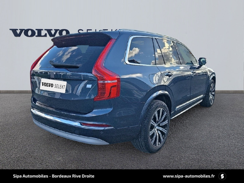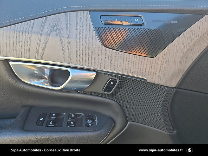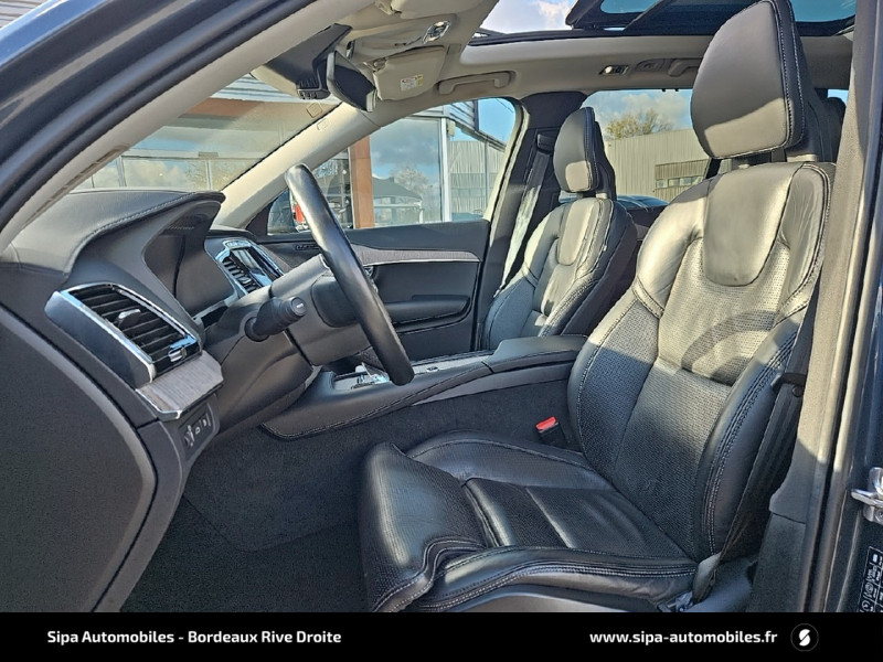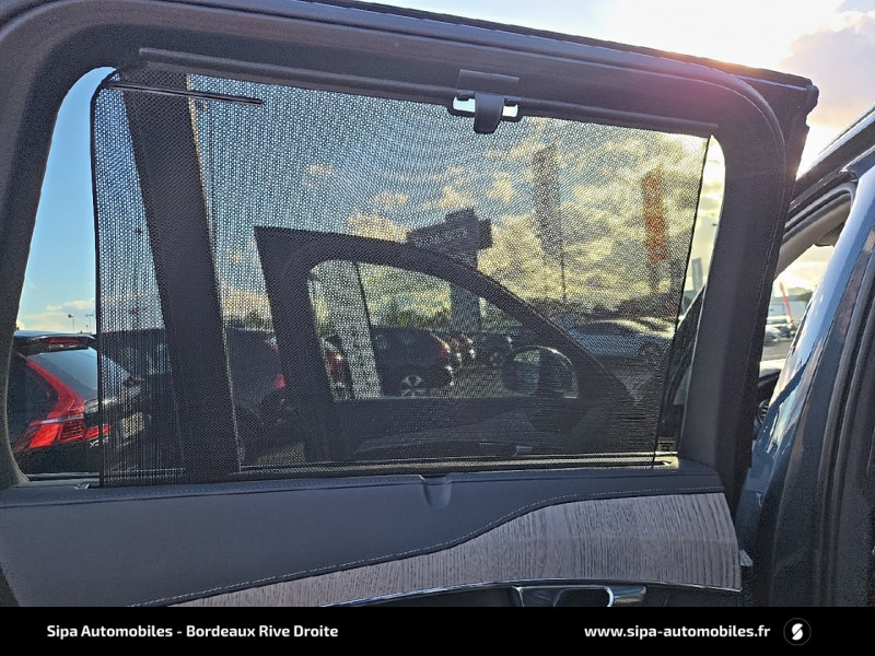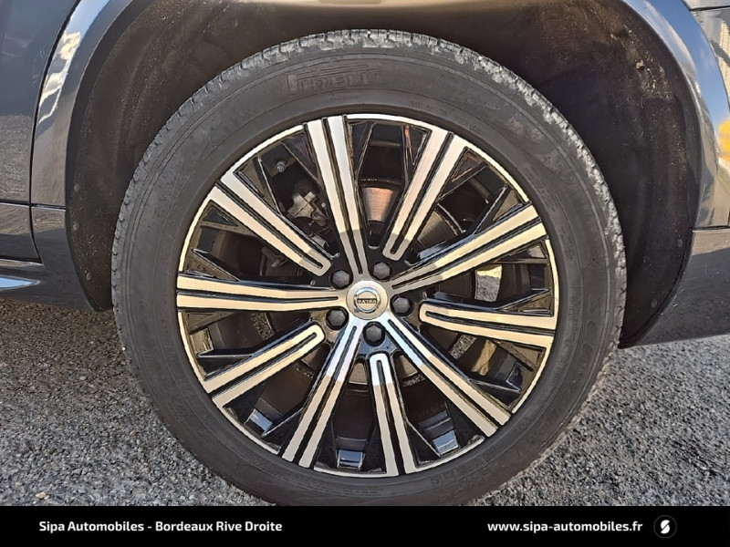 Bouton de démarrage et molette de la console centrale en Aluminium cranté / Cache-bagages semi-automatique / Calandre couleur aluminium avec inserts chromés / Caméras Surround View (vision panoramique à 360°) incluant caméra AV et caméra de recul / City Safety, système d'anticipation de collision intelligent : Détection des véhicules, cyclistes et piétons avec freinage automatique à pleine puissance. Détection des véhicules aux intersections avec freinage automatique à pleine puissance. Avertissement visuel et sonore paramétrable. Préparation des freins et ceintures de sécurité AV. / CleanZone : Filtre charbon de climatisation multi-actif AQS (limite l'entrée de pollen, de particules de pollution et de mauvaises odeurs en fermant automatiquement les arrivées d'air si nécessaire) et fonction pré-ventillation / Climatisation automatique quadri-zone (incluant boîte à gants réfrigirée) / Climatisation indépendante pour la 3e rangée de sièges avec aérations individuelles / Clé Inscription gainée de cuir / Commande vocale avancée (climatisation, médias, téléphone, eManuel utilisateur et navigation) / Câble de recharge de 4,5 mètres avec LED d'indication de charge et boîtier de commande de réglage du niveau d'intensité / Déclenchement automatique des feux de detresse lors d'un freinage d'urgence / Frein de parking électronique automatique en fonction Auto Hold désactivable / Freinage automatique post-collision (réduction du risque de suraccident) / Insert couleur aluminium sur le bouclier AR / Jantes alliage 20" 10 branches Noir / Diamant 275/45 R20 / Pack Prestige / Phares directionnels actifs full LED avec correcteur dynamique de la portée incluant feux de jour à LED, lave-phares à haute pression escamotables et feux de route actifs / Planche de bord et partie supérieure des contre-portes gainées de simili-cuir / Pré-câblage électrique pour le crochet d'attelage / Radars de stationnement AV et AR avec signal sonore et visuel / Sellerie Cuir Nappa perforé et ventillé / Sensus Navigation, Affichage 3D, cartographie Europe, information trafic en temps réel, applications web dédiées, 8 ans de mises à jour cartographiques gratuites grâce au programme MapCare / Seuil de coffre en Aluminium / Seuils de portes AV et AR en Aluminium et badgés Recharge à l'AV / Sièges conducteur à réglages électriques avec mémoires + Rétroviseurs extérieurs avec inclinaison automatique pour marche AR / Toit ouvrant panoramique en deux parties avec pare-soleil électrique / Verrouillage automatique des portes à partir de 7 km/h / Volant 3 branches gainé de Cuir avec insert en Aluminium / "ATTENTION" - Equipements en cours de saisie / 2 espaces de rangement avec volet coulissant entre les sièges AV, incluant 2 porte-gobelets / 2 porte-tickets de parking et d'autoroute / 2ème rangée composée de 3 sièges individuels : Dossiers rabattable 40/20/40 avec plancher plat et dossiers inclinables individuellement selon 6 positions / 3ème rangée composée de 2 sièges individuels escamotables dans le coffre / 4 points d'ancrage dans les panneaux latéraux du compartiment à bagages / 4 porte-cintres / Accoudoir central AR rabattable comprenant 2 porte-gobelets / Accoudoirs latéraux avec espace de rangement et porte-gobelet pour les sièges de la 3ème rangée / Affichage tête haute couleur personnalisable / Airbag passager désactivable avec témoin d'indication / Airbags conducteur et passager à déclenchement différencié / Alerte vigilance conducteur / Appuis-tête 2ème rangée rabattables électriquement / Appuis-tête sur chaque siège, dont 1 réglables en hauteur (AR central) / Assise des sièges AV extensible (électriquement si le siège dispose des réglages électriques) / AVAS (Acoustic Vehicle Alerting System) / Badge T8 Engine sur le hayon / Bas de caisse, passage de roue et partie basse des pare-chocs AV et AR couleur carrosserie / Bouton de verrouillage centralisé pour le conducteur et la passager avec diode de contrôle / Boîte à gants verrouillable / Buses de lave-glace / Ceintures de sécuritéà inertie à 3 points d'ancrage (sur les 7 sièges) / Combiné d'instruments digital 12,3" personnalisable / Combiné d'instruments digital 8" / Connexion Bluetooth pour téléphone portable / Contour des vitres latérales chromé / Contrôle de la transmission en descente HDC / Direction assistée électrique asservie à la vitesse / Eclairage aux pieds à l'AV / Eclairage d'accompagnement et éclairage d'approche / Eclairage dans la boîte à gants / Eclairage dans le coffre / Eclairage intérieur à extinction temporisée / Ecran tactile multimédia haute résolution 9" personnalisable / Espace de rangement dans les 4 portes, pouvant accueillir 1 bouteille de 1,5 l dans les portes AV / Espace de rangement verrouillable sous le plancher du compartiment à bagages lorsque le coffre est verrouillé / Feux de Route Adaptatifs AHB / Filet de protection coffre/habitacle / Filet de rangement sur le tunnel de la console centrale au niveau du siège passager AV / Fonction easy entry facilitant l'accès à la 3ème rangée / Fonction Eco : optimisation des paramètres véhicule pour une conduite économique et écologique (à la demande) / Fonction Stop&Start : coupe et redémarre le moteur lorsque la voiture est à l'arrêt (déconnectable) / Frein à disques 19" ventlés à l'AV et 18" à l'AR / Hayon électrique avec fonction Confort / Incrustations chromées autour des ouies d'aération / Incrustations Frêne Anthracite / Incrustations Frêne Gris / Indicateur de perte de pression des pneus avec localisation / Insert chromé sur les bas de caisse latéraux / Inserts chromés sur les poignées de portes / IntelliSafe Assist : régulateur adaptatif de vitesse et de distance ACC, Assistance à la conduite intelligente, Alerte distance de sécurité / IntelliSafe Surround : Surveillance anti-angle mort BLIS avec Assistance au Changement de Fil