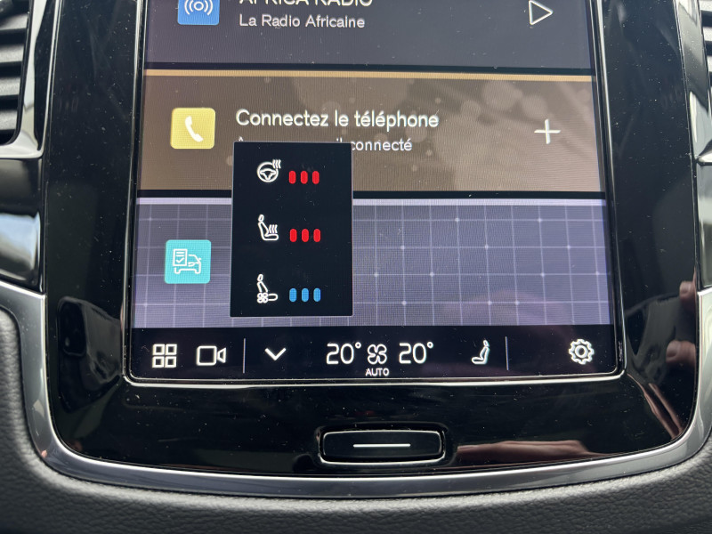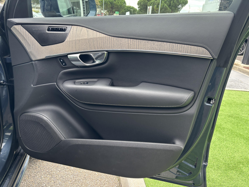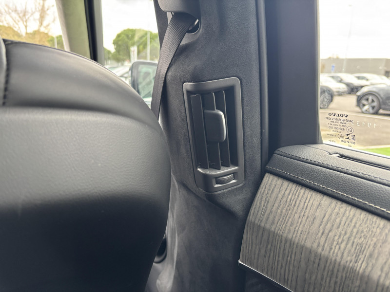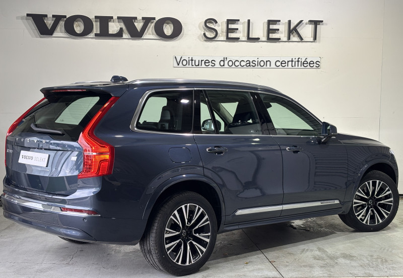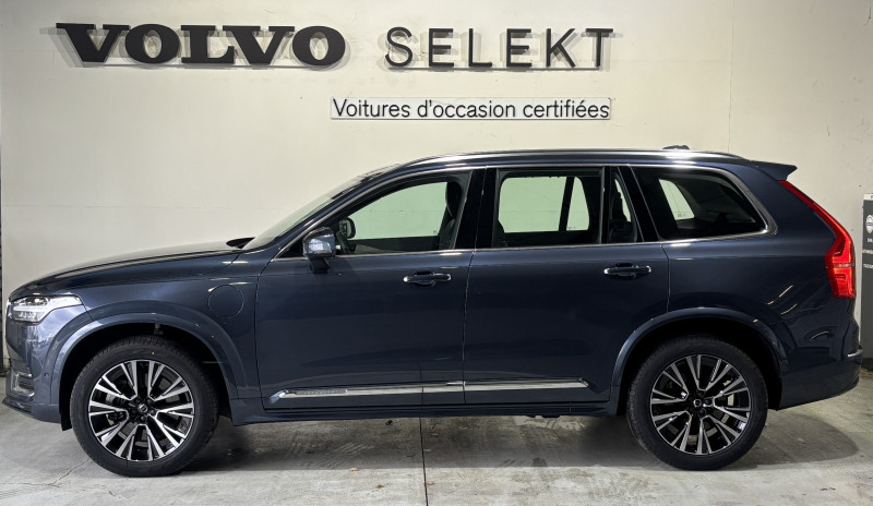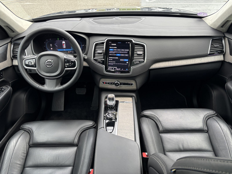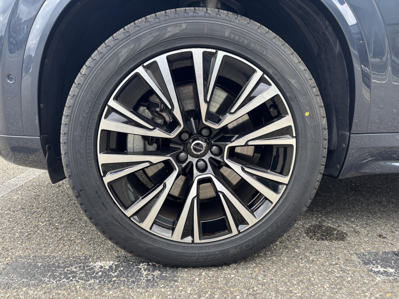 Bouton de démarrage en Aluminium cranté / Cache-bagages semi-automatique / Calandre couleur aluminium avec inserts chromés / City Safety, système d'anticipation de collision intelligent comprenant : Détection des véhicules, cyclistes, piétons et grands animaux avec freinage automatique à pleine puissance, détection des véhicules aux intersections avec freinage automatique à pleine puissance, avertissement visuel et sonore paramétrable et préparation des freins / CleanZone : filtre à charbon de climatisation multi-actif et fonction pré-ventilation / Climatisation indépendante pour la 3e rangée de sièges avec aérations individuelles / Commande vocale avancée (climatisation, médias, téléphone, eManuel utilisateur et navigation) / Câble de recharge de 4,5 mètres avec LED d'indication de charge / Déclenchement automatique des feux de detresse lors d'un freinage d'urgence / Envoi automatique d'une alerte au service d'urgence Volvo en cas de collision / Frein de parking électronique automatique en fonction Auto Hold désactivable / Freinage automatique post-collision (réduction du risque de suraccident) / Insert couleur aluminium sur le bouclier AR / Jantes alliage 20" 5 branches Noir / Diamant dimensions 275/45 R20 Avec élargisseur de passage de roue / Pack Eclairage / Pack Visibilté / Pavillon de toit et montants A, B et C en nubuck, pare-soleils et poignées de maintien gainés Cuir / Phares directionnels actifs full LED avec correcteur dynamique de la portée incluant feux de jour à LED, lave-phares à haute pression escamotables et feux de route actifs / Planche de bord et partie supérieure des contre-portes gainées de simili-cuir / Pré-câblage électrique pour le crochet d'attelage / Radars de stationnement AV et AR avec signal sonore et visuel / Seuil de coffre en Aluminium / Seuils de portes AV et AR en Aluminium et badgés Recharge à l'AV / Sièges conducteur à réglages électriques avec mémoires + Rétroviseurs extérieurs avec inclinaison automatique pour marche AR / Toit ouvrant panoramique en deux parties avec pare-soleil électrique / Verrouillage automatique des portes à partir de 7 km/h / Verrouillage de sécurité enfant automatique commandé depuis le siège conducteur (condamne aussi les fenêtres AR) / Volant 3 branches gainé de Cuir avec insert en Aluminium / 2 espaces de rangement avec volet coulissant entre les sièges AV, incluant 2 porte-gobelets / 2 prises USB type-C / 2ème rangée composée de 3 sièges individuels : Dossiers rabattable 40/20/40 avec plancher plat et dossiers inclinables individuellement selon 6 positions / 3ème rangée composée de 2 sièges individuels escamotables dans le coffre / 4 points d'ancrage dans les panneaux latéraux du compartiment à bagages / 4 porte-cintres / Accoudoir central AR rabattable comprenant 2 porte-gobelets / Accoudoirs latéraux avec espace de rangement et porte-gobelet pour les sièges de la 3ème rangée / Accès au service d'assistance Volvo via bouton dédié dans le plafonnier / Accès au service d'urgence Volvo via bouton SOS dans le plafonnier / Affichage tête haute couleur personnalisable / Airbag passager désactivable avec témoin d'indication / Airbags conducteur et passager à déclenchement différencié / Alerte Distraction Trafic (Ready to drive notification) / Alerte vigilance conducteur / Application Volvo Cars sur smartphone iOS ou Android / Appuis-tête 2ème rangée rabattables électriquement / Appuis-tête sur chaque siège, dont 1 réglables en hauteur (AR central) / Assise des sièges AV extensible (électriquement si le siège dispose des réglages électriques) / Badge spécifique Recharge sur le hayon / Bas de caisse, passage de roue et partie basse des pare-chocs AV et AR couleur carrosserie / Bouton de verrouillage centralisé pour le conducteur et la passager avec diode de contrôle / Buses de lave-glace / Ceintures de sécuritéà inertie à 3 points d'ancrage (sur les 7 sièges) / Chauffage additionnel programmable (moteur et habitacle) / Combiné d'instruments digital 12,3" personnalisable / Connexion Bluetooth pour téléphone portable / Contour des vitres latérales chromé / Contrôle de la transmission en descente HDC / Coques de rétroviseurs couleur carrosserie / Coussin réhausseur intégré ajustable sur le siège central de la 2ème rangée / Direction assistée électrique asservie à la vitesse / Eclairage aux pieds à l'AV / Eclairage d'accompagnement et éclairage d'approche / Eclairage dans la boîte à gants / Eclairage dans le coffre / Eclairage intérieur à extinction temporisée / Ecran tactile multimédia haute résolution 9", nouvelle géneration / Emblème Volvo chauffant sur calandre AV / Espace de rangement dans les 4 portes, pouvant accueillir 1 bouteille de 1,5 l dans les portes AV / Espace de rangement verrouillable sous le plancher du compartiment à bagages lorsque le coffre est verrouillé / Feux de route adaptatifs / Filet de protection coffre/habitacle / Fonction easy entry facilitant l'accès à la 3ème rangée / Fonction Stop&Start : coupe et redémarre le moteur lorsque la voiture est à l'arrêt (déconnectable) / Frein à disques 19" ventlés à l'AV et 18" à l'AR / Hayon électrique avec fonction Confort / Incrustations chromées autour des ouies d'aération / Indicateur de perte de pression des pneus avec localisation / Infotainment Google Android Services Google (comprend Google Maps, Google Assistant, Google Play Store, chargeur smartphone par induction et un volume de données illimité pour les 4 premières années) et Kit mains libres Bluetooth et Streaming Audio, mode d'emploi numérique du véhicule, réception de la radio numérique (DAB+), mises à jour Over the Air (OTA). / Insert chromé sur les bas de caisse latéraux / Inserts chromés sur le bouclier AV / IntelliSafe Assist : régulateur adaptatif de vitesse et de distance ACC, Assistance à la conduite intelligente, Système d'assistance à l