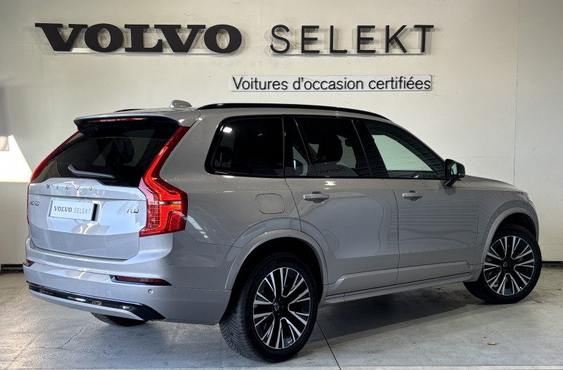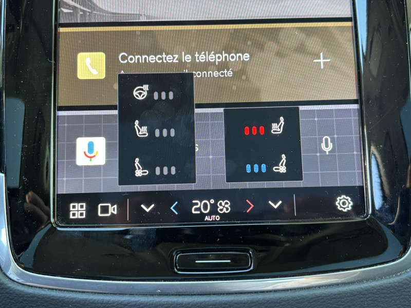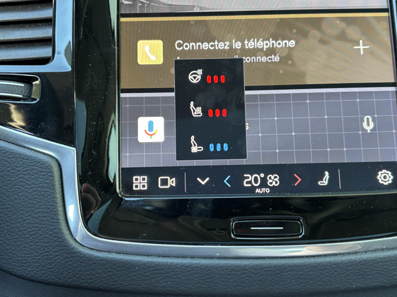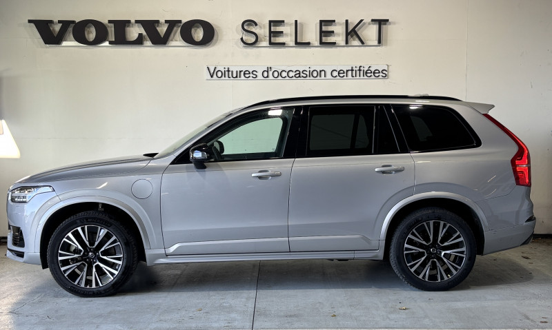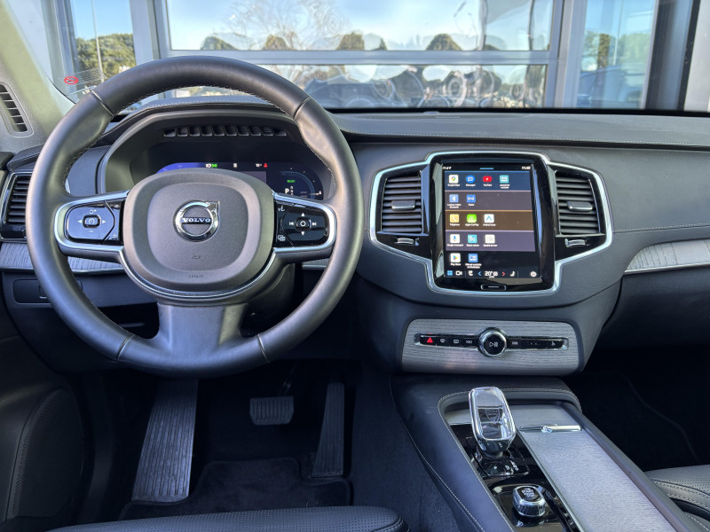 Bouton de démarrage en Aluminium cranté / Cache-bagages semi-automatique / Caméras Surround View (vision panoramique à 360°) incluant caméra AV et caméra de recul / Commande vocale avancée (climatisation, médias, téléphone, eManuel utilisateur et navigation) / Déclenchement automatique des feux de detresse lors d'un freinage d'urgence / Envoi automatique d'une alerte au service d'urgence Volvo en cas de collision / Frein de parking électronique automatique en fonction Auto Hold désactivable / Freinage automatique post-collision (réduction du risque de suraccident) / Jantes alliage 21'' 5 branches multiples Noir / Diamant / Phares AV Matrix LED avec design du marteau de Thor -Technologie d'éclairage Matrix avec 15 segments - Identification des usagers de la route venant en sens inverse et ajustement automatique de la projection lumineuse pour éviter l'éblouissement - Permutation automatique des feux de route - Séquence lumineuse d'accueil lors de l'approche du véhicule / Pré-câblage électrique pour le crochet d'attelage / Radars de stationnement AV et AR avec signal sonore et visuel / Seuil de coffre en Aluminium / Seuils de portes AV en aluminium badgés Volvo / Système d'aide à la vigilance comprenant : Surveillance anti-angle mort, Assistance au changement de file, Alerte trafic en marche AR, Alerte collision AR avec freinage automatique / Toit ouvrant panoramique en deux parties avec pare-soleil électrique / Télécommande de verrouillage centralisé avec clé de contact intégrée, fermeture à distance des vitres et du toit ouvrant et fonction panique (déclenchement du klaxon et des feux de détresse) / Verrouillage automatique des portes en roulant / Verrouillage de sécurité enfant automatique commandé depuis le siège conducteur (condamne aussi les fenêtres AR) / Volant 3 branches gainé de Simili-Cuir avec insert Aluminium / 2ème rangée composée de 3 sièges individuels : Dossiers rabattables 40/20/40 avec plancher plat, Dossiers inclinables individuellement, Sièges coulissant individuellement / 3ème rangée composée de 2 sièges individuels escamotables dans le coffre / 4 points d'ancrage dans les panneaux latéraux du coffre / 4 prises USB type-C / 5 modes de conduite disponibles : Hybrid, Power, Pure, Off road, AWD / Accoudoir central AR rabattable comprenant 2 porte-gobelets / Accoudoirs latéraux avec espace de rangement et porte-gobelet pour les sièges de la 3ème rangée / Accès au service d'assistance Volvo via bouton dédié dans le plafonnier / Accès au service d'urgence Volvo via bouton SOS dans le plafonnier / Airbag passager désactivable avec témoin d'indication (on/off) / Alarme Volvo Guard avec capteur de mouvements et d'inclinaison / Alerte Distraction Trafic (Ready to drive notification) (ADAS) Informe le conducteur lorsque le système remarque qu'il est nécessaire de porter plus d'attention sur le trafic et/ou qu'il faut mettre ses mains sur le volant / Alerte vigilance conducteur / Amortissement piloté avec la technologie FSD (ou Frequency Selective Damping) / Application Volvo Cars sur smartphone iOS ou Android / Appuis-tête 2ème rangée rabattables électriquement / Assise des sièges AV extensible (électriquement si le siège dispose des réglages électriques) / Barres de toit longitudinales intégrées / Bas de caisse, passage de roue et partie basse des pare-chocs AV et AR couleur carrosserie / Bouton de verrouillage centralisé pour le conducteur et la passager avec diode de contrôle / Buses de lave-glace / Calandre style Dark avec inserts noir laqué / Ceintures de sécuritéà inertie à 3 points d'ancrage (sur les 7 sièges) / Combiné d'instruments digital derrière le volant 12,3" / Configuration 7 places / Contour des vitres latérales Noir Laqué / Contrôle de la transmission en descente HDC / Coques de rétroviseurs Noir Laqué / Coussin réhausseur intégré ajustable sur le siège central de la 2ème rangée / Câble de recharge Type 2 mode 2 monophasé 8 A / Direction assistée électrique asservie à la vitesse / Espace de rangement dans les 4 portes, pouvant accueillir 1 bouteille de 1,5 l dans les portes AV / Espace de rangement sous le plancher du coffre / Filet de sécurité entre les sièges AR et le coffre / Fonction Stop & Start : coupe et redémarre le moteur lorsque la voiture est à l'arrêt / Frein à disques 19" ventlés à l'AV et 18" à l'AR / Grand écran central flottant 11,2'' / Hayon électrique avec fonction Confort (mains libres) / Incrustations chromées autour des ouies d'aération / Incrustations Frêne Brun / Indicateur de perte de pression des pneus TPMS / Infotainment Google Android avec service Automotive et Google Maps Comprend Google Maps, Google Assistant, Google Play Store et un volume de données illimité pour les 4 premières années, kit mains libres Bluetooth et Streaming Audio, mode d'emploi numérique du véhicule, réception de la radio numérique (DAB+) / Kit anti-crevaison / Lave-phares à haute pression escamotables / Miroirs de courtoisie des pare-soleil éclairés, éclairage aux pieds à l'AV, dans la boîte à gants et le coffre / Mise à jour du système à distance (Over The Air ou OTA) / Ouverture des portes sans clé Keyless Entry incluant éclairage du sol dans les poignées de porte AV / Pare-brise en verre feuilleté et colonne de direction rétractable en cas de choc / Pare-chocs avec inserts noir laqué / Parties inférieures des portes couleur carrosserie / Pilot Assist, système d'assistance intelligent au conducteur comprenant : Régulateur adaptatif de vitesse et de distance ACC, - Assistance à la conduite intelligente (le véhicule lit le marquage au sol et agit sur la direction afin de se maintenir au centre de sa voie et adapte la vitesse en virage, le conducteur doit garder les mains sur le volant, fonctionne jusqu'à 130 km/h), Système d'assistance à l'arrêt d'urgence / Pommeau de levier de vitesses exclusif en cristal d'Orrefo