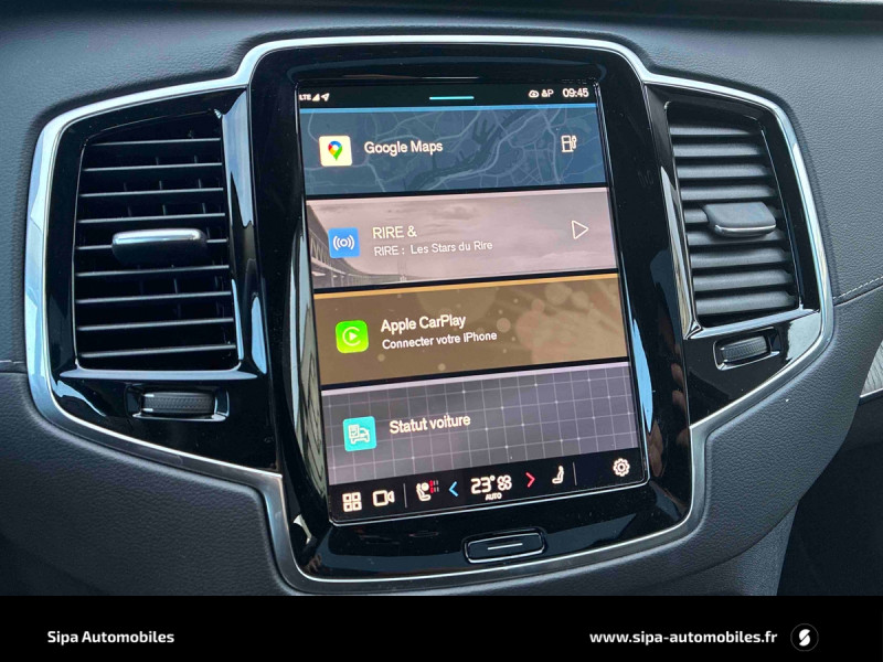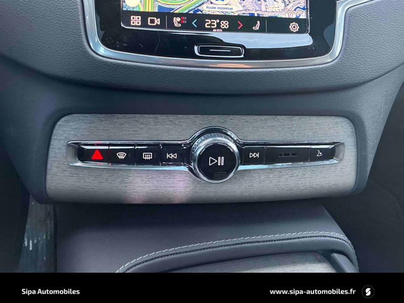 Bouton de démarrage en Aluminium cranté / Cache-bagages semi-automatique / Caméras Surround View (vision panoramique à 360°) incluant caméra AV et caméra de recul / Commande vocale avancée (climatisation, médias, téléphone, eManuel utilisateur et navigation) / Déclenchement automatique des feux de detresse lors d'un freinage d'urgence / Envoi automatique d'une alerte au service d'urgence Volvo en cas de collision / Frein de parking électronique automatique en fonction Auto Hold désactivable / Freinage automatique post-collision (réduction du risque de suraccident) / Jantes alliage 21'' 5 branches multiples Noir / Diamant / Pack Hiver Sièges AR chauffants (trois niveaux d'intensité), volant chauffant / Pack éclairage Eclairage d'ambiance AV et AR, éclairage dans les rangements du tunnel central et du sol dans les portières AV / Phares AV Matrix LED avec design du marteau de Thor -Technologie d'éclairage Matrix avec 15 segments - Identification des usagers de la route venant en sens inverse et ajustement automatique de la projection lumineuse pour éviter l'éblouissement - Permutation automatique des feux de route - Séquence lumineuse d'accueil lors de l'approche du véhicule / Pré-câblage électrique pour le crochet d'attelage / Radars de stationnement AV et AR avec signal sonore et visuel / Seuil de coffre en Aluminium / Seuil de portes AV en aluminium badgés Volvo / Système d'aide à la vigilance comprenant : Surveillance anti-angle mort, Assistance au changement de file, Alerte trafic en marche AR, Alerte collision AR avec freinage automatique / Toit ouvrant panoramique en deux parties avec pare-soleil électrique / Télécommande de verrouillage centralisé avec clé de contact intégrée, fermeture à distance des vitres et du toit ouvrant et fonction panique (déclenchement du klaxon et des feux de détresse) / Verrouillage automatique des portes en roulant / Verrouillage de sécurité enfant automatique commandé depuis le siège conducteur (condamne aussi les fenêtres AR) / Volant 3 branches gainé de Simili-Cuir avec insert Aluminium / 3ème rangée composée de 2 sièges individuels escamotables dans le coffre / 4 points d'ancrage dans les panneaux latéraux du coffre / 4 prises USB type-C / 5 modes de conduite disponibles : Hybrid, Power, Pure, Off road, AWD / Accoudoir central AR rabattable comprenant 2 porte-gobelets / Accoudoirs latéraux avec espace de rangement et porte-gobelet pour les sièges de la 3ème rangée / Accès au service d'assistance Volvo via bouton dédié dans le plafonnier / Accès au service d'urgence Volvo via bouton SOS dans le plafonnier / Airbag passager désactivable avec témoin d'indication (on/off) / Alarme Volvo Guard avec capteur de mouvements et d'inclinaison / Alerte Distraction Trafic (Ready to drive notification) (ADAS) Informe le conducteur lorsque le système remarque qu'il est nécessaire de porter plus d'attention sur le trafic et/ou qu'il faut mettre ses mains sur le volant / Alerte vigilance conducteur / Amortissement piloté avec la technologie FSD (ou Frequency Selective Damping) / Application Volvo Cars sur smartphone iOS ou Android / Appuis-tête 2ème rangée rabattables électriquement / Assise des sièges AV extensible (électriquement si le siège dispose des réglages électriques) / Barres de toit longitudinales intégrées / Bas de caisse, passage de roue et partie basse des pare-chocs AV et AR couleur carrosserie / Bouton de verrouillage centralisé pour le conducteur et la passager avec diode de contrôle / Buses de lave-glace / Calandre style chrome avec inserts chromés / Ceintures de sécuritéà inertie à 3 points d'ancrage (sur les 7 sièges) / Combiné d'instruments digital derrière le volant 12,3" / Configuration 7 places / Contour des vitres latérales chromé / Contrôle de la transmission en descente HDC / Coques de rétroviseurs couleur carrosserie / Coussin réhausseur intégré ajustable sur le siège central de la 2ème rangée / Câble de recharge Type 2 mode 2 monophasé 8A / Deuxième rangée composée de trois sièges individuels : Dossiers rabattables 40/20/40 avec plancher plat, Dossiers inclinables individuellement, Sièges coulissant individuellement / Direction assistée électrique asservie à la vitesse / Espace de rangement dans les 4 portes, pouvant accueillir 1 bouteille de 1,5 l dans les portes AV / Espace de rangement sous le plancher du coffre / Filet de sécurité entre les sièges AR et le coffre / Fonction Stop & Start : coupe et redémarre le moteur lorsque la voiture est à l'arrêt / Frein à disques 19" ventlés à l'AV et 18" à l'AR / Grand écran central flottant 11,2'' / Hayon électrique avec fonction Confort (mains libres) / Incrustations chromées autour des ouies d'aération / Incrustations Frêne Brun / Indicateur de perte de pression des pneus TPMS / Infotainment Google Android avec service Automotive et Google Maps Comprend Google Maps, Google Assistant, Google Play Store et un volume de données illimité pour les 4 premières années, kit mains libres Bluetooth et Streaming Audio, mode d'emploi numérique du véhicule, réception de la radio numérique (DAB+) / Kit anti-crevaison / Lave-phares à haute pression escamotables / Miroirs de courtoisie des pare-soleil éclairés, éclairage aux pieds à l'AV, dans la boîte à gants et le coffre / Mise à jour du système à distance (Over The Air ou OTA) / Ouverture des portes sans clé Keyless Entry incluant éclairage du sol dans les poignées de porte AV / Pare-brise en verre feuilleté et colonne de direction rétractable en cas de choc / Pare-chocs et partie inférieure des portes avec inserts chromés / Pilot Assist, système d'assistance intelligent au conducteur comprenant : Régulateur adaptatif de vitesse et de distance ACC, - Assistance à la conduite intelligente (le véhicule lit le marquage au sol et agit sur la direction afin de se maintenir au centre de sa voie et adapte la vitesse
