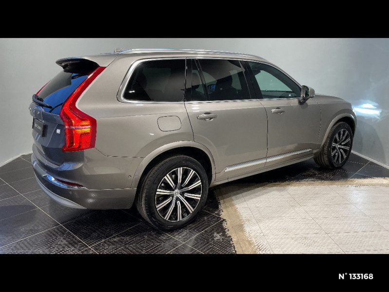 Rails de toit couleur Noir Laqué / Rappel d'oubli de bouclage de ceinture de sécurité AV et AR / Réglage électrique des supports lombaires (4 positions) / Seuils de portes rétroéclairés / Siège de la 2ème rangée coulissant individuellement sur 120 mm / Siège passager à réglages électriques / Siège passager avec fonction mémoire / Sièges AV chauffants (3 niveaux d'intensité) / Sièges conducteur à réglages électriques avec mémoires + Rétroviseurs extérieurs avec inclinaison automatique pour marche AR / Sonde de température extérieure et horloge / Spots de lecture AV et AR / Structure de l'habitacle renforcéà l'acier de Bore / Supports lombaires des sièges AV réglables électriquement / Système anti-sous-marinage sur chaque siège / Système audio Volvo High Performance, 220 W, 10 HP, radio RDS et 2 USB / Système audio Volvo High Performance, 330 W, 10 HP, radio RDS et USB / Système de contrôle de la stabilité et de la traction STC / Système de contrôle du freinage du véhicule VDC / Système de fixation de bagages multifonction (patères + sangle élastique + volet rabattable) / Système de protection anti-sortie de route / Système de protection collision frontale : Détection du risque de collision frontale (de 65 à 140 km/h) avec action corrective sur la direction / Système de protection en cas de sortie de route / Système de réglage en hauteur des phares / Système intelligent d'information au conducteur IDIS / Tapis de sol INSCRIPTION / Tapis de sol pour la troisième rangée / Tapis de sol textile AV/AR / Télécommande de verrouillage centralisé avec clé de contact intégrée / Trappe de carburant intelligente sans bouchon / Trousse de 1er secours, triangle de présignalisation / Utilisation de matériaux recyclables à 85 % / Verrouillage automatique des portes à partir de 7 km/h / Verrouillage de sécurité enfant manuel / Vitres AV et AR électriques à impulsion (montée et descente) avec système anti-pincement / Volant chauffant / Volant 3 branches gainé de Cuir avec insert en Aluminium / Volvo On Call / 2 espaces de rangement avec volet coulissant entre les sièges AV, incluant 2 porte-gobelets / 2 porte-tickets de parking et d'autoroute / 2ème rangée composée de 3 sièges individuels : Dossiers rabattable 40/20/40 avec plancher plat et dossiers inclinables individuellement selon 6 positions / 3ème rangée composée de 2 sièges individuels escamotables dans le coffre / 4 points d'ancrage dans les panneaux latéraux du compartiment à bagages / 4 porte-cintres / CleanZone : Filtre charbon de climatisation multi-actif AQS (limite l'entrée de pollen, de particules de pollution et de mauvaises odeurs en fermant automatiquement les arrivées d'air si nécessaire) et fonction pré-ventillation / Climatisation automatique quadri-zone (incluant boîte à gants réfrigirée) / Climatisation indépendante pour la 3e rangée de sièges avec aérations individuelles / Combiné d'instruments digital 12,3" personnalisable / Combiné d'instruments digital 8" / Accoudoir central AR rabattable comprenant 2 porte-gobelets / Commande vocale avancée (climatisation, médias, téléphone, eManuel utilisateur et navigation) / Connexion Bluetooth pour téléphone portable / Contour des vitres latérales chromé / Contrôle de la transmission en descente HDC / Déclenchement automatique des feux de detresse lors d'un freinage d'urgence / Direction assistée électrique asservie à la vitesse / Eclairage aux pieds à l'AV / Eclairage d'accompagnement et éclairage d'approche / Fonction Eco : optimisation des paramètres véhicule pour une conduite économique et écologique (à la demande) / Fonction Stop&Start : coupe et redémarre le moteur lorsque la voiture est à l'arrêt (déconnectable) / Frein à disques 19" ventlés à l'AV et 18" à l'AR / Frein de parking électronique automatique en fonction Auto Hold désactivable / Freinage automatique post-collision (réduction du risque de suraccident) / Hayon électrique avec fonction Confort / Incrustations Aluminium Maillé / Incrustations chromées autour des ouies d'aération / Incrustations Frêne Anthracite / Incrustations Frêne Gris / Indicateur de perte de pression des pneus avec localisation / Insert chromé sur le bouclier AV / Insert chromé sur les bas de caisse latéraux / Insert couleur aluminium sur le bouclier AR / Inserts chromés sur les poignées de portes / IntelliSafe Assist : régulateur adaptatif de vitesse et de distance ACC, Assistance à la conduite intelligente, Alerte distance de sécurité / IntelliSafe Surround : Surveillance anti-angle mort BLIS avec Assistance au Changement de File LCMA et Alerte Trafic en Marche AR et alerte collision AR / Jantes alliage 19" 6 branches Argent Brillant 235/55 R19 / Jantes alliage 20" 10 branches Noir / Diamant 275/45 R20 / Kit anti-crevaison / Matériaux anti-allergènes dans l'habitacle (sellerie, ceintures de sécurité, incrustations) / Mode de conduite personnalisable / Ouverture des portes sans clé Keyless Entry incluant éclairage du sol dans les poignées de porte AV et Keyless mini-télécommande / Pack Eclairage / Pack Eclairage / Pack Visibilté / Pare-brise en verre feuilleté et colonne de direction rétractable en cas de choc / Peinture extérieure à base d'eau (réduction de solvants polluants) / Phares directionnels actifs full LED avec correcteur dynamique de la portée incluant feux de jour à LED, lave-phares à haute pression escamotables et feux de route actifs / Planche de bord et partie supérieure des contre-portes gainées de simili-cuir / Pommeau de levier de vitesses exclusif en cristal d'Orrefors / Port de recharge sur l'aile AV gauche / Pré-câblage électrique pour le crochet d'attelage / Prise 12 V à l'AV et à l'AR / Prise 12 V dans le coffre / Radars de stationnement AV et AR avec signal sonore et visuel / Accoudoirs latéraux avec espace de rangement et porte-gobelet pour les sièges de la 3ème 