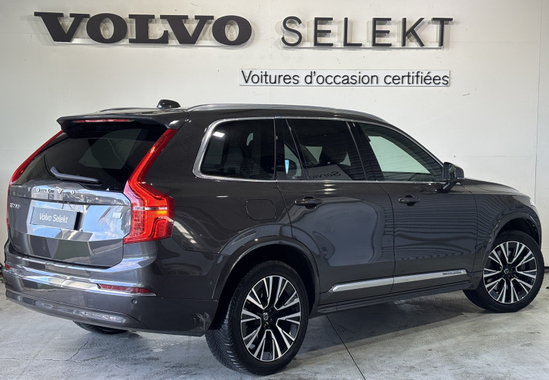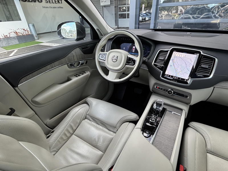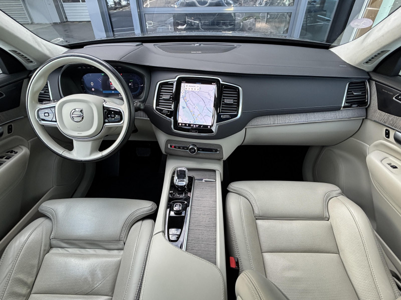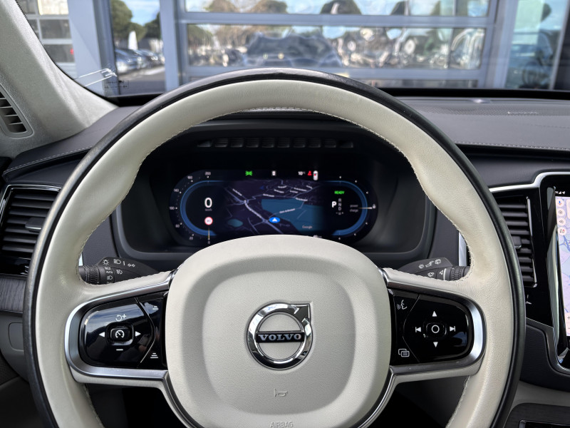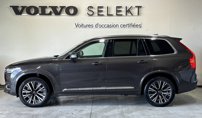 Bouton de démarrage en Aluminium cranté / Cache-bagages semi-automatique / Calandre couleur aluminium avec inserts chromés, insert chromé sur les bas de caisse latéraux et insert couleur aluminium sur le bouclier AR / City Safety, système d'anticipation de collision intelligent comprenant : Détection des véhicules, cyclistes, piétons et grands animaux avec freinage automatique à pleine puissance, détection des véhicules aux intersections avec freinage automatique à pleine puissance, avertissement visuel et sonore paramétrable et préparation des freins / Climatisation automatique bi-zone et aérations individuelles à l'AR. Inclus un système de recirculation de l'air, un filtre à pollen et la fonction de climatisation de l'habitacle moteur coupé / Climatisation indépendante pour la 3ème rangée de sièges avec aérations individuelles / Commande vocale avancée (climatisation, médias, téléphone, eManuel utilisateur et navigation) / Câble de recharge de 4,5 mètres avec LED d'indication de charge / Déclenchement automatique des feux de detresse lors d'un freinage d'urgence / Envoi automatique d'une alerte au service d'urgence Volvo en cas de collision / Frein de parking électronique automatique en fonction Auto Hold désactivable / Freinage automatique post-collision (réduction du risque de suraccident) / Insert couleur aluminium sur le bouclier AR / IntelliSafe Surround système d?aide à la vigilance : Surveillance anti-angle mort, Assistance au changement de file, Alerte trafic en marche AR, Alerte collision AR avec action corrective sur la direction / Jantes alliage 20" 5 branches Noir / Diamant dimensions 275/45 R20 Avec élargisseur de passage de roue / Pavillon de toit et montants A, B et C en nubuck, pare-soleils et poignées de maintien gainés Cuir / Phares directionnels Full LED avec correcteur dynamique de la portée, lave-phares à haute pression escamotables, feux de route actifs et feux de jour / Planche de bord et partie supérieure des contre-portes gainées de simili-cuir / Pré-câblage électrique pour le crochet d'attelage / Radars de stationnement AV et AR avec signal sonore et visuel / Sellerie Cuir Nappa avec Sièges confort AV perforé et ventilé avec maintien latéral du dossier réglable électriquement / Seuil de coffre en Aluminium / Seuils de portes AV et AR en Aluminium et badgés Recharge à l'AV / Sièges conducteur à réglages électriques avec mémoires + Rétroviseurs extérieurs avec inclinaison automatique pour marche AR / Système de pré-conditionnement de l'habitacle (chauffage et climatisation) / Toit ouvrant panoramique en deux parties avec pare-soleil électrique / Télécommande de verrouillage centralisé avec clé de contact intégrée, fermeture à distance des vitres et du toit ouvrant et fonction panique (déclenchement du klaxon et des feux de détresse) / Verrouillage automatique des portes à partir de 7 km/h / Verrouillage de sécurité enfant automatique commandé depuis le siège conducteur (condamne aussi les fenêtres AR) / Volant 3 branches gainé de Simili-Cuir avec insert Aluminium / 2 espaces de rangement avec volet coulissant entre les sièges AV, incluant 2 porte-gobelets / 2 prises USB type-C / 2ème rangée composée de 3 sièges individuels : Dossiers rabattable 40/20/40 avec plancher plat et dossiers inclinables individuellement selon 6 positions / 3ème rangée composée de 2 sièges individuels escamotables dans le coffre / 4 points d'ancrage dans les panneaux latéraux du compartiment à bagages / 4 porte-cintres / Accoudoir central AR rabattable comprenant 2 porte-gobelets / Accoudoirs latéraux avec espace de rangement et porte-gobelet pour les sièges de la 3ème rangée / Accès au service d'assistance Volvo via bouton dédié dans le plafonnier / Accès au service d'urgence Volvo via bouton SOS dans le plafonnier / Airbag passager désactivable avec témoin d'indication (on/off) / Airbags conducteur et passager à déclenchement différencié / Alerte Distraction Trafic (Ready to drive notification) (ADAS) Informe le conducteur lorsque le système remarque qu'il est nécessaire de porter plus d'attention sur le trafic et/ou qu'il faut mettre ses mains sur le volant / Alerte vigilance conducteur / Application Volvo Cars sur smartphone iOS ou Android / Appuie-têtes 2ème rangée rabattables électriquement / Appuis-tête sur chaque siège, dont 1 réglables en hauteur (AR central) / Assise des sièges AV extensible (électriquement si le siège dispose des réglages électriques) / Badge spécifique T8 AWD sur le hayon / Bas de caisse, passage de roue et partie basse des pare-chocs AV et AR couleur carrosserie / Bouton de verrouillage centralisé pour le conducteur et la passager avec diode de contrôle / Buses de lave-glace / Ceintures de sécuritéà inertie à 3 points d'ancrage (sur les 7 sièges) / Combiné d'instruments digital 12,3" nouvelle génération / Contour des vitres latérales chromé / Contrôle de la transmission en descente HDC / Coques de rétroviseurs couleur carrosserie / Coussin réhausseur intégré ajustable sur le siège central de la 2ème rangée / Direction assistée électrique asservie à la vitesse / Eclairage aux pieds à l'AV / Eclairage d'accompagnement et éclairage d'approche / Eclairage dans la boîte à gants / Eclairage dans le coffre / Eclairage intérieur temporisée / Ecran tactile multimédia haute résolution 9", nouvelle géneration / Emblème Volvo chauffant sur calandre AV / Espace de rangement dans les 4 portes, pouvant accueillir 1 bouteille de 1,5 l dans les portes AV / Espace de rangement verrouillable sous le plancher du compartiment à bagages lorsque le coffre est verrouillé / Feux de route adaptatifs / Filet de protection coffre/habitacle / Fonction easy entry facilitant l'accès à la 3ème rangée / Fonction Stop & Start : coupe et redémarre le moteur lorsque la voiture est à l'arrêt / Frein à disques 19" ventlés à l'AV et 
