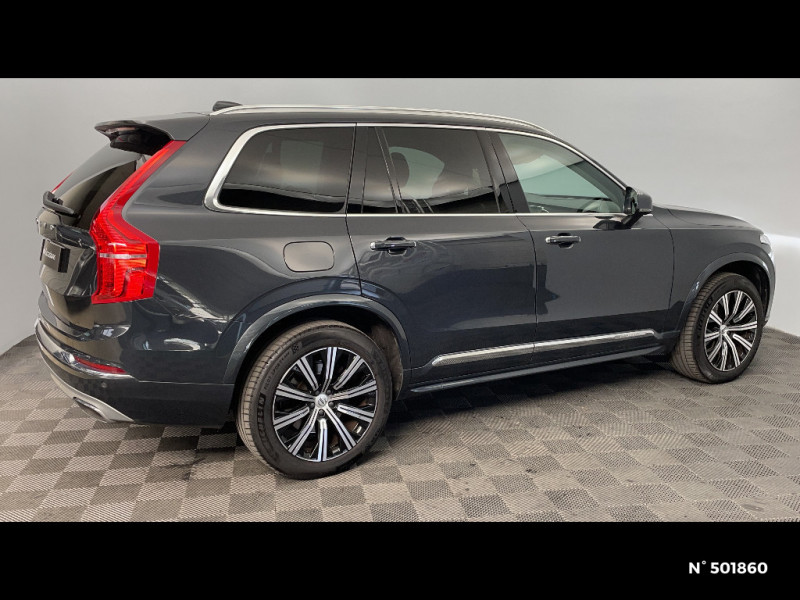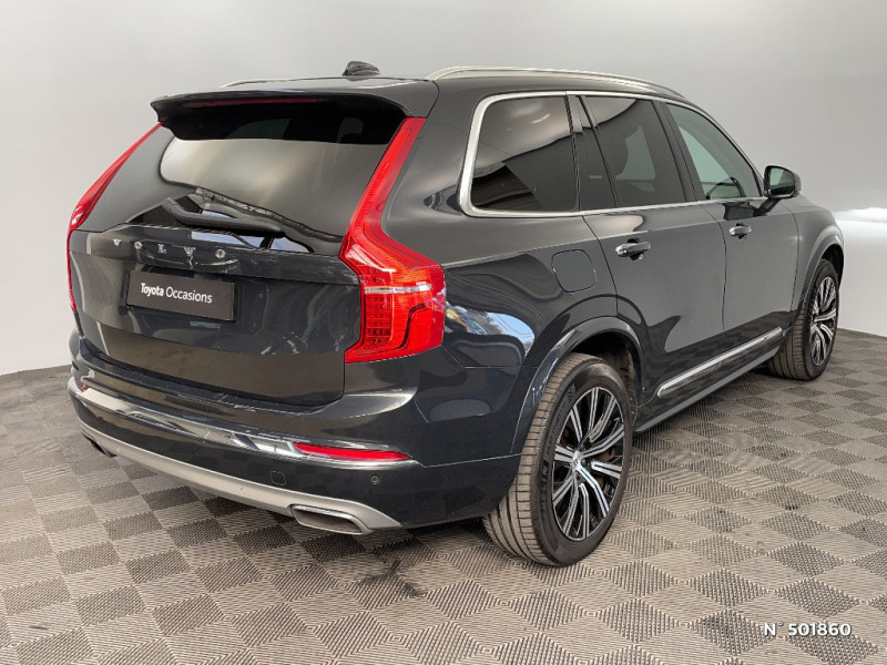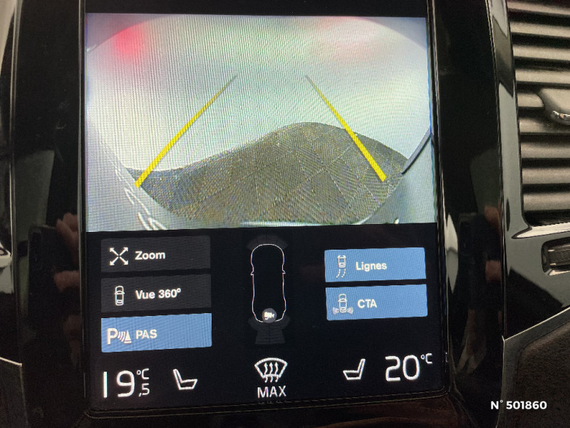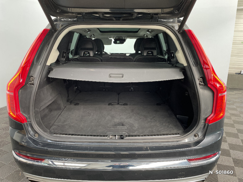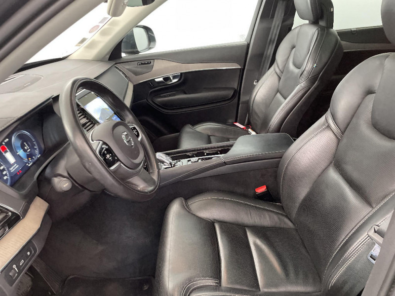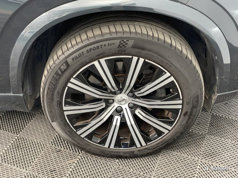Volant 3 branches gainé de Cuir avec insert en Aluminium / Caméras Surround View (vision panoramique à 360°) incluant caméra AV et caméra de recul / Climatisation indépendante pour la 3e rangée de sièges avec aérations individuelles / Combiné d'instruments digital 8" / Connexion Bluetooth pour téléphone portable / Eclairage intérieur à extinction temporisée / Ecran tactile multimédia haute résolution 9" personnalisable / Feux de Route Adaptatifs AHB / Fonction easy entry facilitant l'accès à la 3ème rangée / Frein de parking électronique automatique en fonction Auto Hold désactivable / Hayon électrique avec fonction Confort / Jantes alliage 20" 10 branches Noir / Diamant 275/45 R20 / Ouverture des portes sans clé Keyless Entry incluant éclairage du sol dans les poignées de porte AV et Keyless mini-télécommande / Radars de stationnement AV et AR avec signal sonore et visuel / Sellerie Cuir Nappa perforé et ventillé / Sensus Navigation, Affichage 3D, cartographie Europe, information trafic en temps réel, applications web dédiées, 8 ans de mises à jour cartographiques gratuites grâce au programme MapCare / Sièges AV chauffants (3 niveaux d'intensité) / Sièges conducteur à réglages électriques avec mémoires + Rétroviseurs extérieurs avec inclinaison automatique pour marche AR / Supports lombaires des sièges AV réglables électriquement / Système audio Volvo Premium Sound by Harman Kardon, Amplificateur 12 canaux de 600 W, 14 HP dont un subwoofer / Système de filtration de l¿air CleanZone Advanced avec indication de la qualité de l¿air / Système de protection collision frontale : Détection du risque de collision frontale (de 65 à 140 km/h) avec action corrective sur la direction / Vitres AV et AR électriques à impulsion (montée et descente) avec système anti-pincement