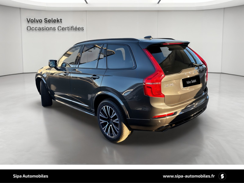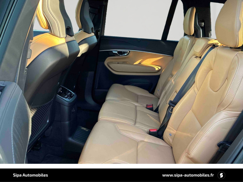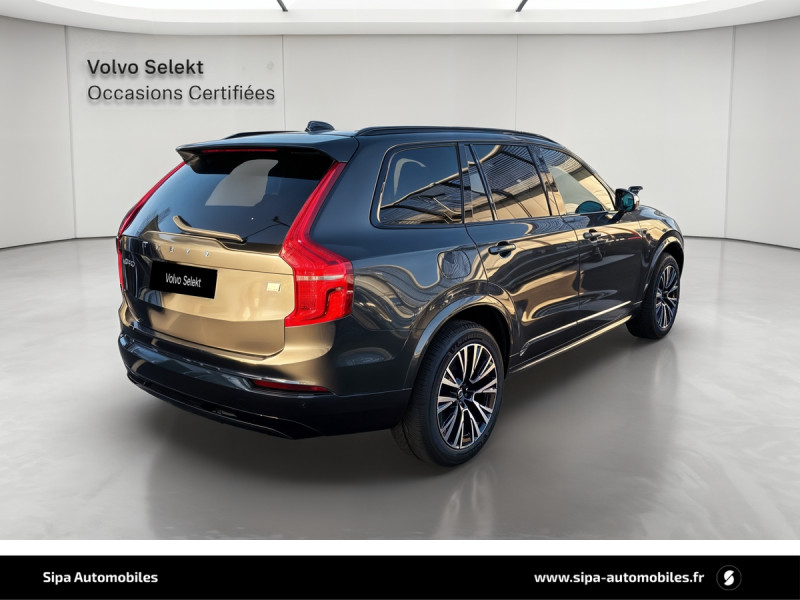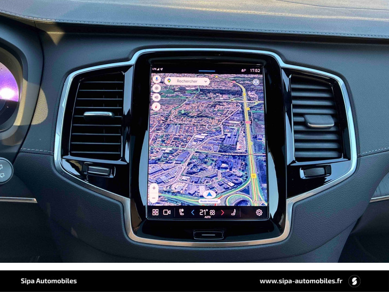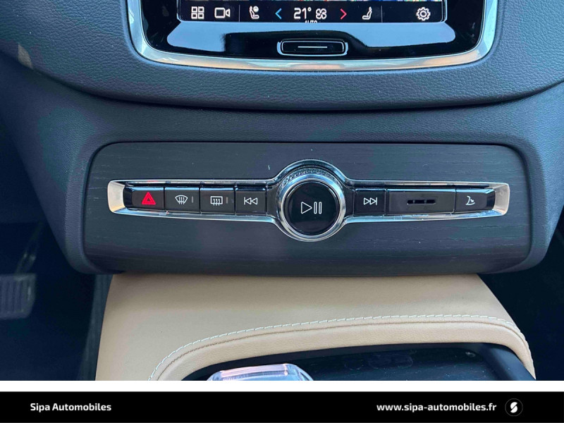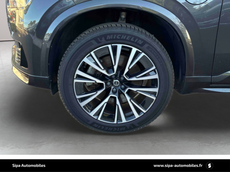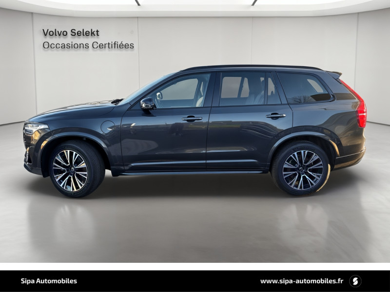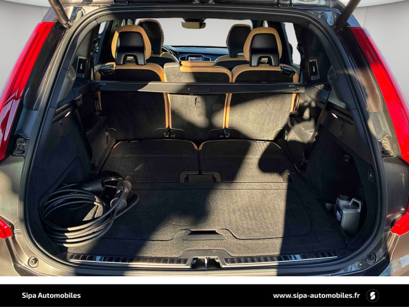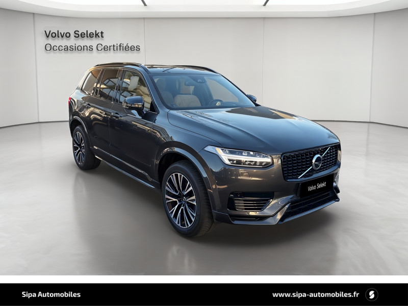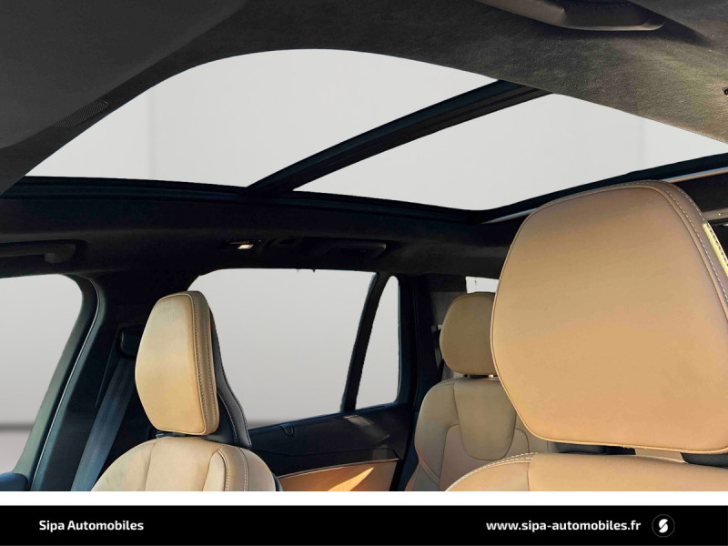 Bouton de démarrage en Aluminium cranté / Cache-bagages semi-automatique / City Safety, système d'anticipation de collision intelligent comprenant : Détection des véhicules, cyclistes, piétons et grands animaux avec freinage automatique à pleine puissance, détection des véhicules aux intersections avec freinage automatique à pleine puissance, avertissement visuel et sonore paramétrable et préparation des freins / CleanZone : filtre à charbon de climatisation multi-actif et fonction pré-ventilation / Climatisation indépendante pour la 3e rangée de sièges avec aérations individuelles / Commande vocale avancée (climatisation, médias, téléphone, eManuel utilisateur et navigation) / Câble de recharge de 4,5 mètres avec LED d'indication de charge / Déclenchement automatique des feux de detresse lors d'un freinage d'urgence / Envoi automatique d'une alerte au service d'urgence Volvo en cas de collision / Frein de parking électronique automatique en fonction Auto Hold désactivable / Freinage automatique post-collision (réduction du risque de suraccident) / Incrustations Frêne Anthracite, Frêne Gris ou Noyer Scandinave (selon la sellerie selectionnée) / Jantes alliage 20" 5 branches Noir / Diamant dimensions 275/45 R20 / Pavillon de toit et montants A, B et C en nubuck, pare-soleils et poignées de maintien gainés Cuir / Phares directionnels actifs full LED avec correcteur dynamique de la portée incluant feux de jour à LED, lave-phares à haute pression escamotables et feux de route actifs / Planche de bord et partie supérieure des contre-portes gainées de simili-cuir / Pré-câblage électrique pour le crochet d'attelage / Radars de stationnement AV et AR avec signal sonore et visuel / Sellerie Cuir Nappa avec Sièges confort AV perforé et ventilé avec maintien latéral du dossier réglable électriquement / Seuil de coffre en Aluminium / Seuils de portes AV et AR en Aluminium et badgés Recharge à l'AV / Sièges conducteur à réglages électriques avec mémoires + Rétroviseurs extérieurs avec inclinaison automatique pour marche AR / Toit ouvrant panoramique en deux parties avec pare-soleil électrique / Verrouillage automatique des portes à partir de 7 km/h / Verrouillage de sécurité enfant automatique commandé depuis le siège conducteur (condamne aussi les fenêtres AR) / Volant 3 branches gainé de Cuir avec insert en Aluminium / 2 espaces de rangement avec volet coulissant entre les sièges AV, incluant 2 porte-gobelets / 2 prises USB type-C / 2ème rangée composée de 3 sièges individuels : Dossiers rabattable 40/20/40 avec plancher plat et dossiers inclinables individuellement selon 6 positions / 3ème rangée composée de 2 sièges individuels escamotables dans le coffre / 4 points d'ancrage dans les panneaux latéraux du compartiment à bagages / 4 porte-cintres / Accoudoir central AR rabattable comprenant 2 porte-gobelets / Accoudoirs latéraux avec espace de rangement et porte-gobelet pour les sièges de la 3ème rangée / Accès au service d'assistance Volvo via bouton dédié dans le plafonnier / Accès au service d'urgence Volvo via bouton SOS dans le plafonnier / Affichage tête haute couleur personnalisable / Airbag passager désactivable avec témoin d'indication / Airbags conducteur et passager à déclenchement différencié / Alerte Distraction Trafic (Ready to drive notification) / Alerte vigilance conducteur / Application Volvo Cars / Appuie-têtes 2ème rangée rabattables électriquement / Appuis-tête sur chaque siège, dont 1 réglables en hauteur (AR central) / Assise des sièges AV extensible (électriquement si le siège dispose des réglages électriques) / Badge Recharge sur le hayon / Bas de caisse, passage de roue et partie basse des pare-chocs AV et AR couleur carrosserie / Bouclier AV et diffuseur AR spécifiques avec inserts Noir Laqué / Bouton de verrouillage centralisé pour le conducteur et la passager avec diode de contrôle / Buses de lave-glace / Calandre spécifique avec contour Noir Laqué / Ceintures de sécuritéà inertie à 3 points d'ancrage (sur les 7 sièges) / Chauffage additionnel programmable (moteur et habitacle) / Combiné d'instruments digital 12,3" personnalisable / Connexion Bluetooth pour téléphone portable / Contour des vitres latérales chromé / Contour des vitres latérales Noir Laqué / Contrôle de la transmission en descente HDC / Coques de rétroviseurs Noir Laqué / Coussin réhausseur intégré ajustable sur le siège central de la 2ème rangée / Direction assistée électrique asservie à la vitesse / Eclairage aux pieds à l'AV / Eclairage d'accompagnement et éclairage d'approche / Eclairage dans la boîte à gants / Eclairage dans le coffre / Eclairage intérieur à extinction temporisée / Ecran tactile multimédia haute résolution 9" personnalisable / Emblème Volvo chauffant sur calandre AV / Espace de rangement dans les 4 portes, pouvant accueillir 1 bouteille de 1,5 l dans les portes AV / Espace de rangement verrouillable sous le plancher du compartiment à bagages lorsque le coffre est verrouillé / Feux de route adaptatifs / Filet de protection coffre/habitacle / Fonction easy entry facilitant l'accès à la 3ème rangée / Fonction Stop&Start : coupe et redémarre le moteur lorsque la voiture est à l'arrêt (déconnectable) / Frein à disques 19" ventlés à l'AV et 18" à l'AR / Hayon électrique avec fonction Confort / Incrustations chromées autour des ouies d'aération / Indicateur de perte de pression des pneus avec localisation / Infotainment Google Android Services Google (comprend Google Maps, Google Assistant, Google Play Store, chargeur smartphone par induction et un volume de données illimité pour les 4 premières années) et Kit mains libres Bluetooth et Streaming Audio, mode d?emploi numérique du véhicule, réception de la radio numérique (DAB+), mises à jour Over the Air (OTA). / Inserts chromés sur le bouclier AV / IntelliSafe Assist : rég