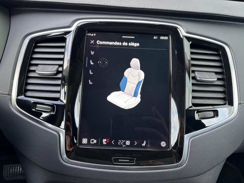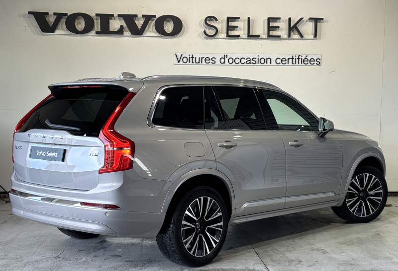 Bouton de démarrage en Aluminium cranté / Cache-bagages semi-automatique / Commande vocale avancée (climatisation, médias, téléphone, eManuel utilisateur et navigation) / Déclenchement automatique des feux de detresse lors d'un freinage d'urgence / Envoi automatique d'une alerte au service d'urgence Volvo en cas de collision / Frein de parking électronique automatique en fonction Auto Hold désactivable / Freinage automatique post-collision (réduction du risque de suraccident) / Jantes alliage 21'' 5 branches multiples Noir / Diamant / Phares AV Matrix LED avec design du marteau de Thor -Technologie d'éclairage Matrix avec 15 segments - Identification des usagers de la route venant en sens inverse et ajustement automatique de la projection lumineuse pour éviter l'éblouissement - Permutation automatique des feux de route - Séquence lumineuse d'accueil lors de l'approche du véhicule / Pré-câblage électrique pour le crochet d'attelage / Radars de stationnement AV et AR avec signal sonore et visuel / Seuil de coffre en Aluminium / Seuils de portes AV en aluminium badgés Volvo / Système d'aide à la vigilance comprenant : Surveillance anti-angle mort, Assistance au changement de file, Alerte trafic en marche AR, Alerte collision AR avec freinage automatique / Toit ouvrant panoramique en deux parties avec pare-soleil électrique / Télécommande de verrouillage centralisé avec clé de contact intégrée, fermeture à distance des vitres et du toit ouvrant et fonction panique (déclenchement du klaxon et des feux de détresse) / Verrouillage automatique des portes en roulant / Verrouillage de sécurité enfant automatique commandé depuis le siège conducteur (condamne aussi les fenêtres AR) / Volant 3 branches gainé de Simili-Cuir avec insert Aluminium / 2ème rangée composée de 3 sièges individuels : Dossiers rabattables 40/20/40 avec plancher plat, Dossiers inclinables individuellement, Sièges coulissant individuellement / 3ème rangée composée de 2 sièges individuels escamotables dans le coffre / 4 points d'ancrage dans les panneaux latéraux du coffre / 4 prises USB type-C / 5 modes de conduite disponibles : Hybrid, Power, Pure, Off road, AWD / Accoudoir central AR rabattable comprenant 2 porte-gobelets / Accoudoirs latéraux avec espace de rangement et porte-gobelet pour les sièges de la 3ème rangée / Accès au service d'assistance Volvo via bouton dédié dans le plafonnier / Accès au service d'urgence Volvo via bouton SOS dans le plafonnier / Airbag passager désactivable avec témoin d'indication (on/off) / Alarme Volvo Guard avec capteur de mouvements et d'inclinaison / Alerte Distraction Trafic (Ready to drive notification) (ADAS) Informe le conducteur lorsque le système remarque qu'il est nécessaire de porter plus d'attention sur le trafic et/ou qu'il faut mettre ses mains sur le volant / Alerte vigilance conducteur / Amortissement piloté avec la technologie FSD (ou Frequency Selective Damping) / Application Volvo Cars sur smartphone iOS ou Android / Appuie-têtes 2ème rangée rabattables électriquement / Assise des sièges AV extensible (électriquement si le siège dispose des réglages électriques) / Barres de toit longitudinales intégrées / Bas de caisse, passage de roue et partie basse des pare-chocs AV et AR couleur carrosserie / Bouton de verrouillage centralisé pour le conducteur et la passager avec diode de contrôle / Buses de lave-glace / Calandre style chrome avec inserts chromés / Ceintures de sécuritéà inertie à 3 points d'ancrage (sur les 7 sièges) / Combiné d'instruments digital derrière le volant 12,3" / Configuration 7 places / Contour des vitres latérales chromé / Contrôle de la transmission en descente HDC / Coques de rétroviseurs couleur carrosserie / Coussin réhausseur intégré ajustable sur le siège central de la 2ème rangée / Câble de recharge Type 2 mode 2 monophasé 8 A / Direction assistée électrique asservie à la vitesse / Espace de rangement dans les 4 portes, pouvant accueillir 1 bouteille de 1,5 l dans les portes AV / Espace de rangement sous le plancher du coffre / Filet de sécurité entre les sièges AR et le coffre / Fonction Stop & Start : coupe et redémarre le moteur lorsque la voiture est à l'arrêt / Frein à disques 19" ventlés à l'AV et 18" à l'AR / Grand écran central flottant 11,2'' / Hayon électrique avec fonction Confort (mains libres) / Incrustations chromées autour des ouies d'aération / Incrustations Frêne Brun / Indicateur de perte de pression des pneus TPMS / Infotainment Google Android avec service Automotive et Google Maps Comprend Google Maps, Google Assistant, Google Play Store et un volume de données illimité pour les 4 premières années, kit mains libres Bluetooth et Streaming Audio, mode d'emploi numérique du véhicule, réception de la radio numérique (DAB+) / Kit anti-crevaison / Lave-phares à haute pression escamotables / Miroirs de courtoisie des pare-soleil éclairés, éclairage aux pieds à l'AV, dans la boîte à gants et le coffre / Mise à jour du système à distance (Over The Air ou OTA) / Ouverture des portes sans clé Keyless Entry incluant éclairage du sol dans les poignées de porte AV / Pare-brise en verre feuilleté et colonne de direction rétractable en cas de choc / Pare-chocs et partie inférieure des portes avec inserts chromés / Pilot Assist, système d'assistance intelligent au conducteur comprenant : Régulateur adaptatif de vitesse et de distance ACC, - Assistance à la conduite intelligente (le véhicule lit le marquage au sol et agit sur la direction afin de se maintenir au centre de sa voie et adapte la vitesse en virage, le conducteur doit garder les mains sur le volant, fonctionne jusqu'à 130 km/h), Système d'assistance à l'arrêt d'urgence / Pommeau de levier de vitesses exclusif en cristal d'Orrefors / Prise 12 V dans le coffre / Prise 12 V à l'AV et à l'AR / Préparation pour l'installation d'un éthylomètr