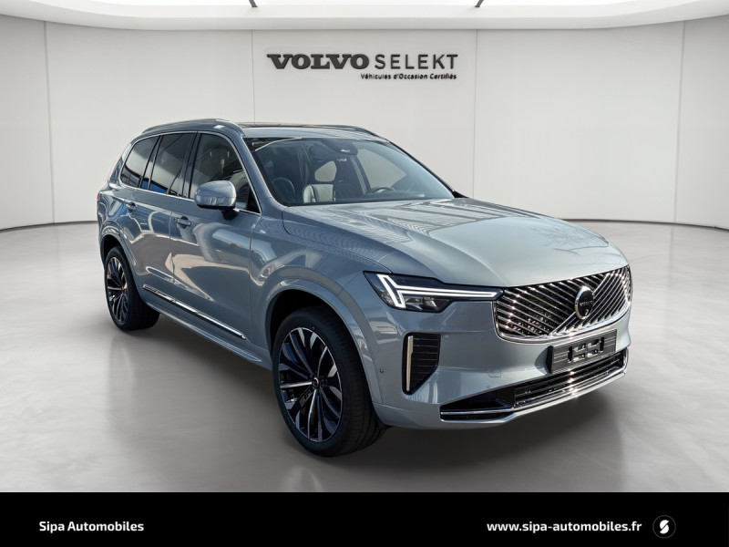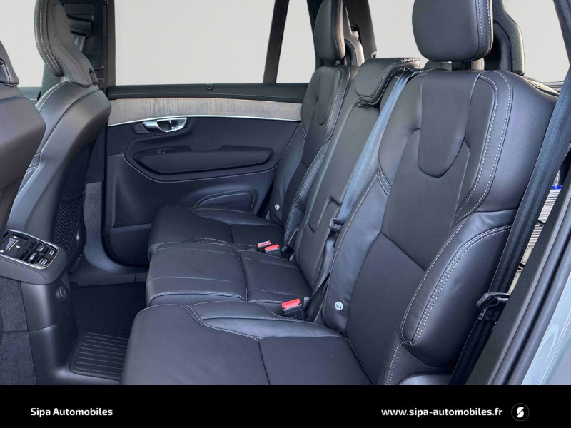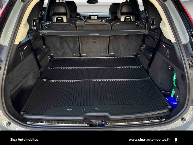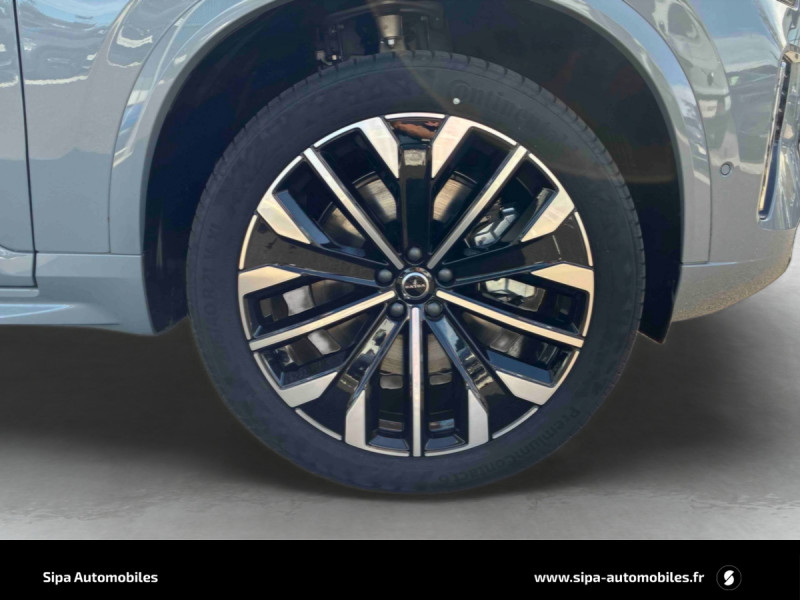 Bouton de démarrage en Aluminium cranté / Boîte automatique Geartronic 8 rapports / Cache-bagages semi-automatique / Caméras Surround View (vision panoramique à 360°) incluant caméra AV et caméra de recul / Commande vocale avancée (climatisation, médias, téléphone, eManuel utilisateur et navigation) / Déclenchement automatique des feux de detresse lors d'un freinage d'urgence / Envoi automatique d'une alerte au service d'urgence Volvo en cas de collision / Frein de parking électronique automatique en fonction Auto Hold désactivable / Freinage automatique post-collision suite à l'activation des prétensionneurs de sécurité ou d'un airbag / Jantes alliage 21'' 5 branches multiples Noir / Diamant / Phares AV Matrix LED avec design du marteau de Thor -Technologie d'éclairage Matrix avec 15 segments - Identification des usagers de la route venant en sens inverse et ajustement automatique de la projection lumineuse pour éviter l'éblouissement - Permutation automatique des feux de route - Séquence lumineuse d'accueil lors de l'approche du véhicule / Pré-câblage électrique pour le crochet d'attelage / Radars de stationnement AV et AR avec signal sonore et visuel / Seuil de coffre en Aluminium / Seuils de portes AV en aluminium badgés Volvo / Toit ouvrant panoramique en deux parties avec pare-soleil électrique / Télécommande de verrouillage centralisé avec clé de contact intégrée, fermeture à distance des vitres et du toit ouvrant et fonction panique (déclenchement du klaxon et des feux de détresse) / Verrouillage automatique des portes en roulant / Volant 3 branches gainé de Simili-Cuir avec insert Aluminium / 2ème rangée composée de 3 sièges individuels : Dossiers rabattables 40/20/40 avec plancher plat, Dossiers inclinables individuellement, Sièges coulissant individuellement / 3ème rangée composée de 2 sièges individuels escamotables manuellement dans le coffre / 4 points d'ancrage dans les panneaux latéraux du coffre / 4 prises USB type-C / 5 modes de conduite disponibles : Hybrid, Power, Pure, Off road, AWD / Accoudoir central AR rabattable comprenant 2 porte-gobelets / Accoudoirs latéraux avec espace de rangement et porte-gobelet pour les sièges de la 3ème rangée / Accès au service d'assistance Volvo via bouton dédié dans le plafonnier / Accès au service d'urgence Volvo via bouton SOS dans le plafonnier / Airbag passager désactivable avec témoin d'indication (on/off) / Airbags rideaux sur toutes les rangées / Alerte Distraction Trafic (ou Ready To Drive Notification) informe le conducteur de porter plus d'attention sur le trafic / Alerte vigilance conducteur / Amortissement piloté avec la technologie FSD (ou Frequency Selective Damping) / Application Volvo Cars sur smartphone iOS ou Android / Appuis-tête 2ème rangée rabattables électriquement / Barres de toit longitudinales intégrées / Bas de caisse, passage de roue et partie basse des pare-chocs AV et AR couleur carrosserie / Bouton de verrouillage centralisé pour le conducteur et la passager avec diode de contrôle / Buses lave-glace intégrées aux balais d'essuie-glace / Calandre style chrome avec inserts chromés / Ceintures de sécuritéà inertie à 3 points d'ancrage (sur les 7 sièges) / Combiné d'instruments digital derrière le volant 12,3" / Configuration 7 places / Contour des vitres latérales chromé / Contrôle de la traction (TCS) / Contrôle de la transmission en descente HDC / Coques de rétroviseurs couleur carrosserie / Coussin réhausseur intégré ajustable sur le siège central de la 2ème rangée / Câble de recharge Type 2 mode 2 monophasé 8 A / Espace de rangement dans les 4 portes, pouvant accueillir 1 bouteille de 1,5 l dans les portes AV / Espace de rangement sous le plancher du coffre / Filet de sécurité entre les sièges AR et le coffre / Fonction Stop & Start : coupe et redémarre le moteur lorsque la voiture est à l'arrêt / Frein à disques 19" ventlés à l'AV et 18" à l'AR / Grand écran central flottant 11,2'' / Hayon du coffre électrique avec ouverture mains libres / Incrustations chromées autour des ouies d'aération / Incrustations Frêne Brun / Indicateur de perte de pression des pneus TPMS / Infotainment Google Android avec service Automotive et Google Maps Comprend Google Maps, Google Assistant, Google Play Store et un volume de données illimité pour les 4 premières années, kit mains libres Bluetooth et Streaming Audio, mode d'emploi numérique du véhicule, réception de la radio numérique (DAB+) / Kit anti-crevaison / Lave-phares à haute pression escamotables / Levier de vitesses en Cristal d'Orrefors / Miroirs de courtoisie des pare-soleil éclairés, spots de lecture à l'AV et à l'AR, éclairage aux pieds à l'AV, dans la boîte à gants et le coffre / Mise à jour du système à distance (Over The Air ou OTA) / Ouverture des portes sans clé Keyless Entry incluant éclairage du sol dans les poignées de porte AV / Pare-brise en verre feuilleté et colonne de direction rétractable en cas de choc / Pare-chocs et partie inférieure des portes avec inserts chromés / Pilot Assist, système d'assistance intelligent au conducteur comprenant : Régulateur adaptatif de vitesse et de distance ACC, - Assistance à la conduite intelligente (le véhicule lit le marquage au sol et agit sur la direction afin de se maintenir au centre de sa voie et adapte la vitesse en virage, le conducteur doit garder les mains sur le volant, fonctionne jusqu'à 130 km/h), Système d'assistance à l'arrêt d'urgence / Pneu dimensions 275/40 R21 / Prise 12 V dans le coffre / Prise 12 V à l'AV et à l'AR / Préparation pour l'installation d'un éthylomètre antidémarrage / Préparation pour le système Isofix (places latérales de la 2ème rangée de sièges) / Purificateur d'air : système de filtration de l'air avancé avec indication de la qualité de l'air / Rails de toit Chrome / Rappel d'oubli de bouclage de ceinture de sécurité AV